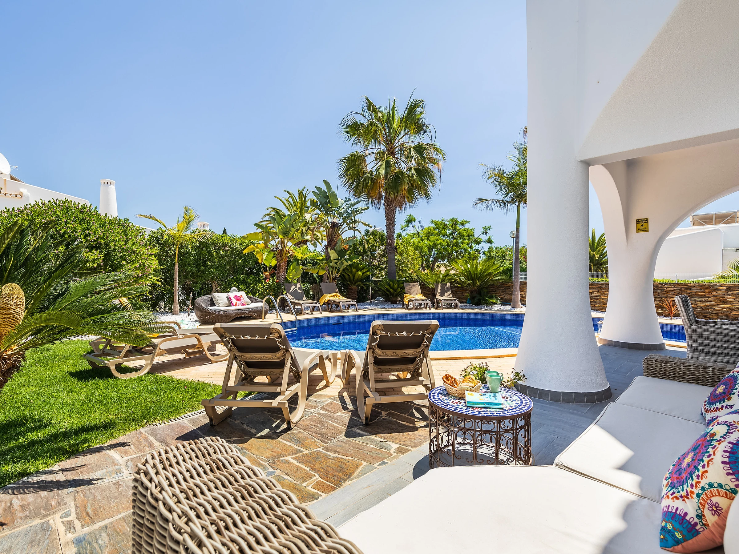 Villa Eva has a magnificent garden around the house that delights children, a reserved reading area, and outdoor furniture and sun loungers to provide greater comfort to those who choose Vila Eva for their family holidays with friends.