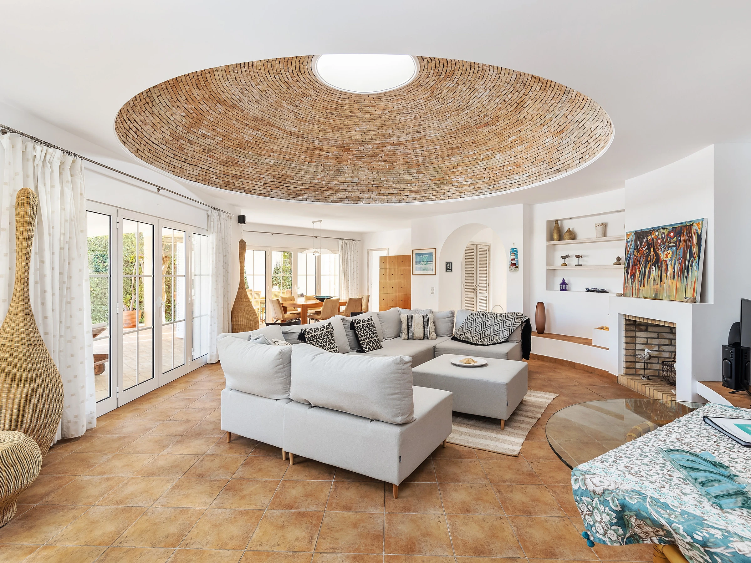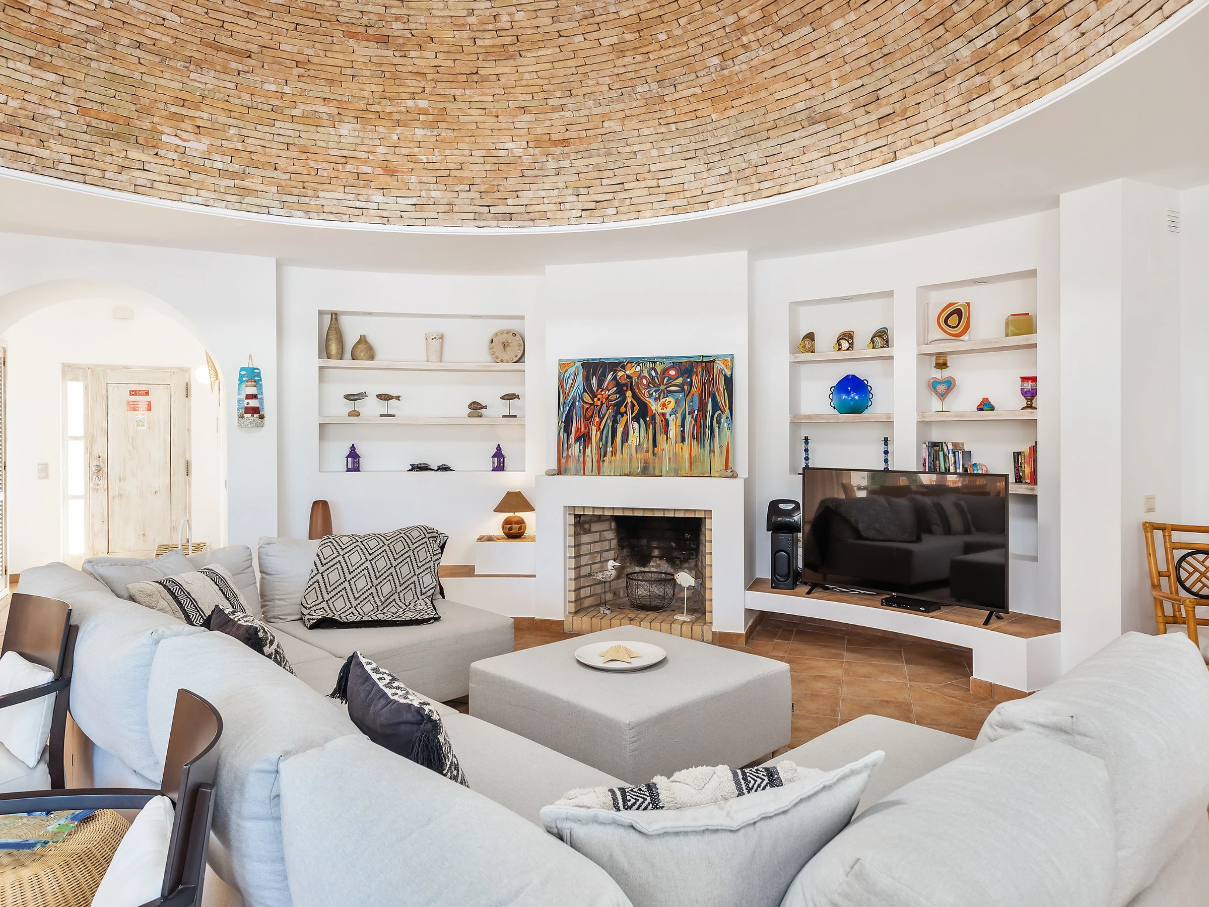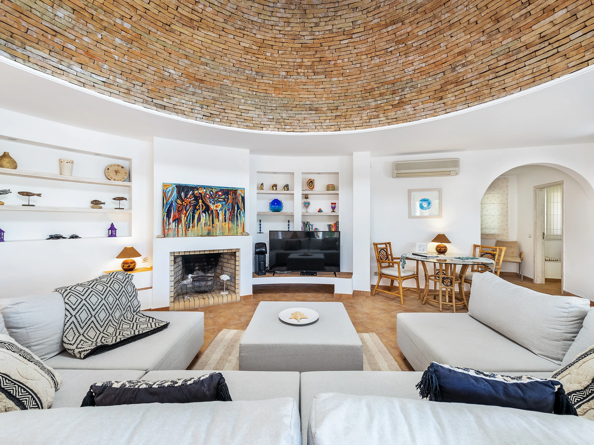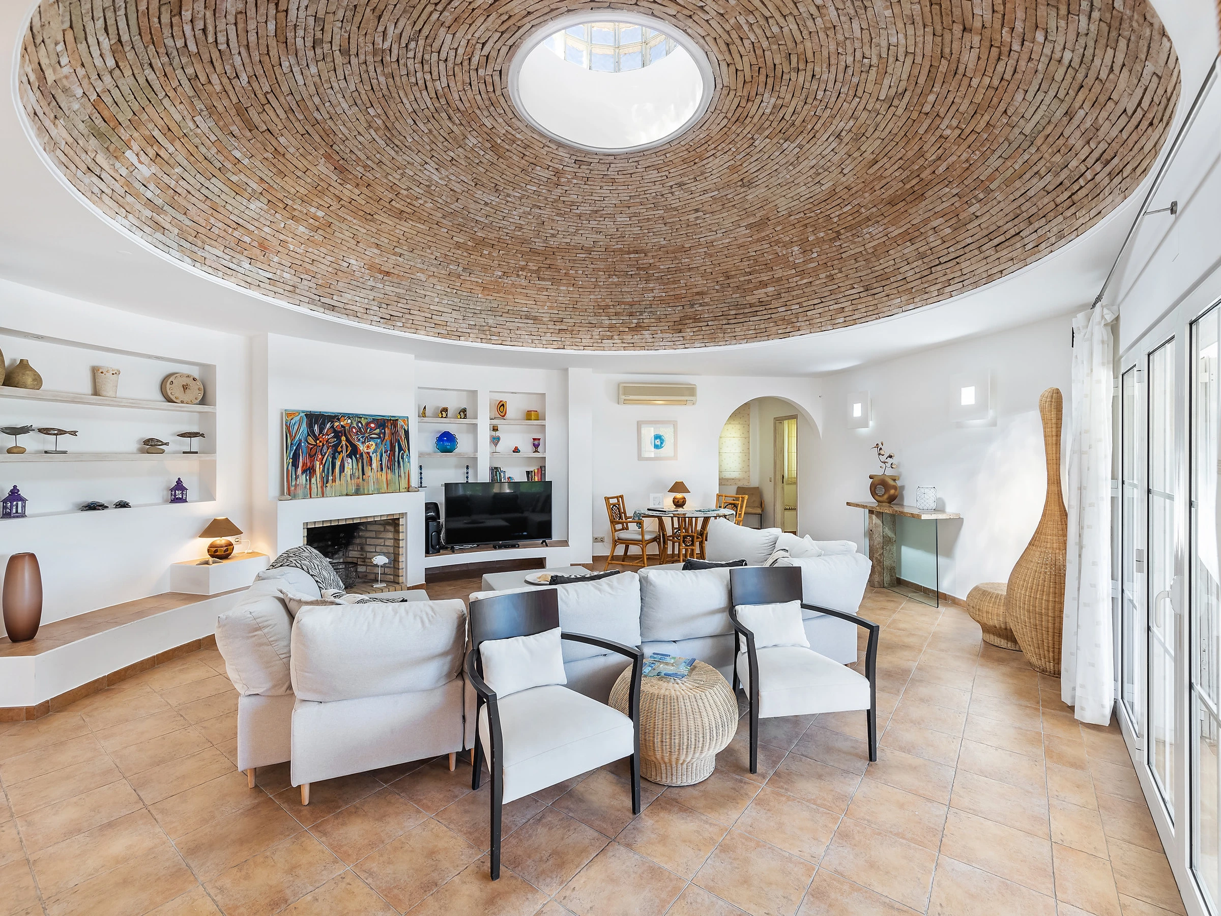Vila Dome has a comfortable open plan living room with large areas, as well as a shared bathroom, fireplace, Smart TV, DVD and internet, the dining room communicates directly with the elegant outdoor dining area and with direct access to the terrace, garden and swimming pool that upon payment of a supplement can be heated.