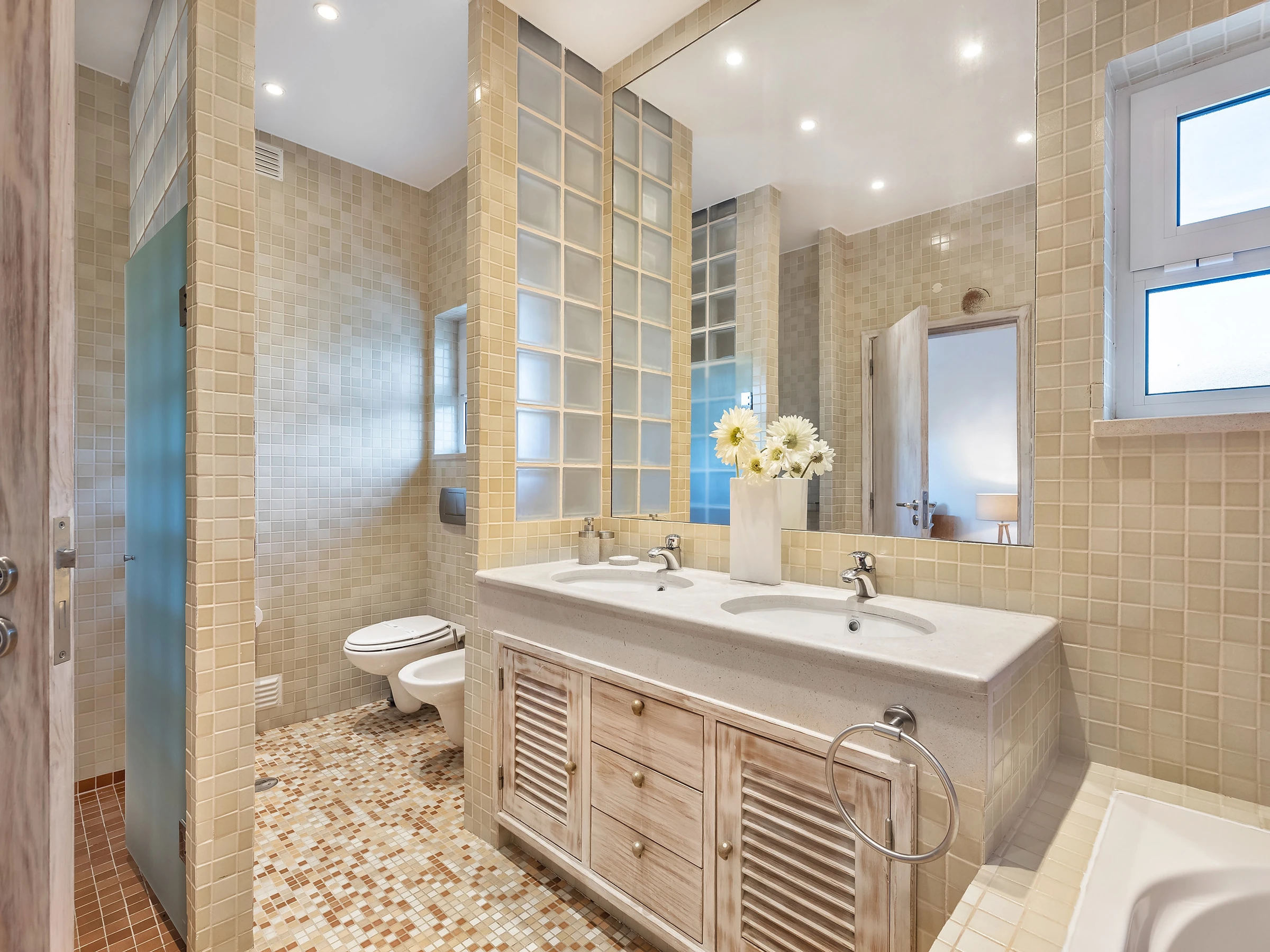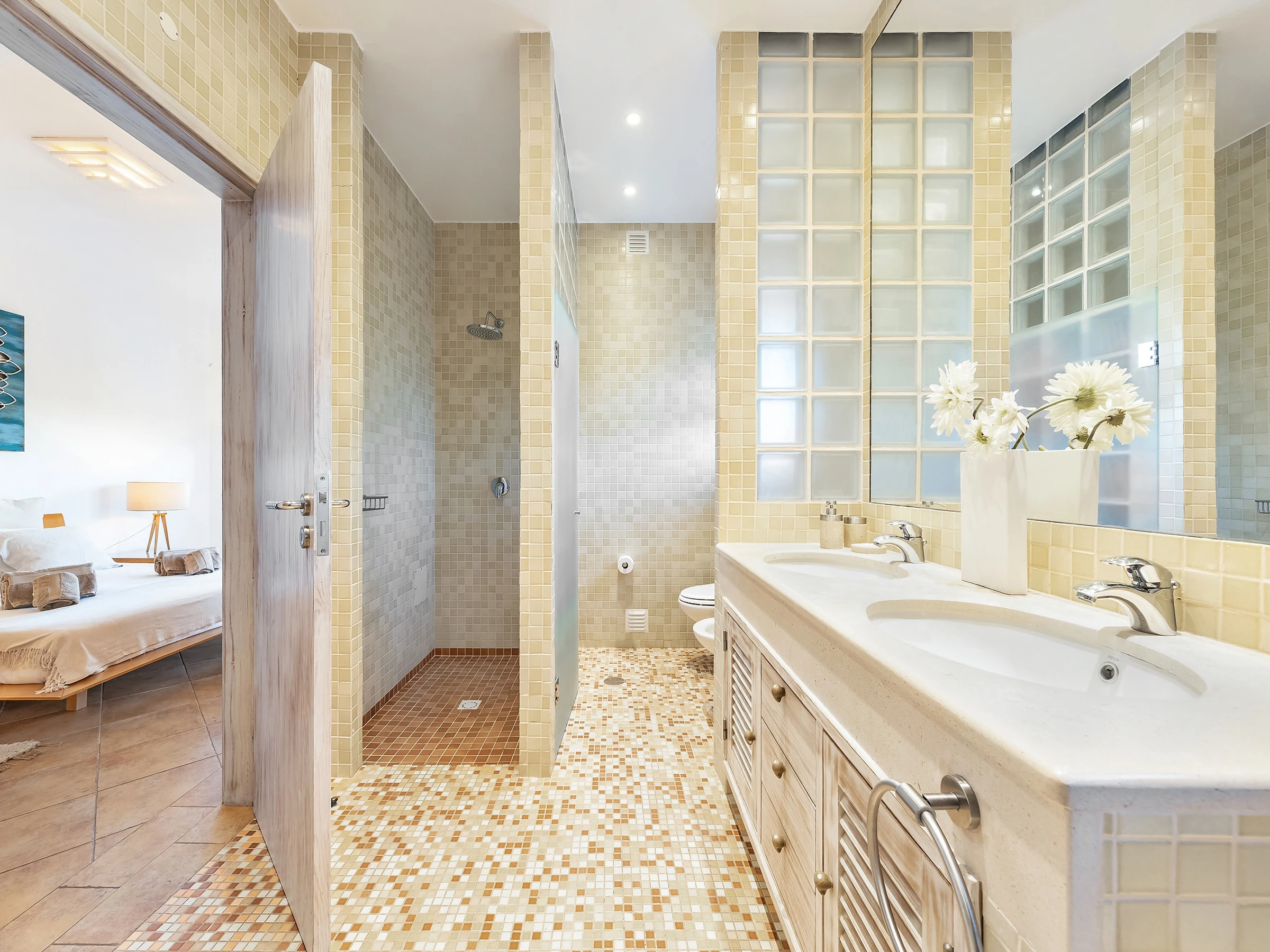 The kitchen is fully equipped, has direct access to the two outdoor grills and communicates with the dining area and terrace. The 3 en-suite bedrooms benefit from extraordinary privacy and face the pool with direct access.