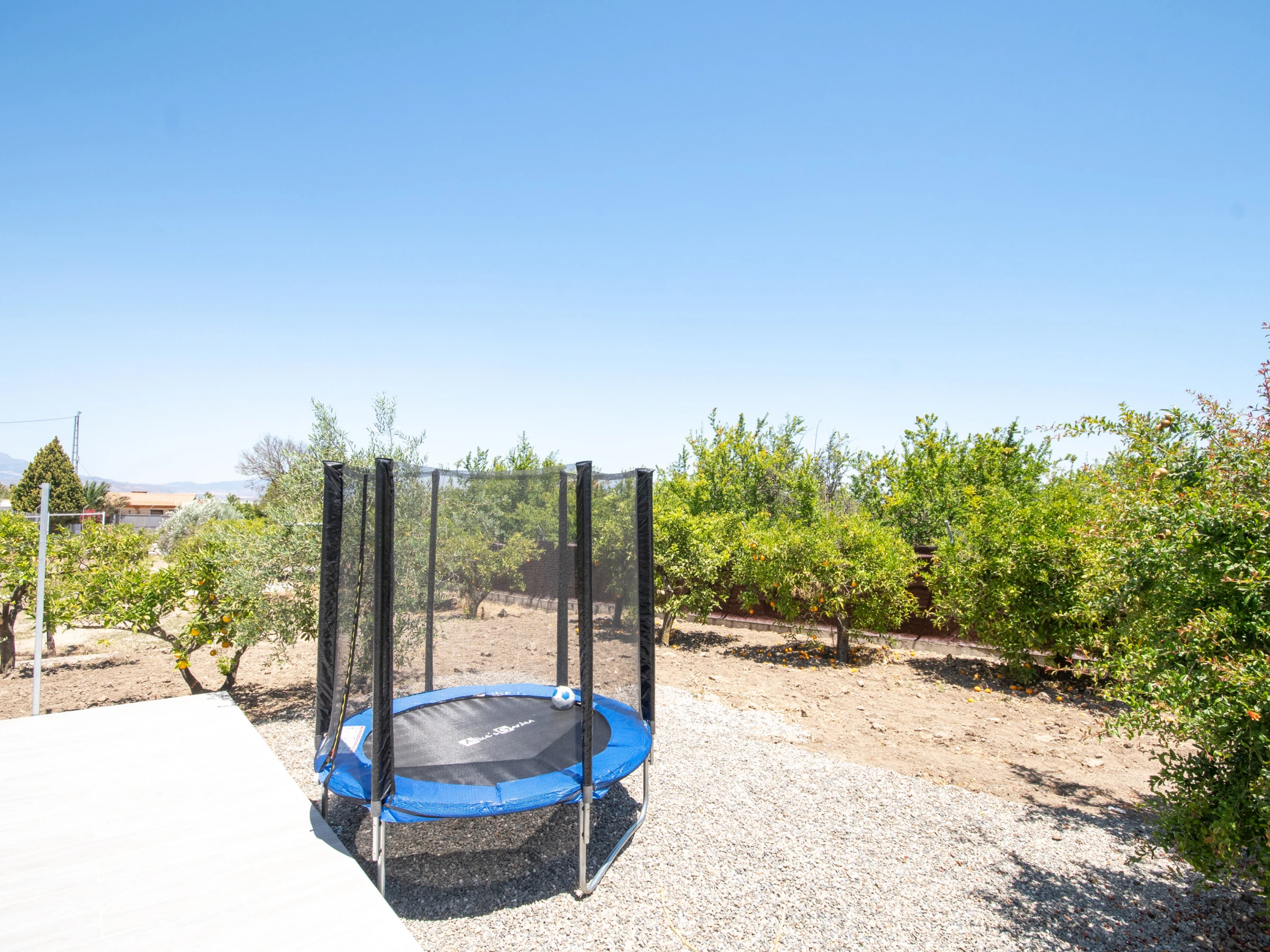 Disfruta de amplias terrazas con vistas espectaculares a la piscina, el jardín y la Sierra de Mijas. La piscina privada está rodeada de tumbonas y sombra natural para relajarte al máximo. Para los más pequeños, hay una cama elástica en el jardín que garantiza diversión segura.