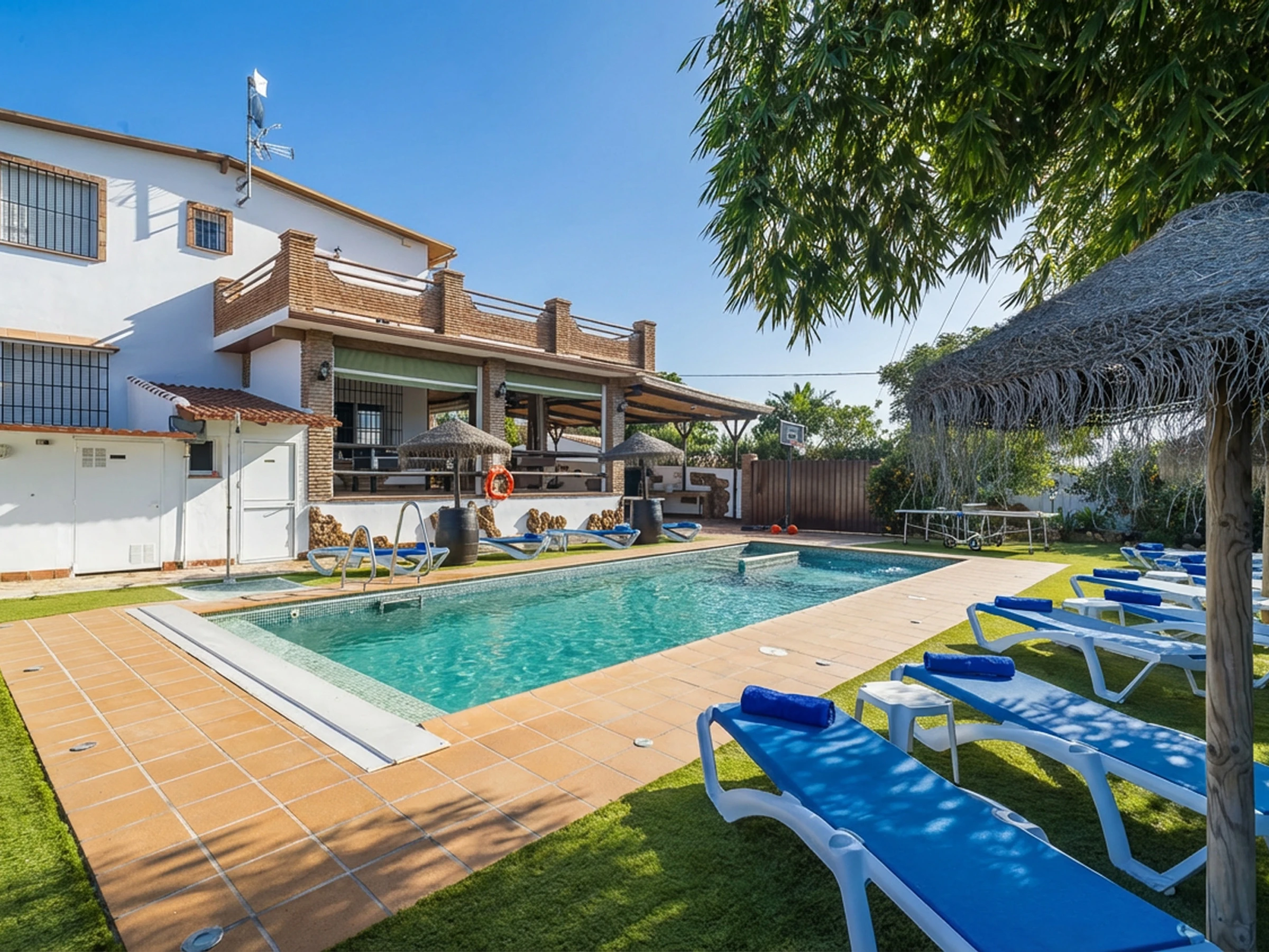 Esta villa es ideal para grupos grandes que buscan comodidad y lujo en un entorno tranquilo. Cuenta con capacidad para 12 personas, aunque los viajeros 11 y 12 tienen un suplemento adicional. Dispone de 6 dormitorios, donde 4 cuentan con cama de matrimonio y 2 con camas individuales, perfecta para familias o grupos de amigos. Con 3 baños completos, un aseo exterior junto a la piscina, cocina independiente y un amplio salón comedor, este alojamiento está equipado con todos los detalles para garantizar una estancia inolvidable.