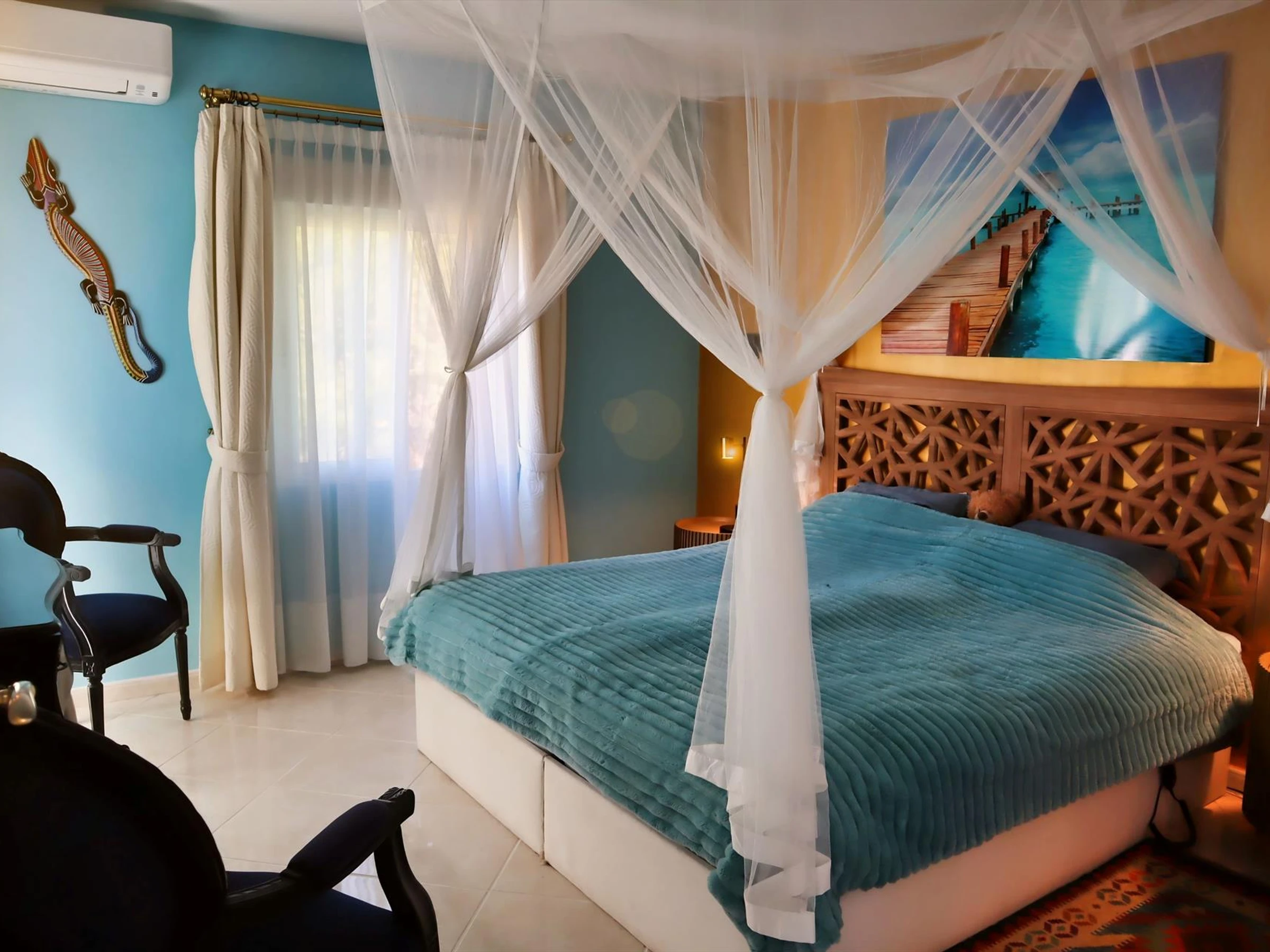 Hermosa villa clásica, grande (365 m²), decorada con esmero en estilo bohemio. No apto para grupos de jóvenes ni fiestas. El consumo de electricidad de 150 kWh semanales está incluido. El consumo adicional se cobrará a 0,35 € por kWh.