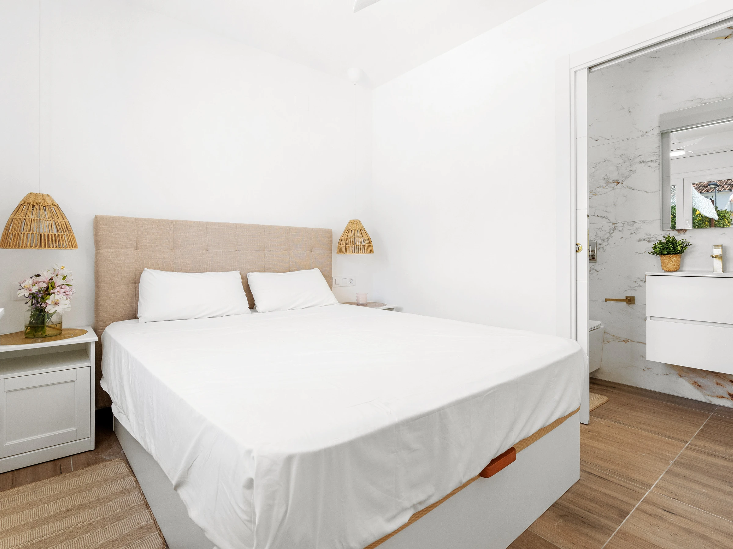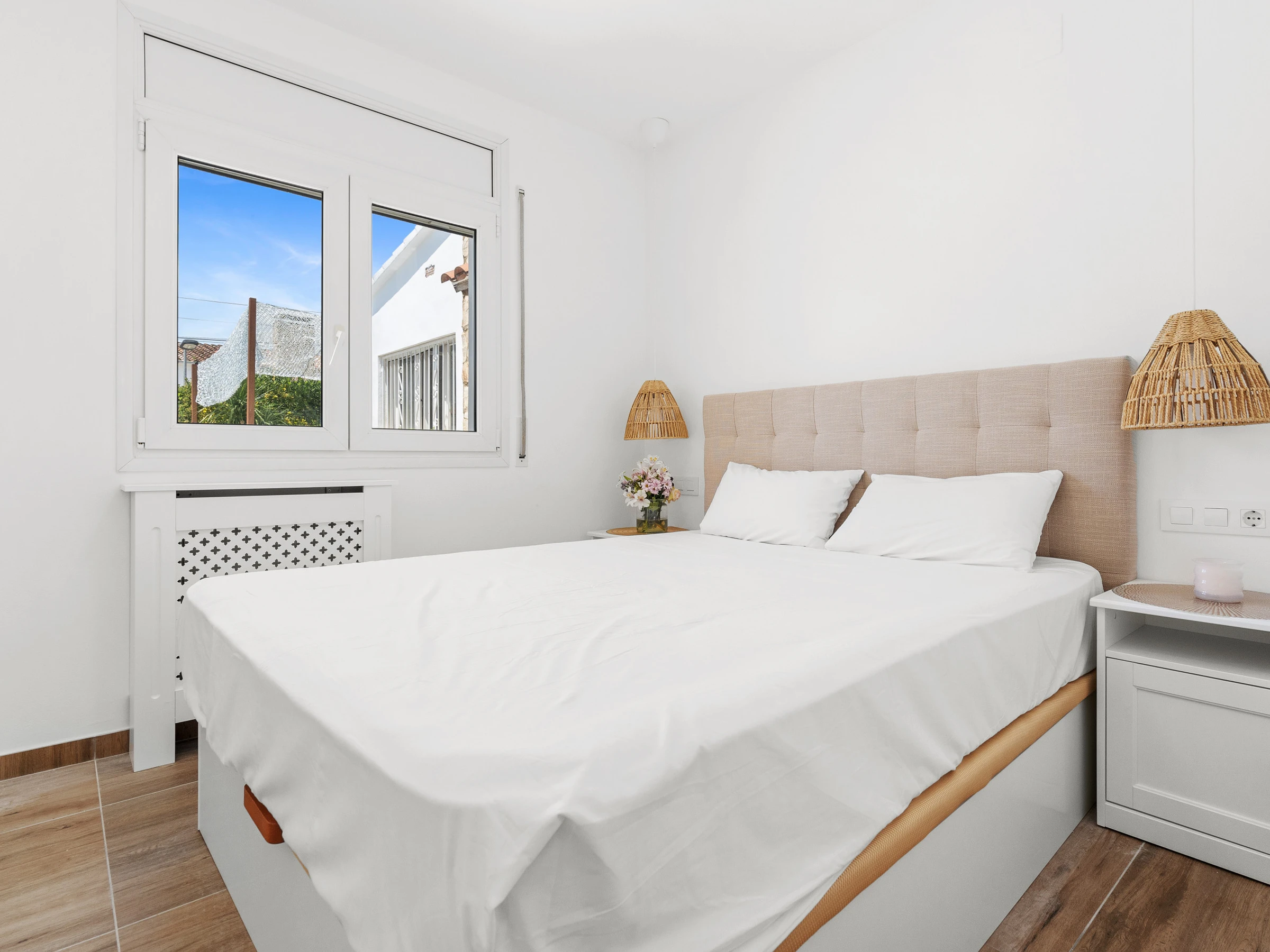 El apartamento cuenta con todas las comodidades para que disfrutes de una estancia agradable, como lavadora, plancha, acceso a internet (wifi), secador, calefacción con bomba de calor, aire acondicionado, piscina privada y parking al aire libre en un edificio cercano. También dispone de una televisión con TV satélite. La cocina está completamente equipada con nevera, lavavajillas, vajilla/cubertería, utensilios de cocina, cafetera y hervidor de agua.