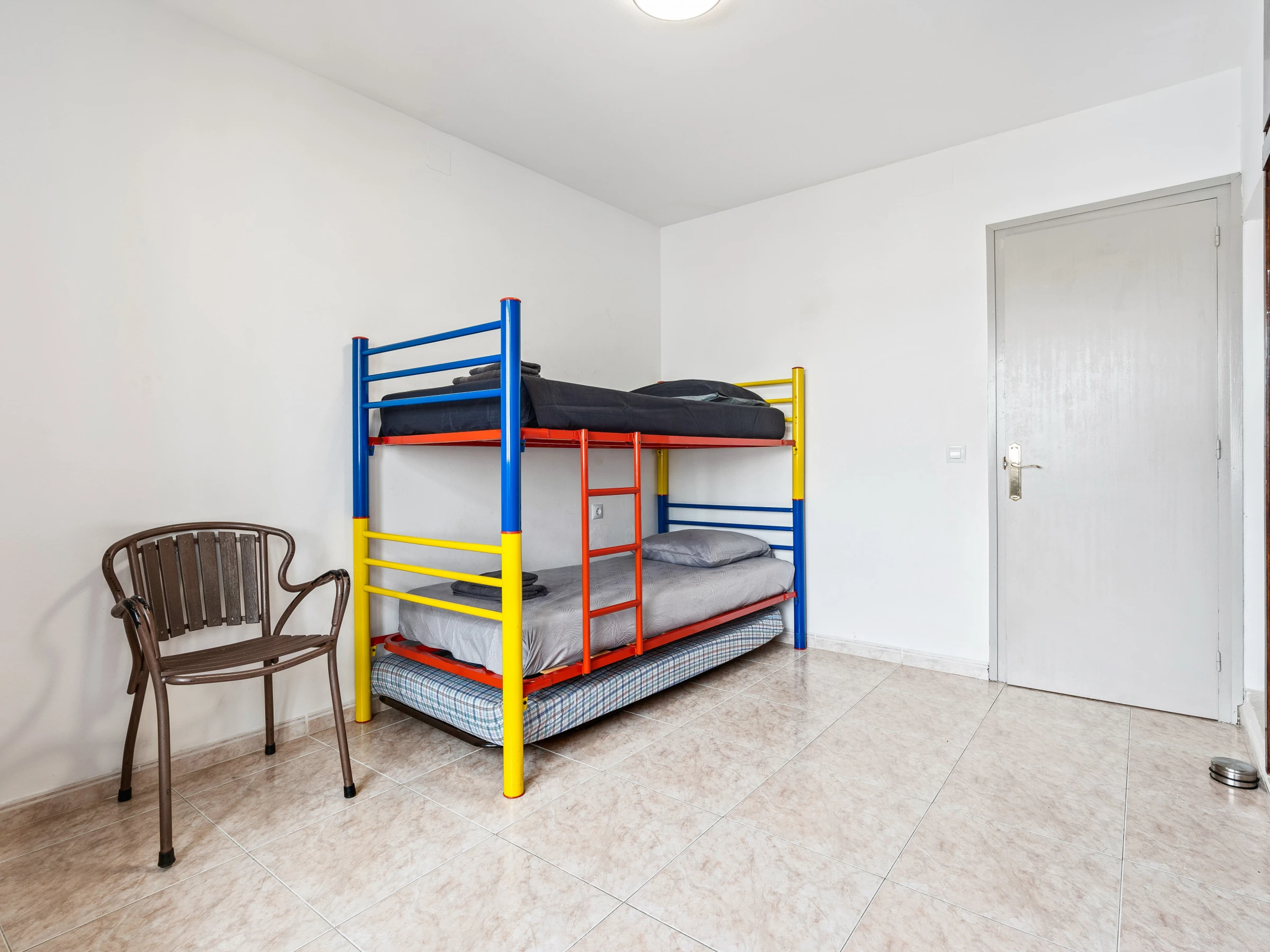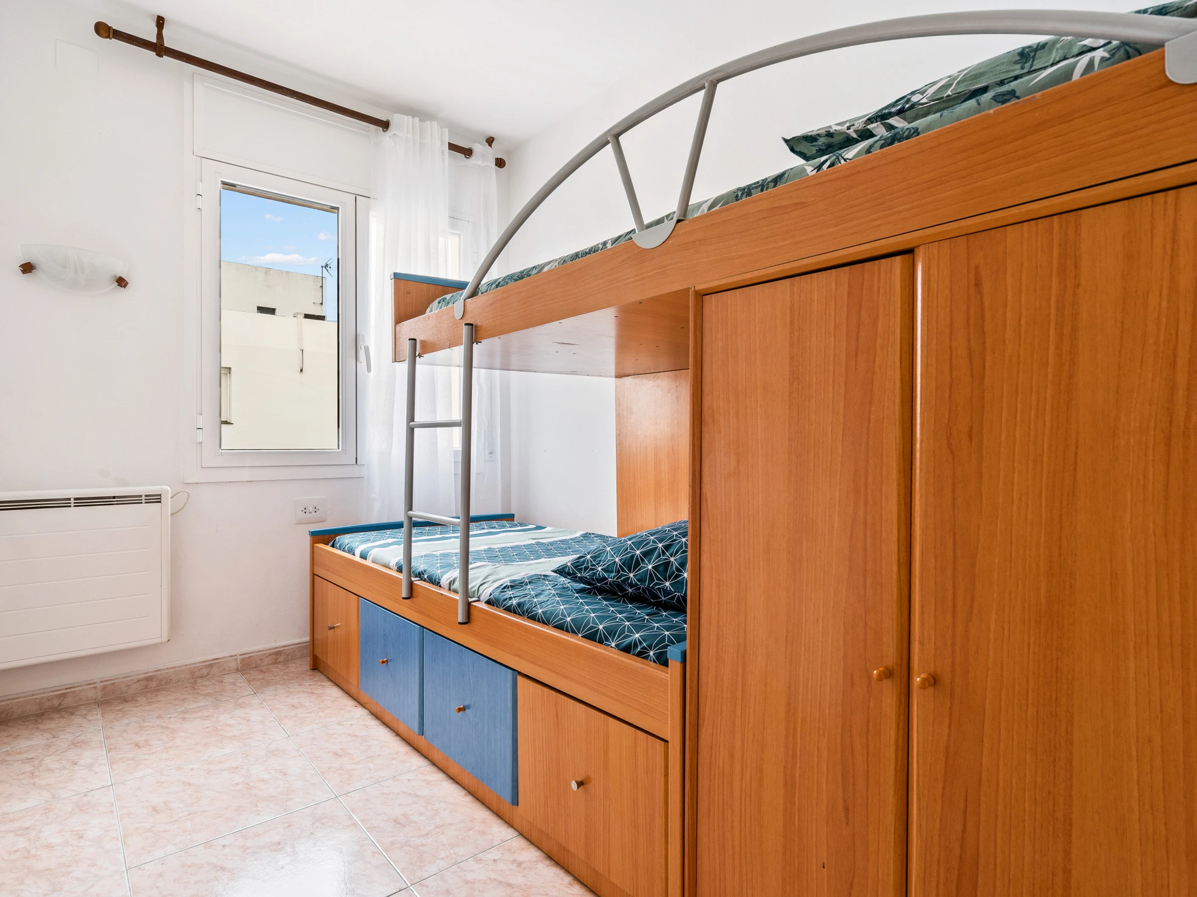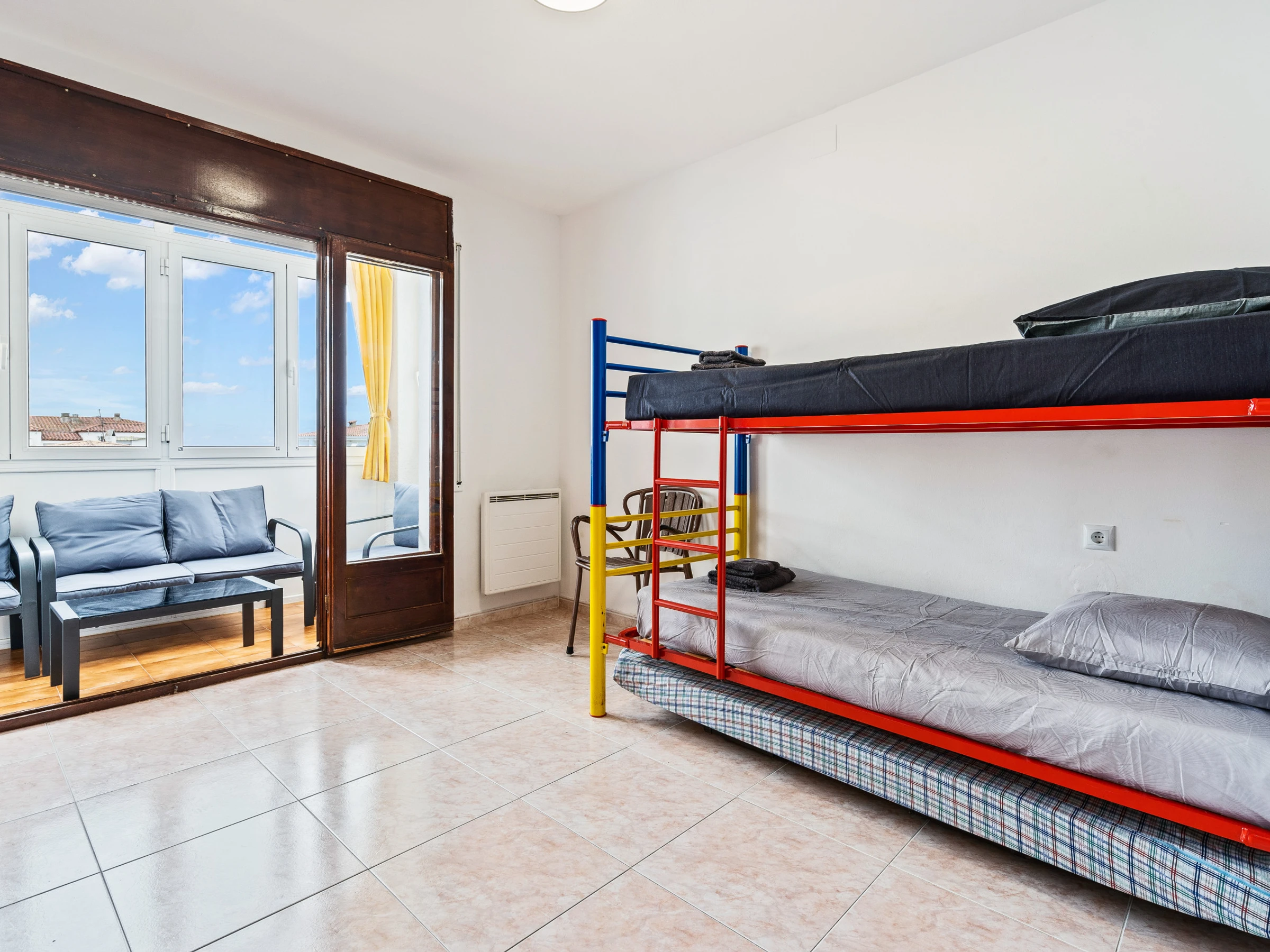 El apartamento dispone de 4 dormitorios: dos de ellos con literas y los otros dos con dos camas individuales cada uno, proporcionando un alojamiento cómodo para todos los huéspedes.