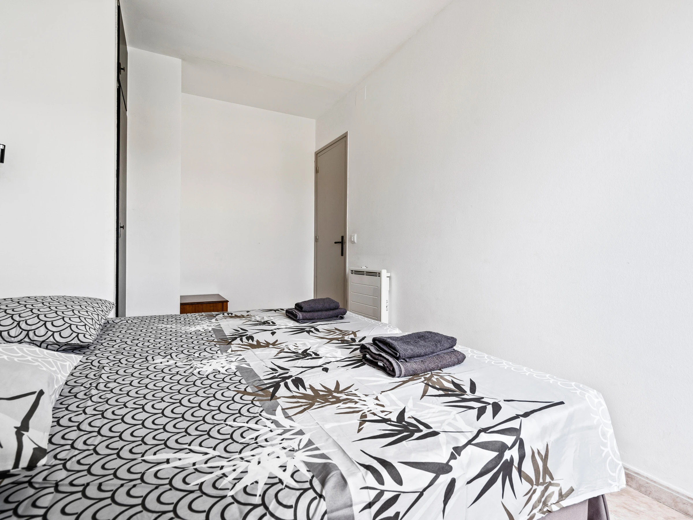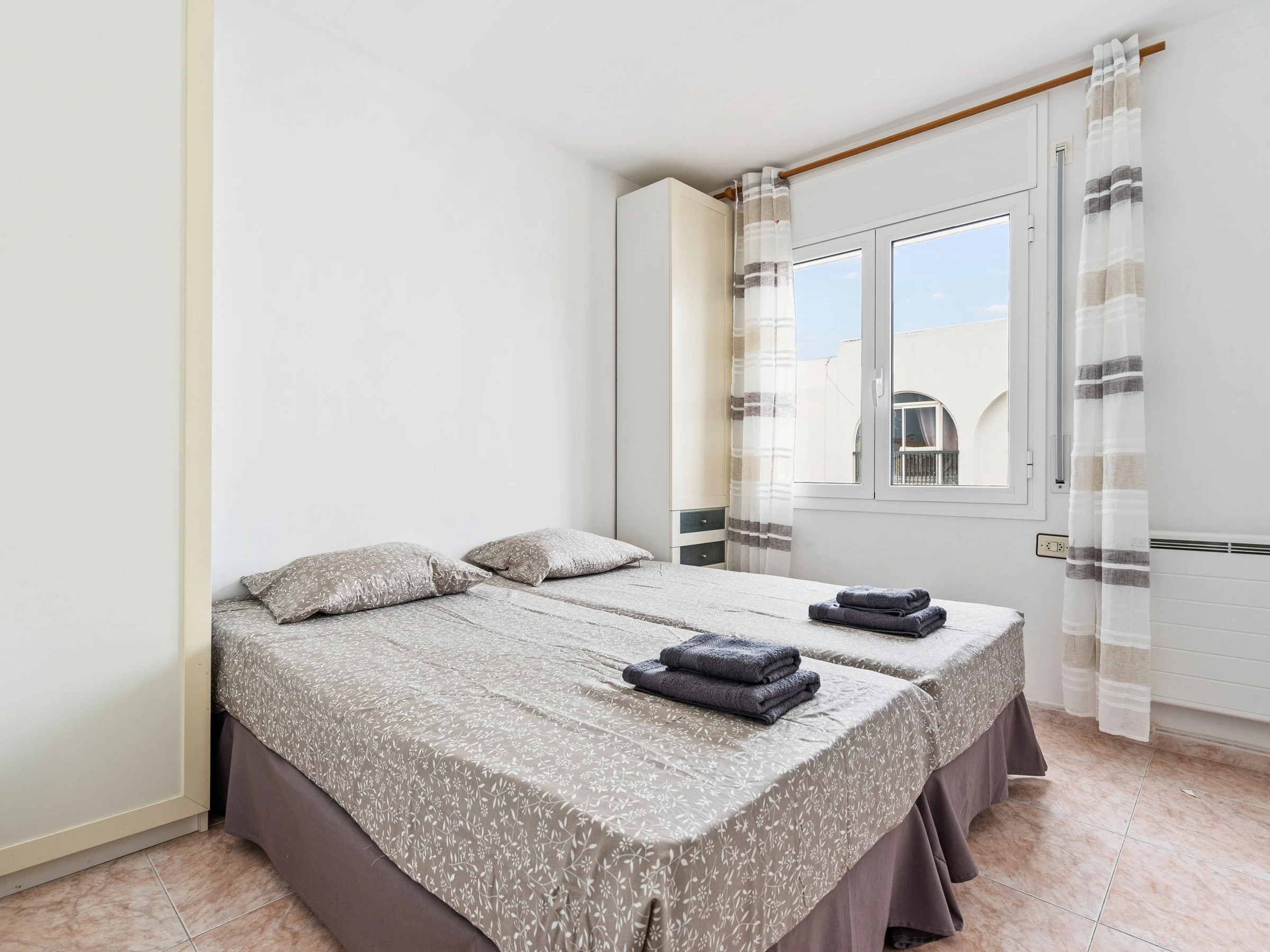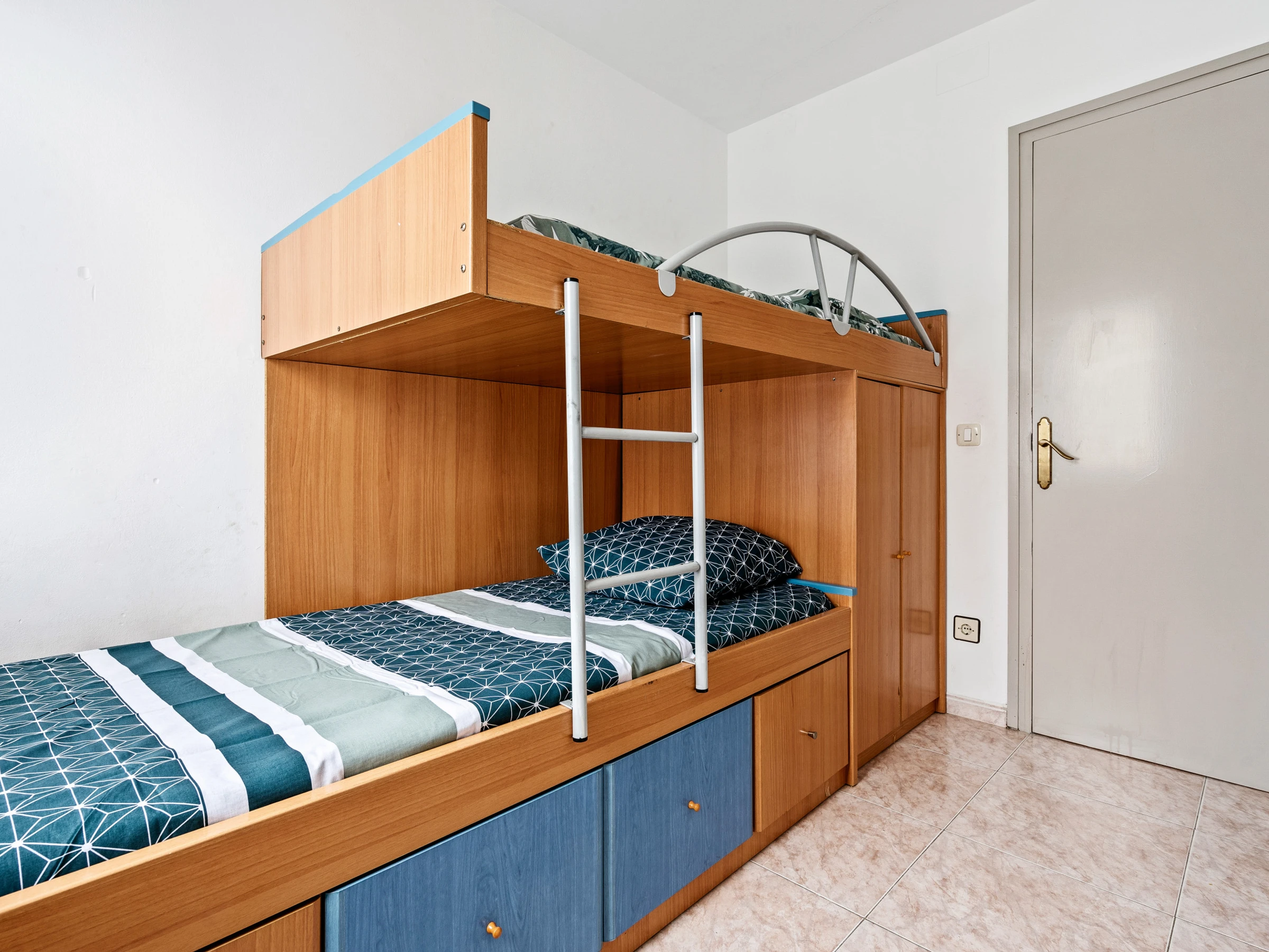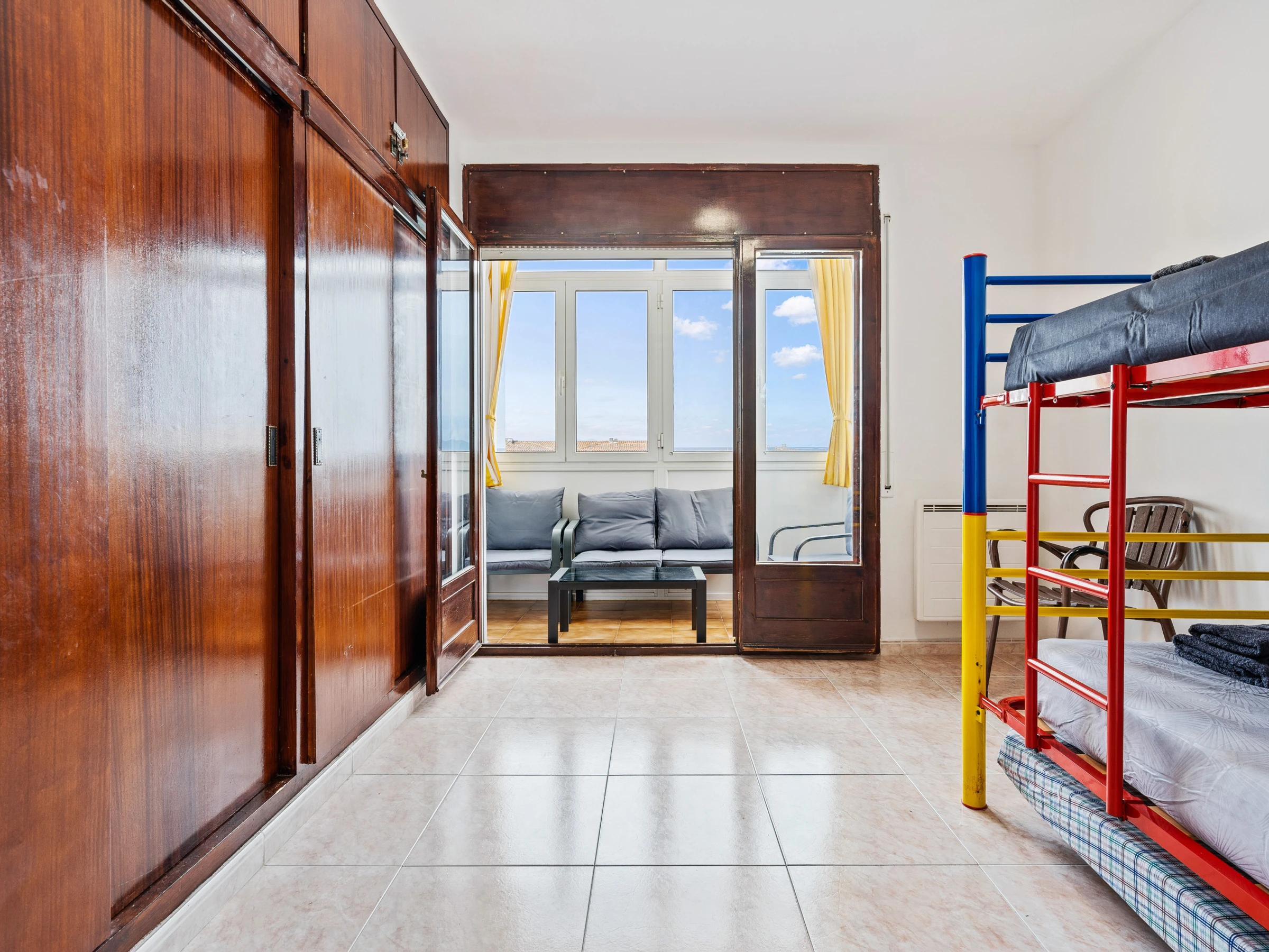 El apartamento dispone de 4 dormitorios: dos de ellos con literas y los otros dos con dos camas individuales cada uno, proporcionando un alojamiento cómodo para todos los huéspedes.