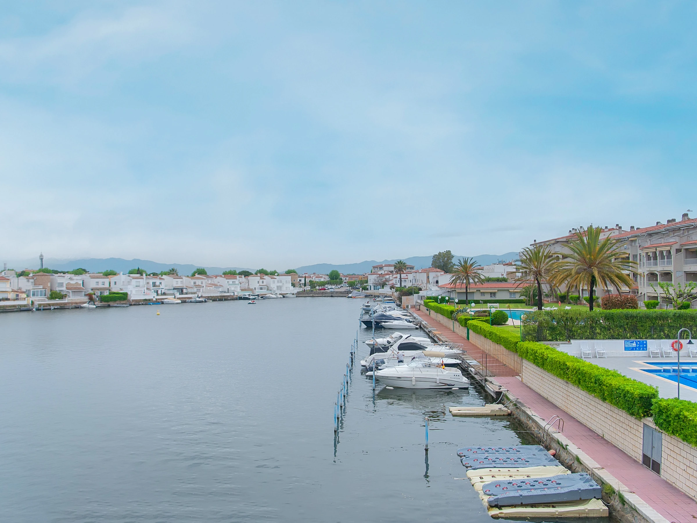 Imagínese un acogedor apartamento de 65 m², ubicado en la pintoresca ciudad de canales de Empuriabrava. Estos apartamentos son ideales para un alojamiento cómodo de hasta seis huéspedes, ofreciendo dos dormitorios y una terraza espaciosa con una vista magnífica de la piscina y los canales.