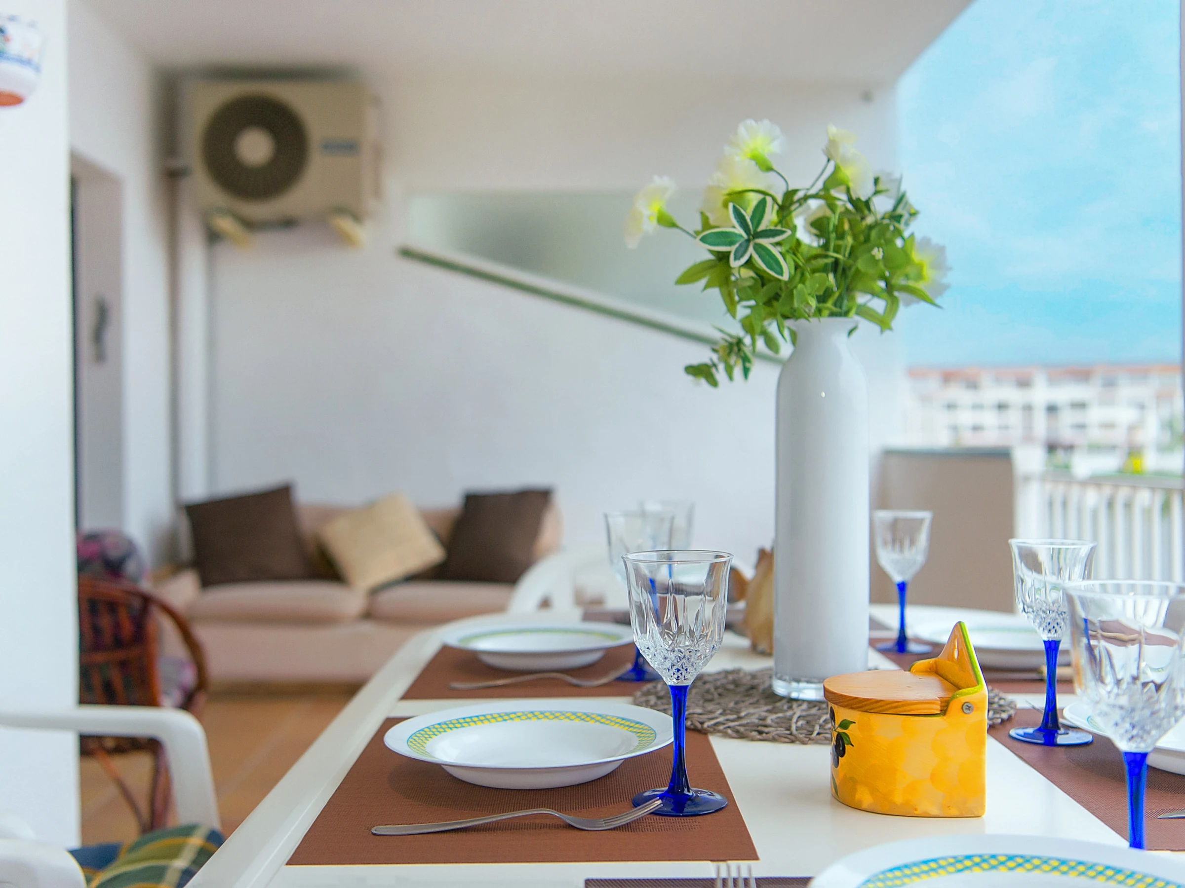 La sala de estar está equipada con dos sofás individuales que se pueden extender fácilmente, proporcionando plazas adicionales para dormir para sus invitados. Cerca se encuentra la zona de comedor, donde se puede reunir toda la familia o un grupo de amigos para disfrutar de una deliciosa cena.