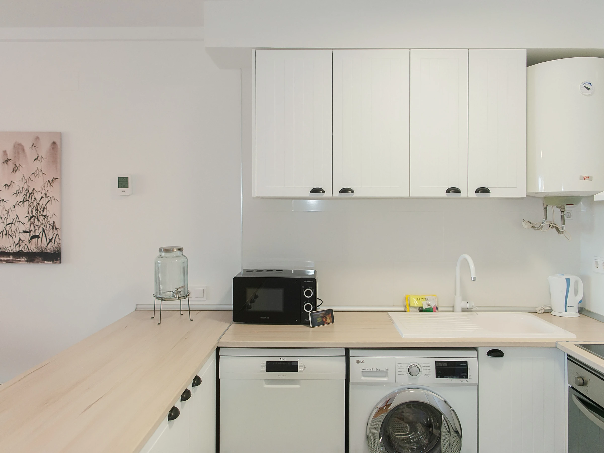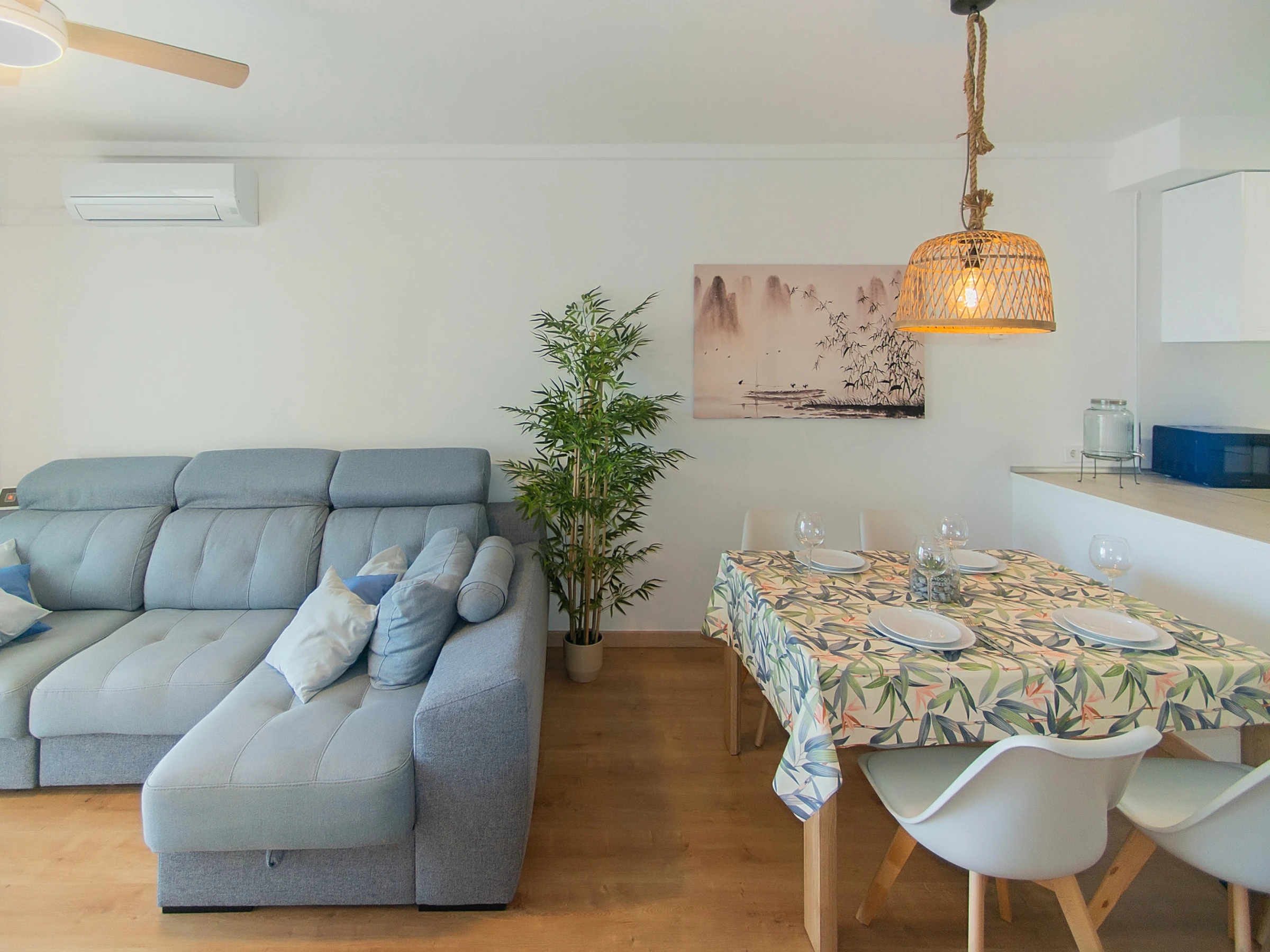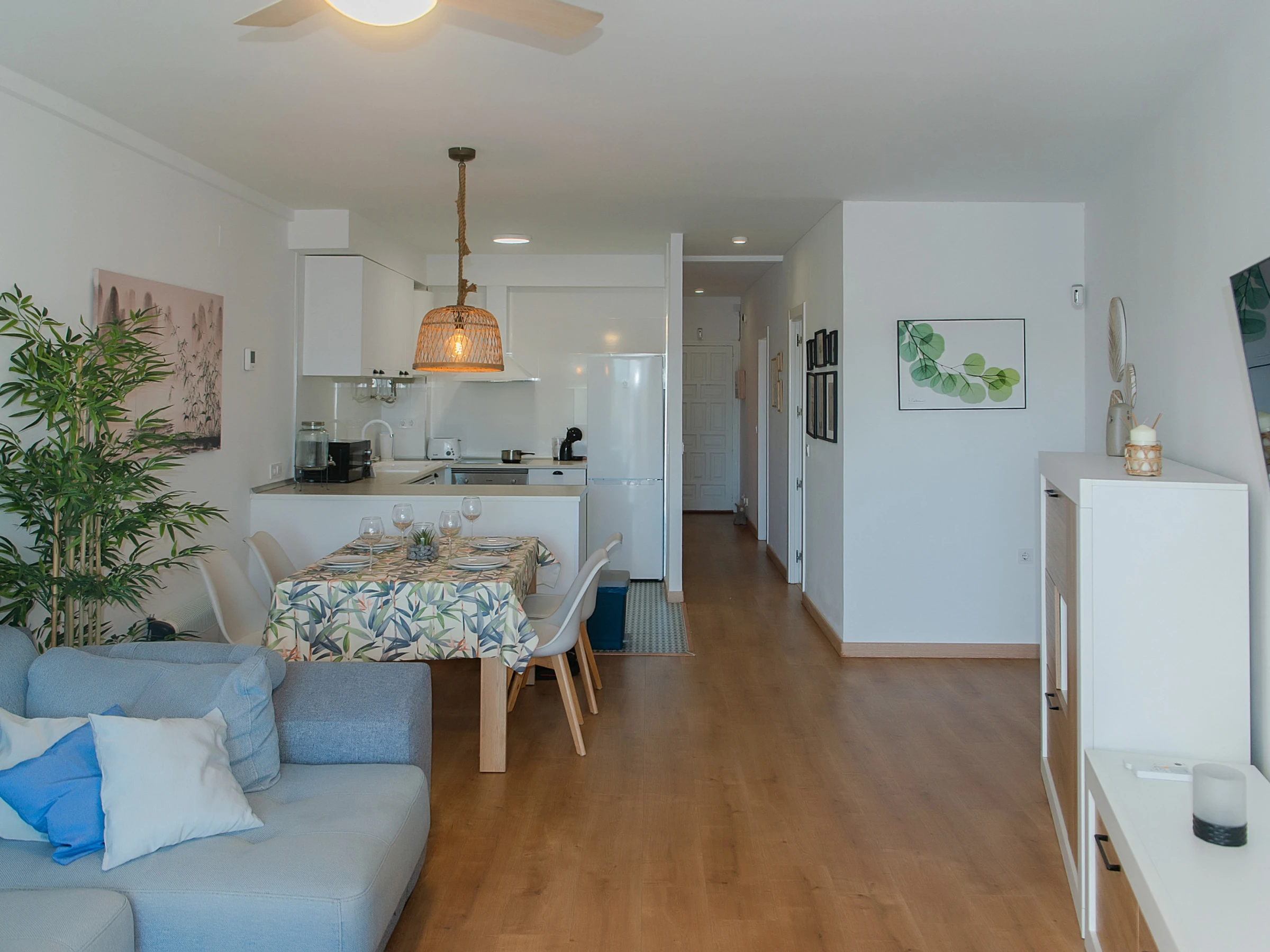Este apartamento de 55 m², ideal para hasta 4 personas, dispone de dos dormitorios (uno con cama doble y otro con cama individual), un luminoso salón con sofá cama y zona de comedor, así como un baño completo con ducha. La cocina está totalmente equipada, lista para que te sientas como en casa.
