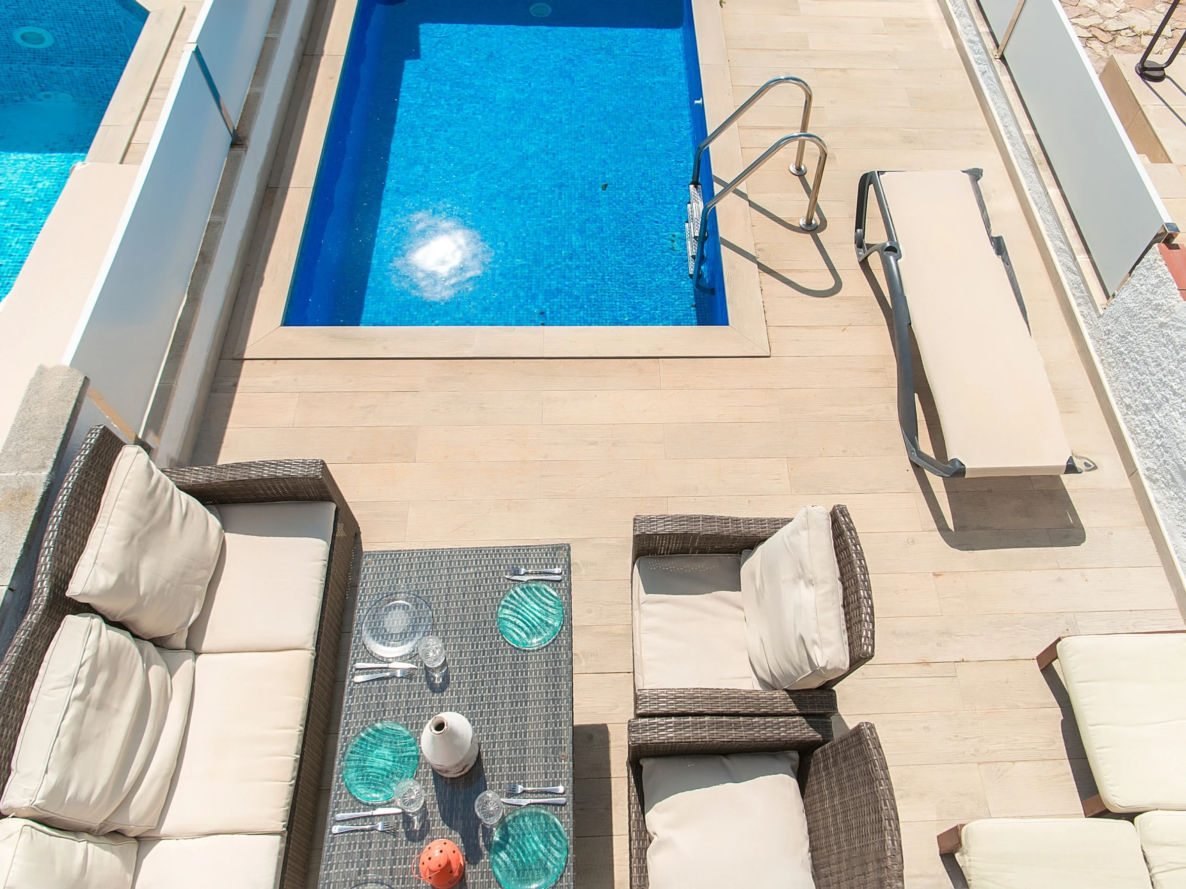 Una de las características principales de la casa es la terraza espaciosa de 50 m², donde se puede disfrutar del aire fresco y la magnífica vista al canal. En la terraza también hay una piscina que será un excelente lugar para refrescarse en días calurosos y para nadar bajo las estrellas por la noche.