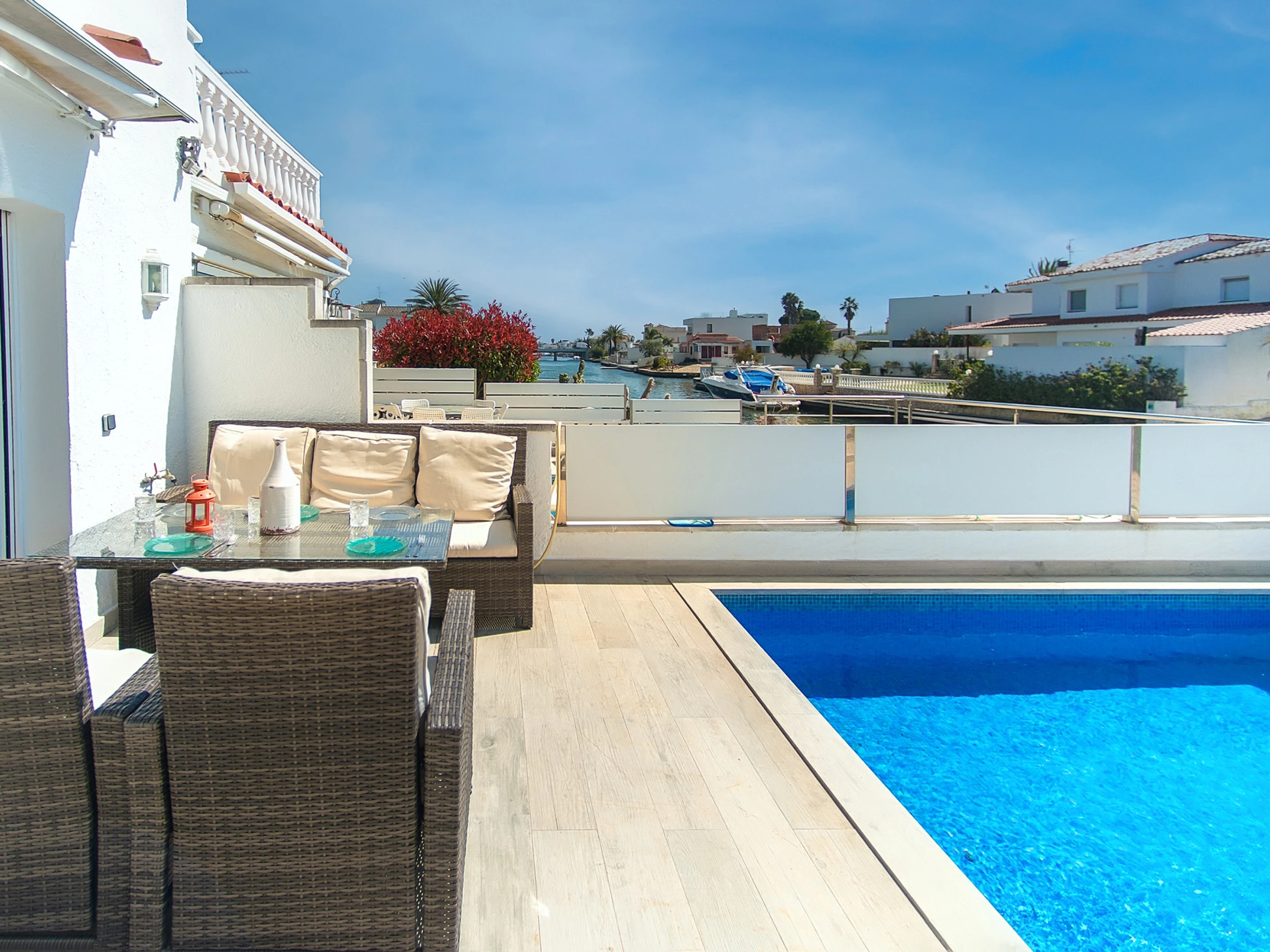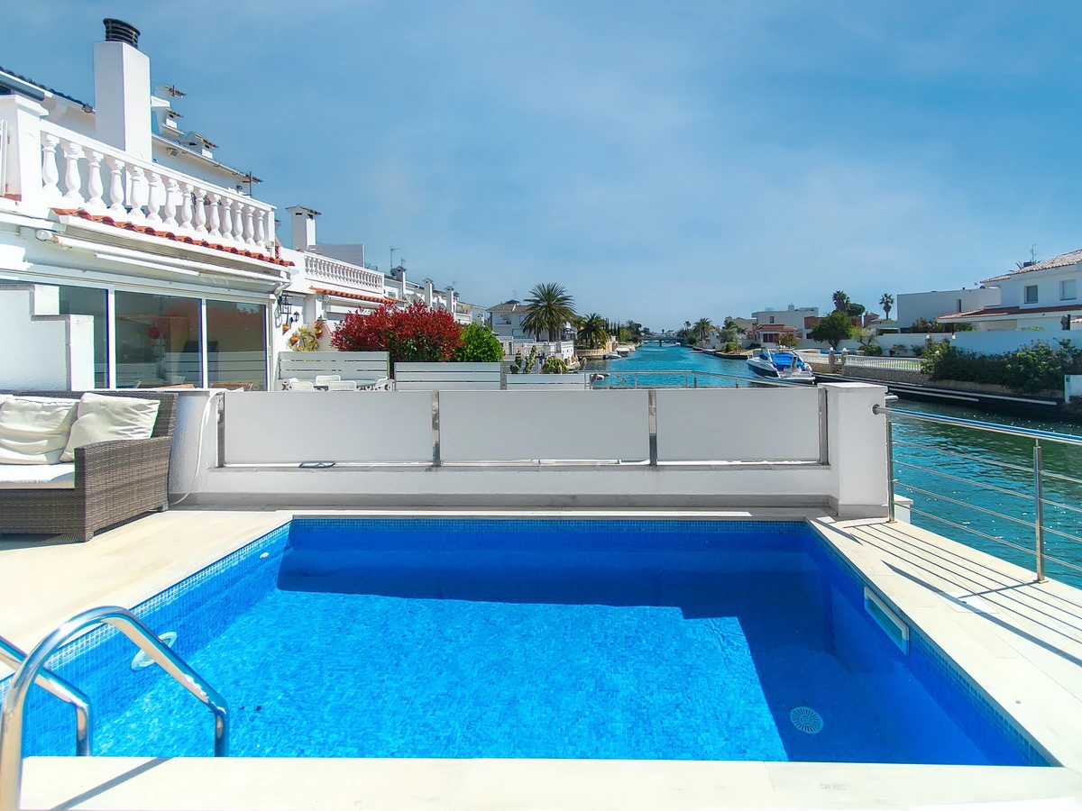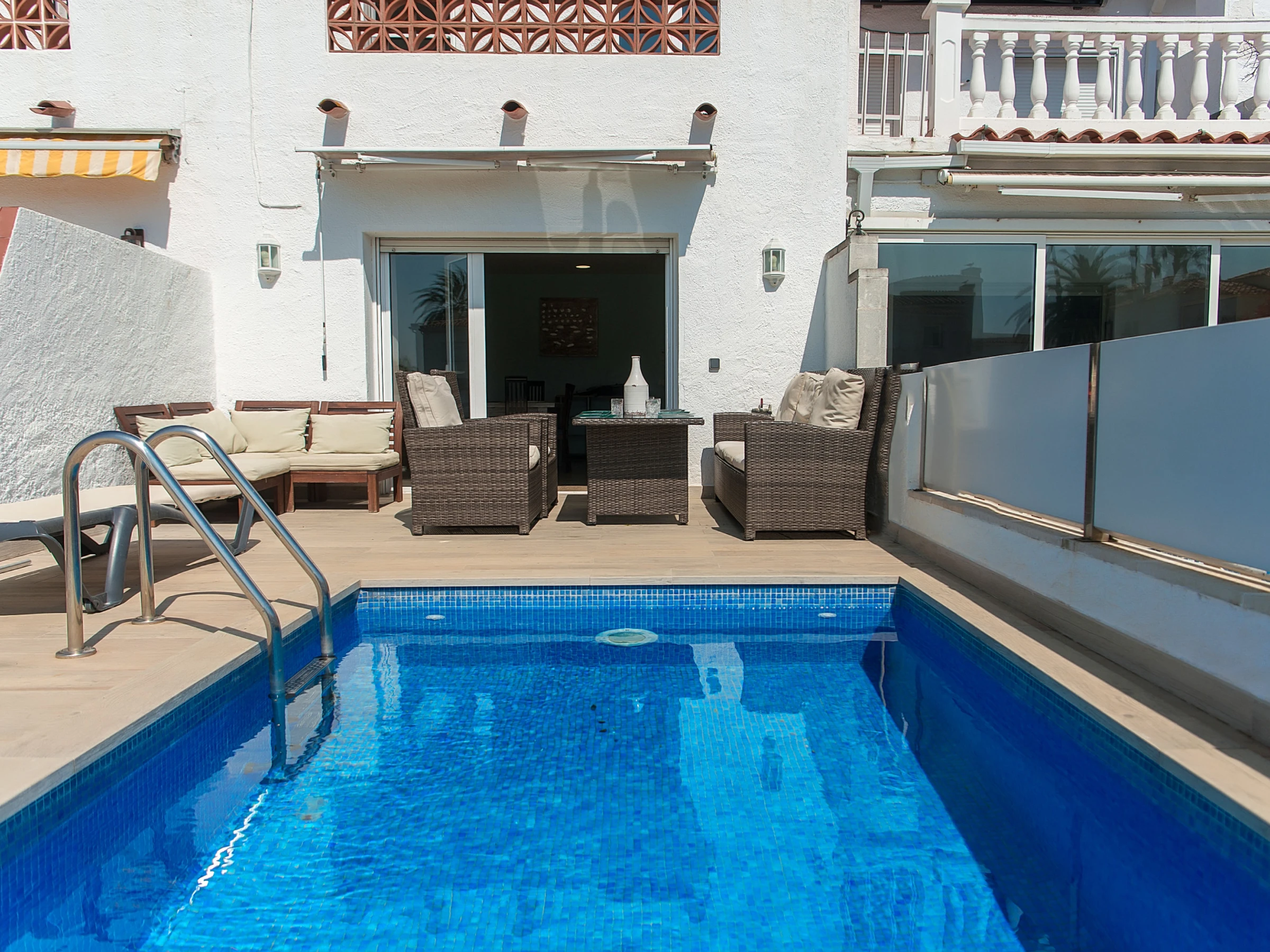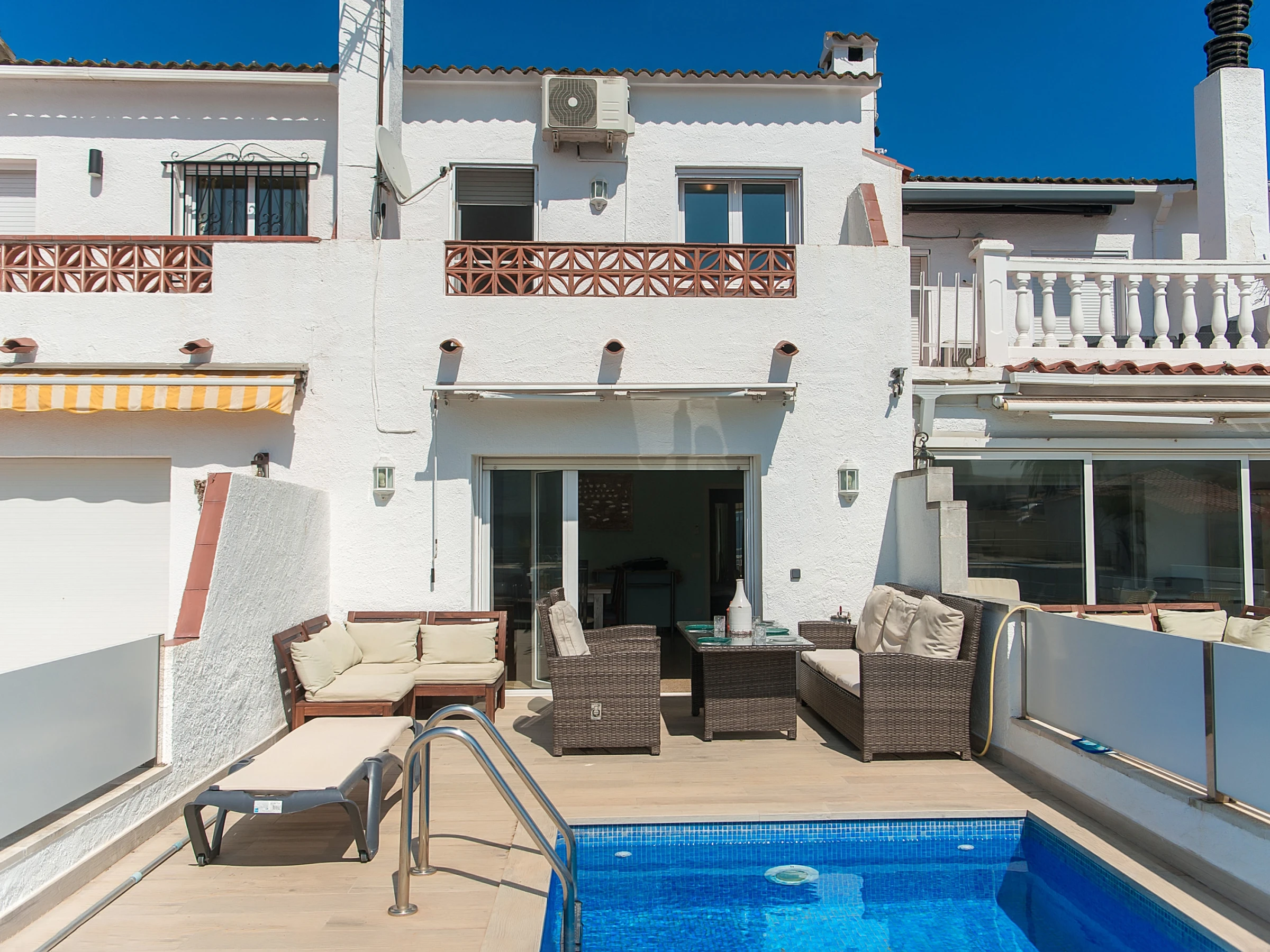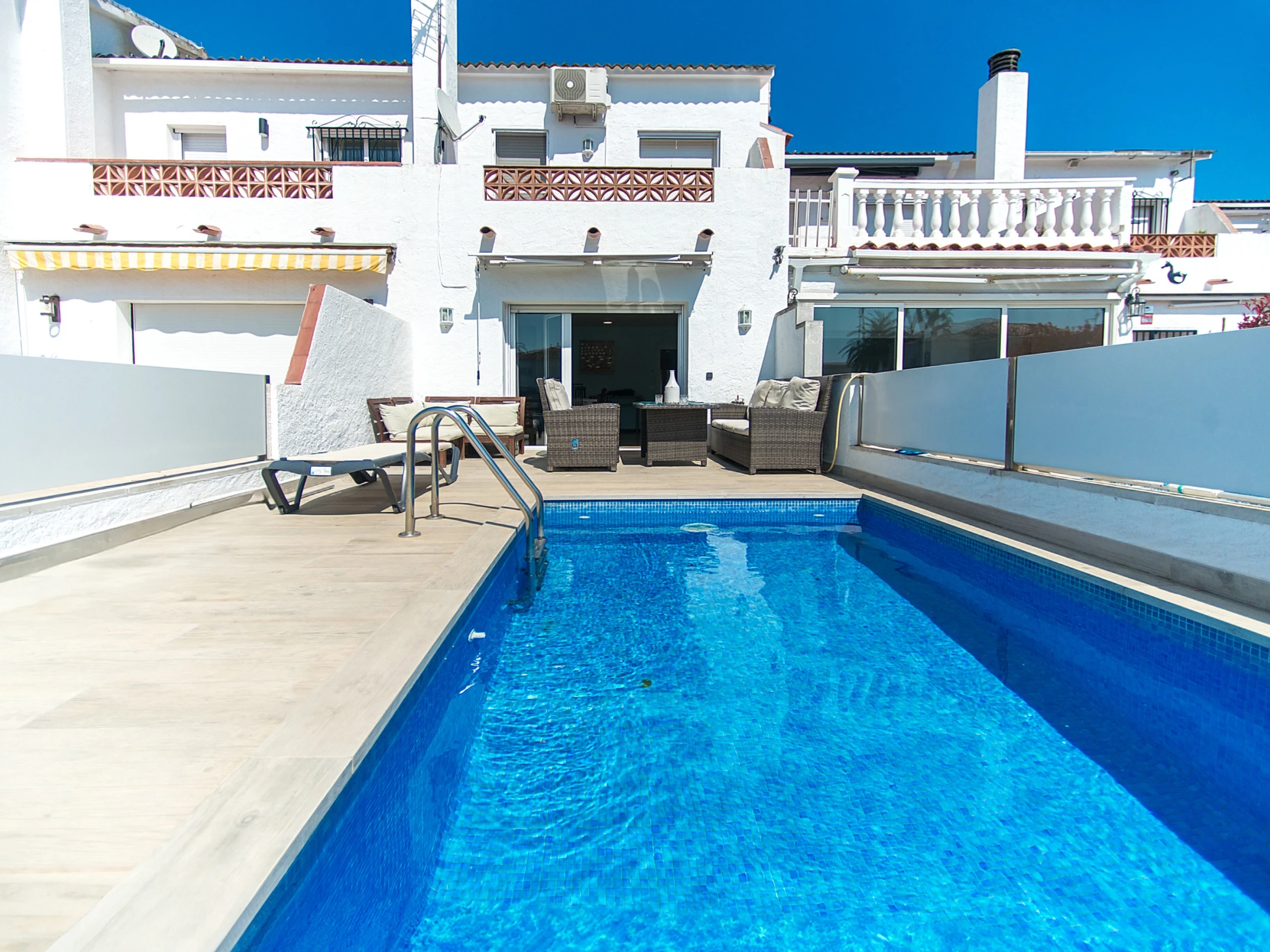 Imaginen una encantadora casa de dos pisos con terraza y piscina, con una superficie de 90 m², ubicada en la única ciudad de canales de Empuriabrava. Esta casa es ideal para alojar cómodamente a seis huéspedes y ofrece todas las comodidades necesarias para unas vacaciones inolvidables.