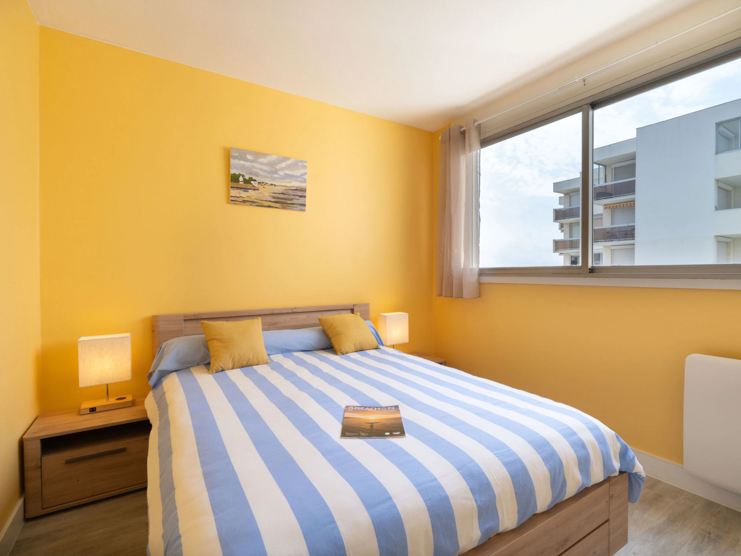Arcachon: Residencia "Port Arcachon", amplia. En el barrio de d'Aiguillon, a 600 m del mar, a 600 m de la playa. Comunitario: piscina (20 x 9 m, 60 - 200 cm de profundidad, Disponible por temporada: [hidden] - [hidden] horario piscina: 10:30-21:00). En el complejo: ascensor, sala para guardar bicicleta. Tienda 1 km, supermercado 900 m, centro comercial 7.3 km, restaurante 100 m, bar 1.8 km, panadería 130 m, café 100 m, parada autobús "Aiguillon" 50 m, estación de tren "Arcachon" 1.9 km, playa de arena "Aiguillon" 600 m, parque "Mauresque" 2.7 km, centro de buceo 250 m. Puerto deportivo 1.6 km, campo de golf (18 hoyos) 4.8 km, escuela de vela 250 m, caminos para bicicletas 5 m. Atracciones en los alrededores: Eratopia 8.5 km, Arca Jet Marine 250 m, Dune du Pyla 11.6 km, Navette maritime pour le Cap Ferret 1.7 km, Casino 1.7 km, Observatoire Sainte Cécile 2.7 km. Lagos conocidos fácilmente accesibles: Lac de la Magdeleine 9.2 km, Lac de Cazaux 17.1 km. A tener en cuenta: la entrega de llaves se realiza por la agencia en Arcachon, 2 km. Se pueden reservar alojamientos adicionales.
