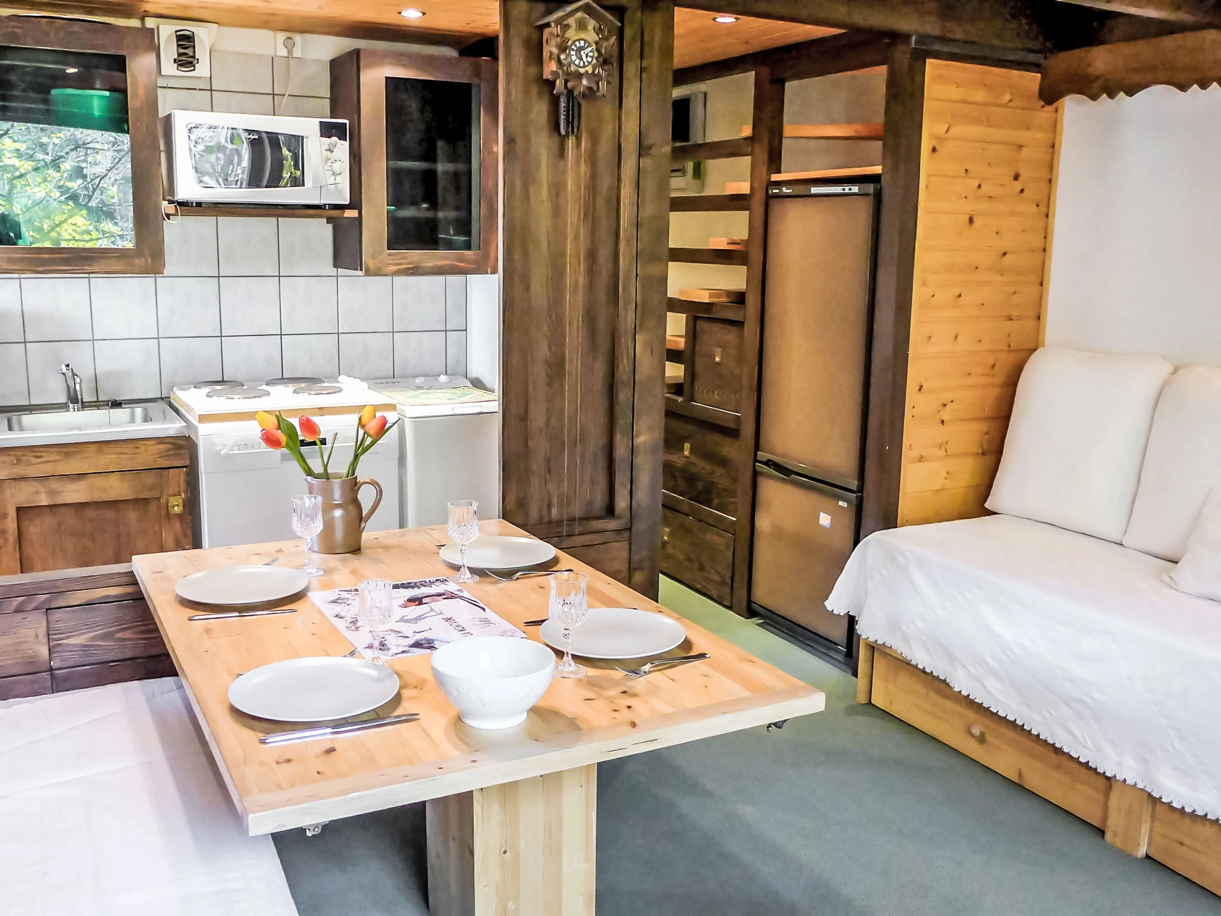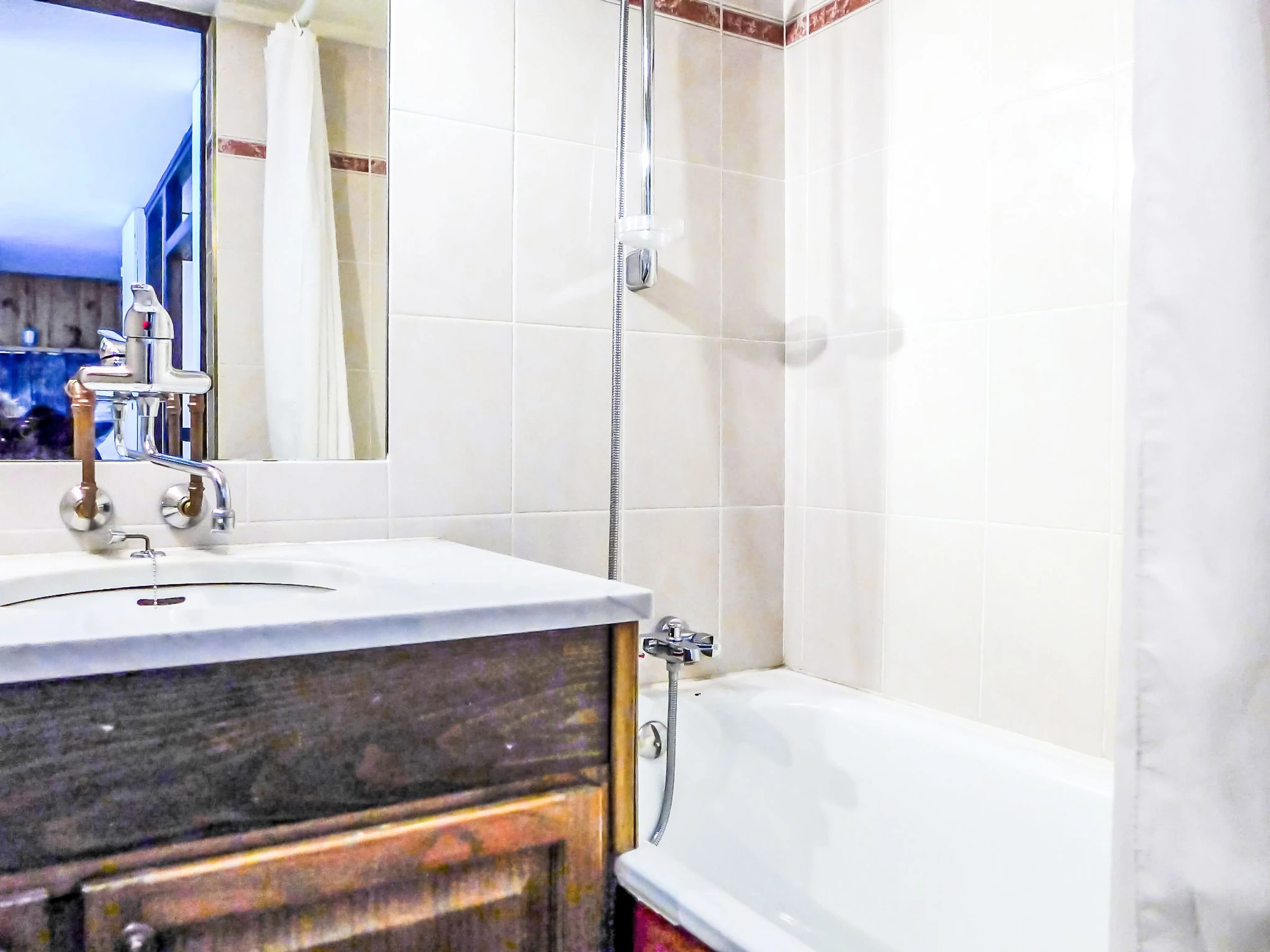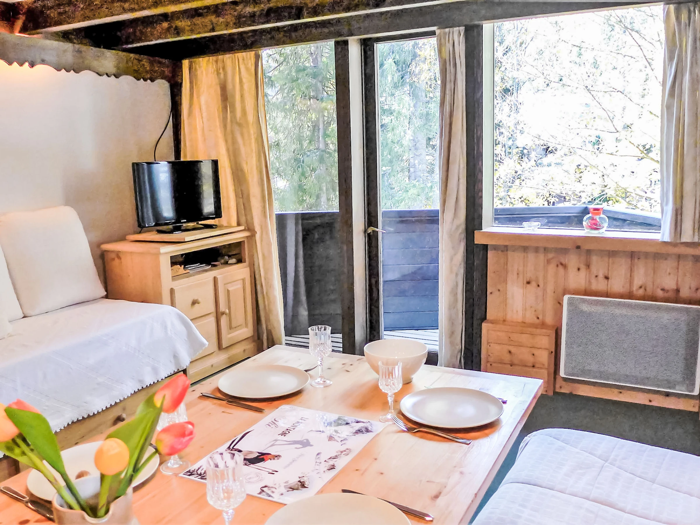 Estudio 40 m2 en 2 plantas en el 1° piso. Salón-comedor con TV. Salida al balcón. Rincón-cocina (lavavajillas, 4 placas de vitrocerámica, hervidor de agua eléctrico, cafetera eléctrica, microondas/grill). WC separado. Planta superior: altillo con 1 cama de matrimonio (160 cm, 200 cm de longitud), 1 cama-nido (2 pers. 2 x 90 cm, 190 cm de longitud). Baño. Calefacción eléctrica. Balcón. Vista bonita a las montañas. El alojamiento dispone de: lavadora. Internet (Wifi, extra). A tener en cuenta: TV solamente FR. Detector de humo. En lugar de un dormitorio cerrado, algunos espacios para dormir están situados en una zona diáfana (galería, alcoba, etc.).