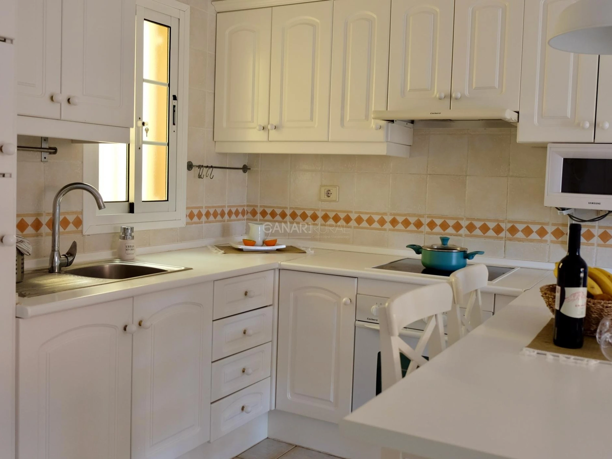 * Salón y cocina integrada totalmente equipada con: vitrocerámica, horno, nevera-congelador, tostadora, kettle y cafetera