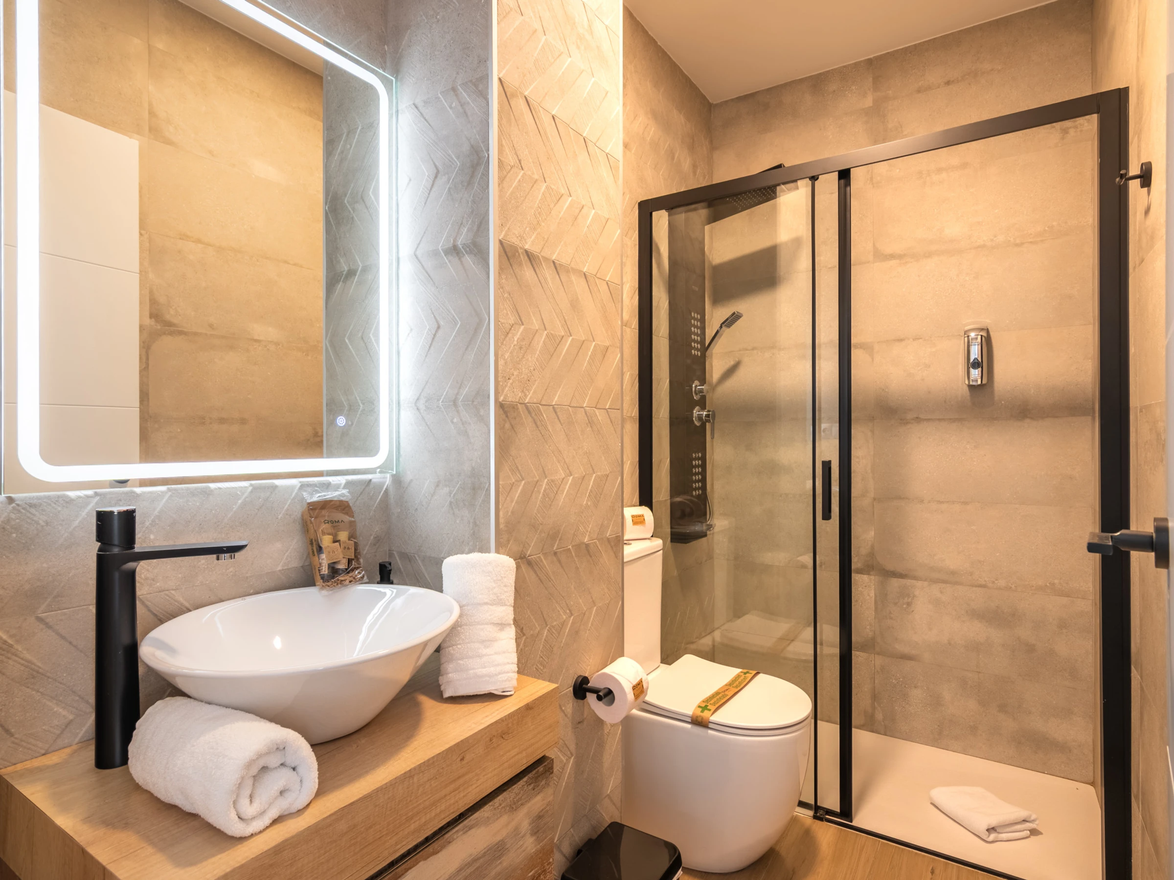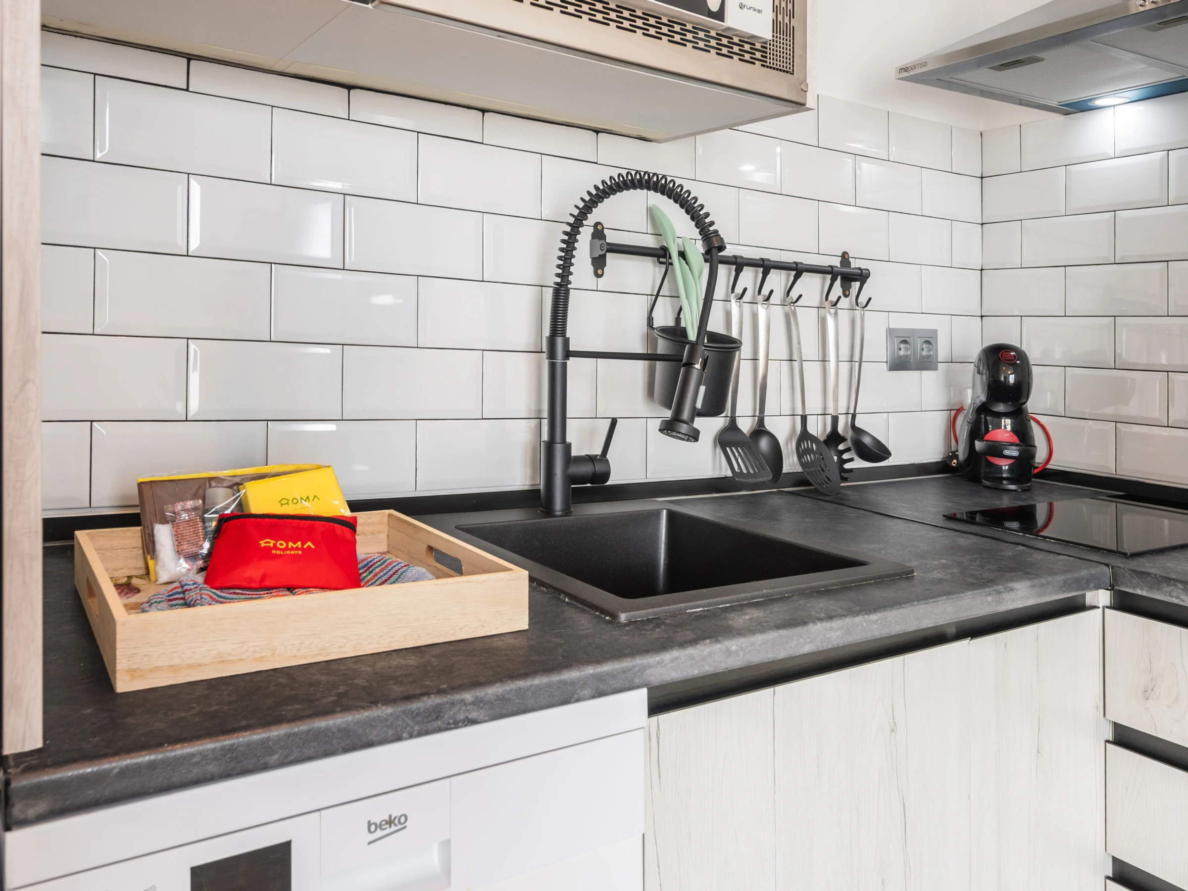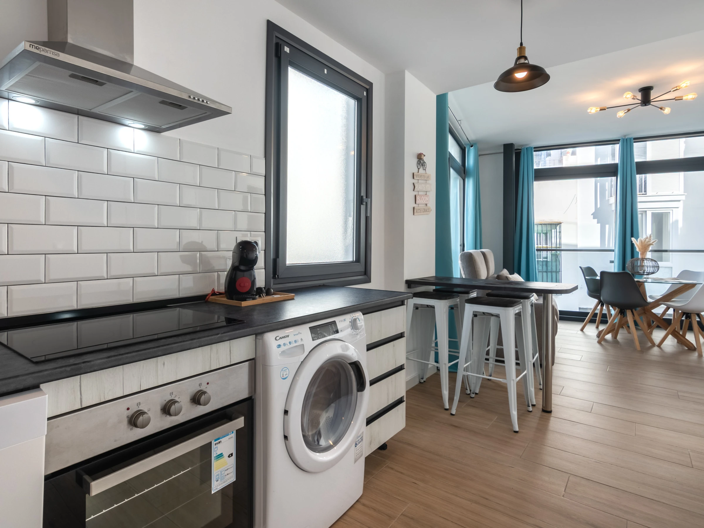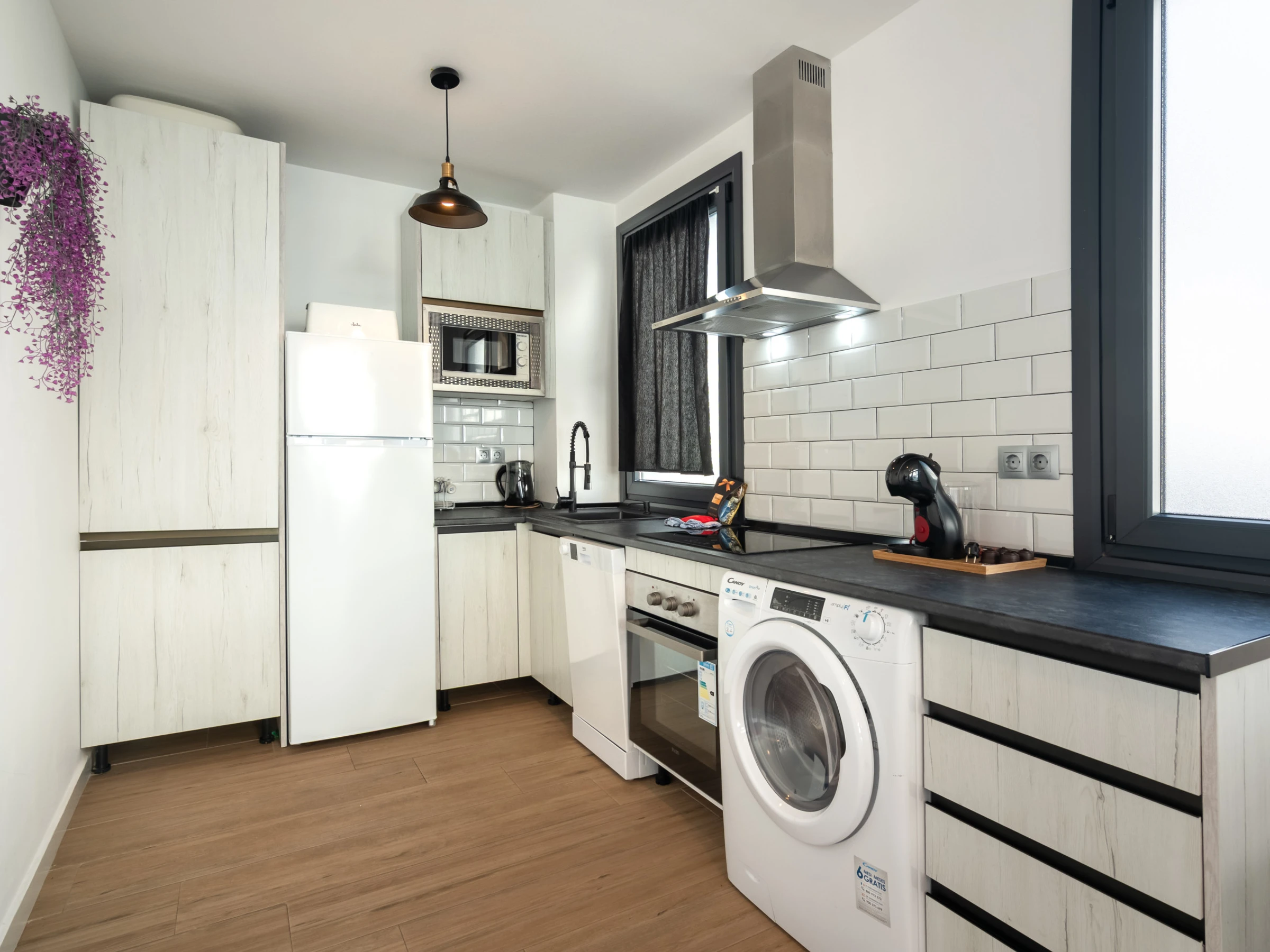 La cocina americana está totalmente equipada con electrodomésticos de última generación, incluyendo lavadora, lavavajillas, horno, microondas, cafetera y una variedad de utensilios que te permitirán preparar deliciosas comidas juntos. Cuenta con una cama doble y un baño con ducha, creando un ambiente íntimo y funcional.