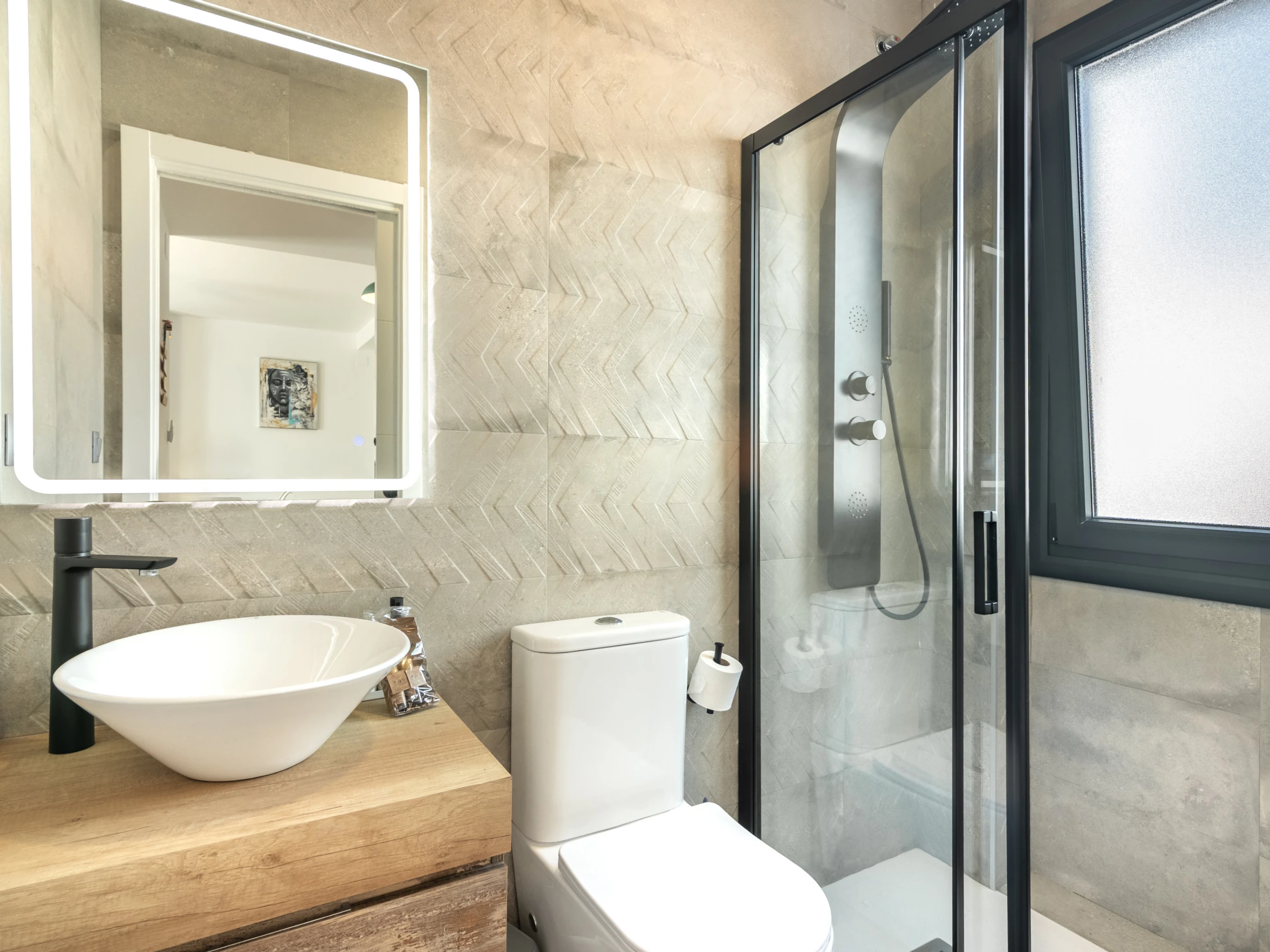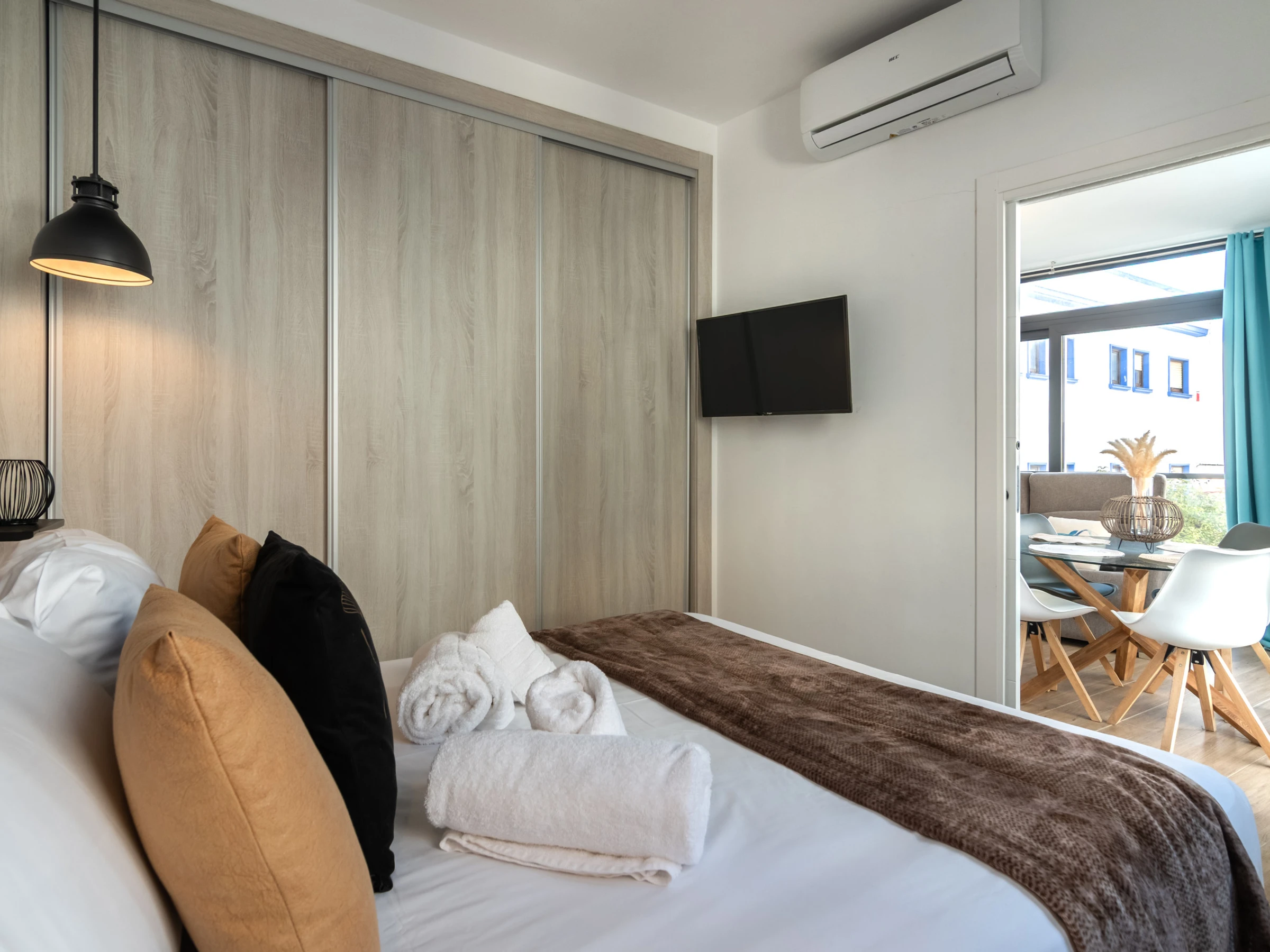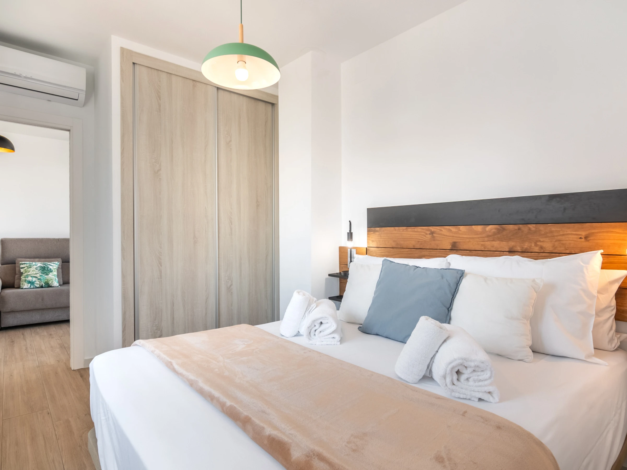 El apartamento cuenta con una piscina compartida de 7x2.8m, ideal para refrescantes momentos en pareja durante los días calurosos. El interior está completamente equipado con aire acondicionado y calefacción por bomba de calor para garantizar tu confort en cualquier época del año.