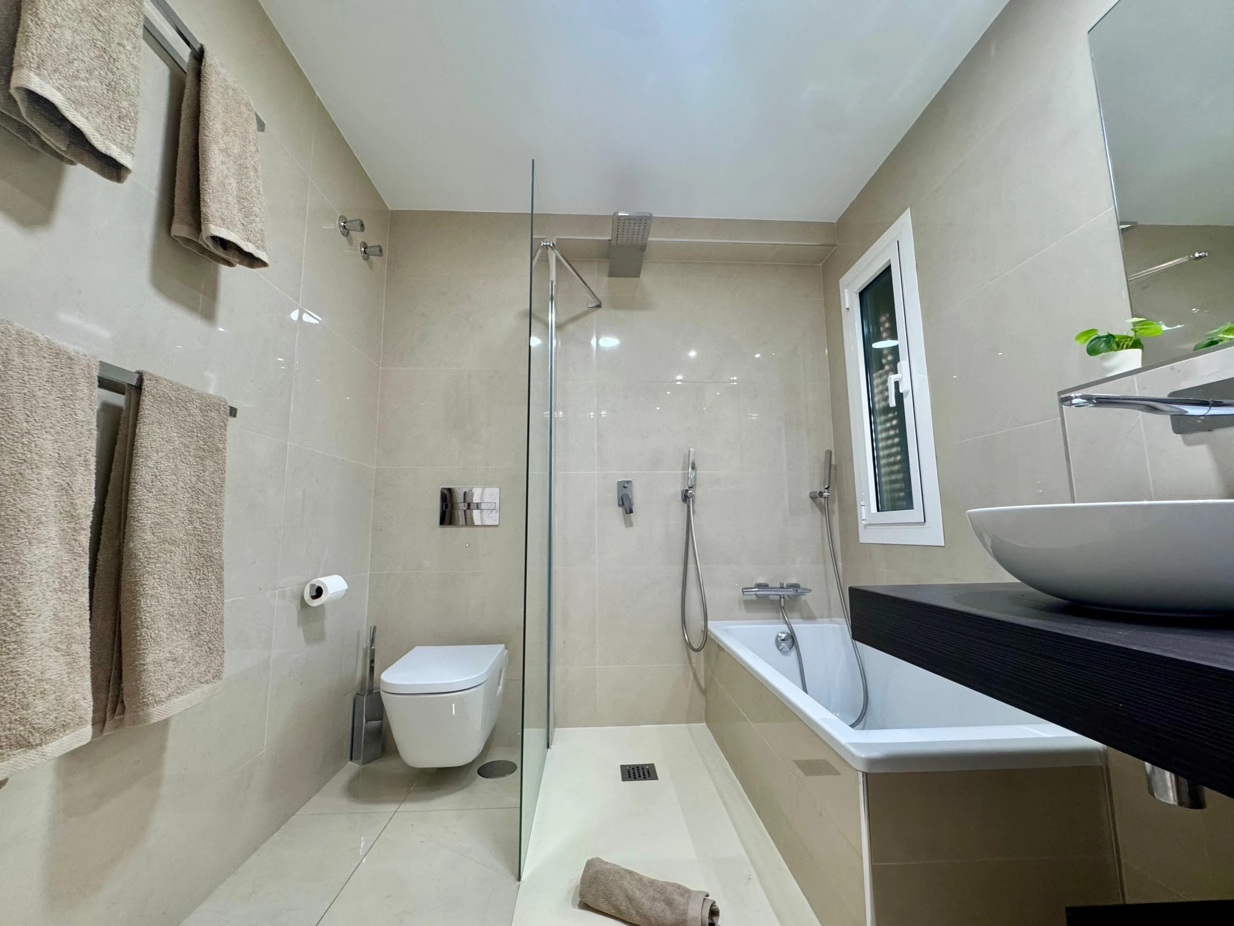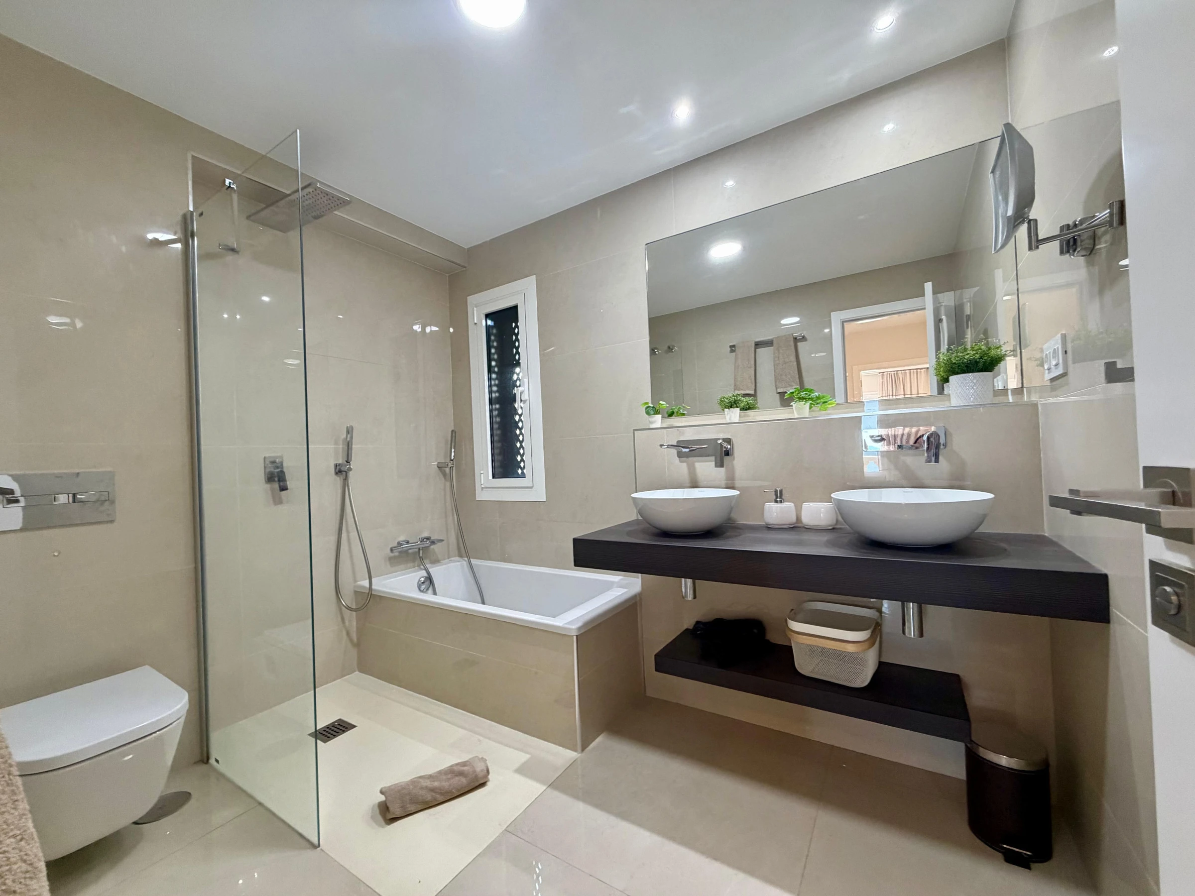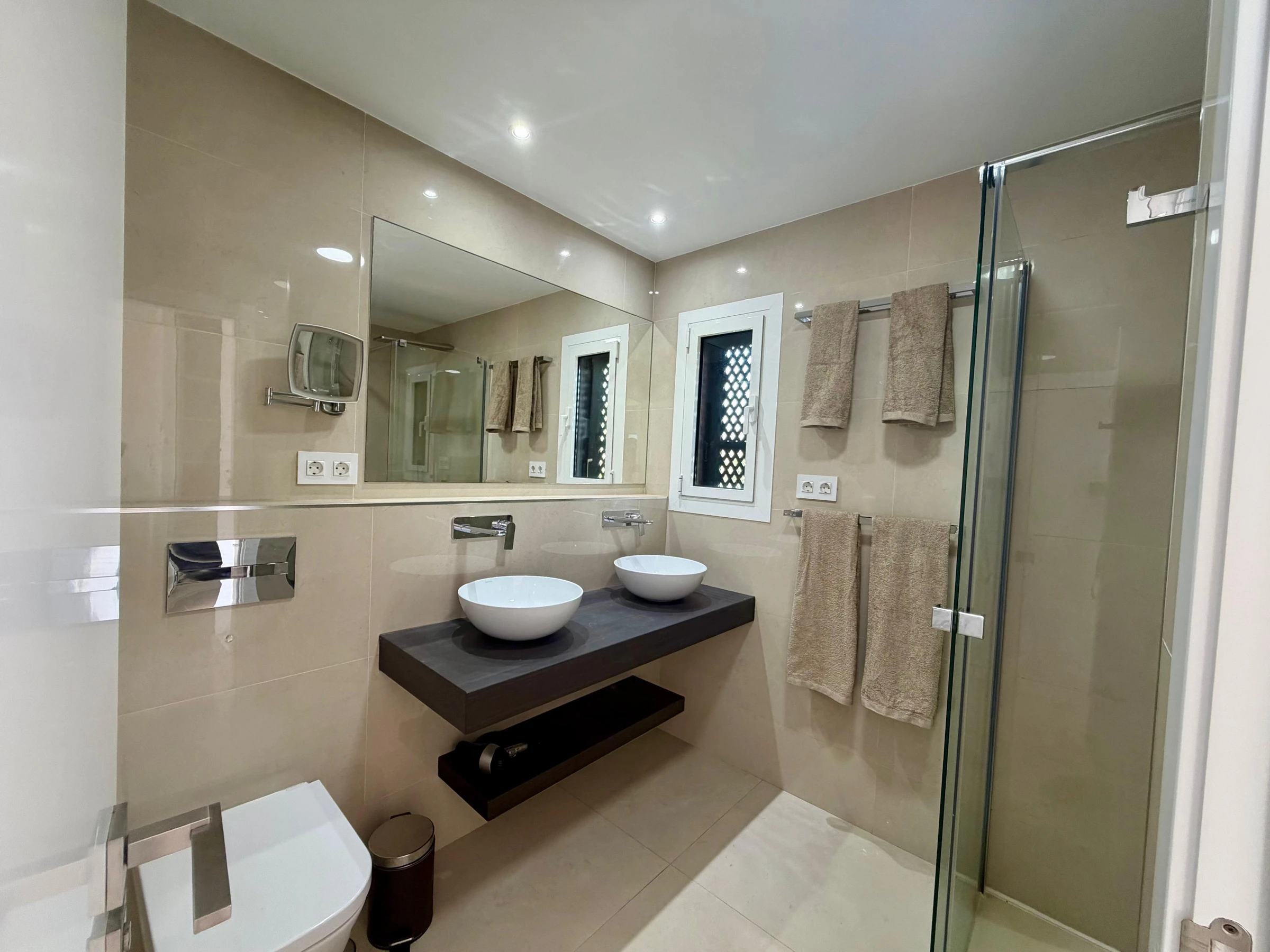 Dispone de jardín, mobiliario jardín, parcela vallada, 50 m² de terraza, lavadora, plancha, acceso internet (wifi), secador, balcón, aire acondicionado en todo el alojamiento, piscina privada, parking aire libre en mismo edificio, 3 Televisores.