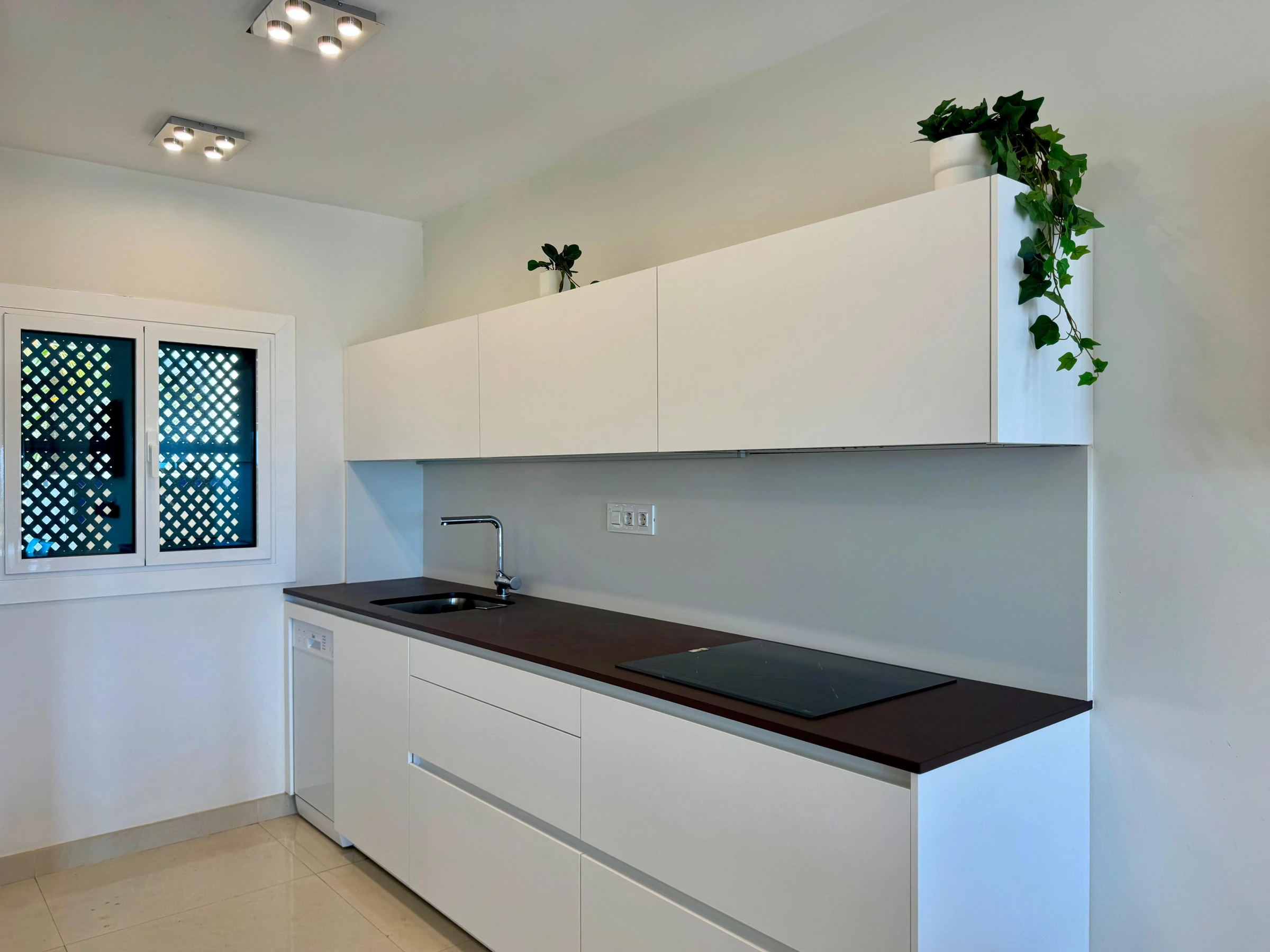 La cocina americana, de vitrocerámica, está equipada con nevera, microondas, horno, congelador, lavavajillas, vajilla/cubertería, cafetera, tostadora, hervidor de agua y exprimidor.