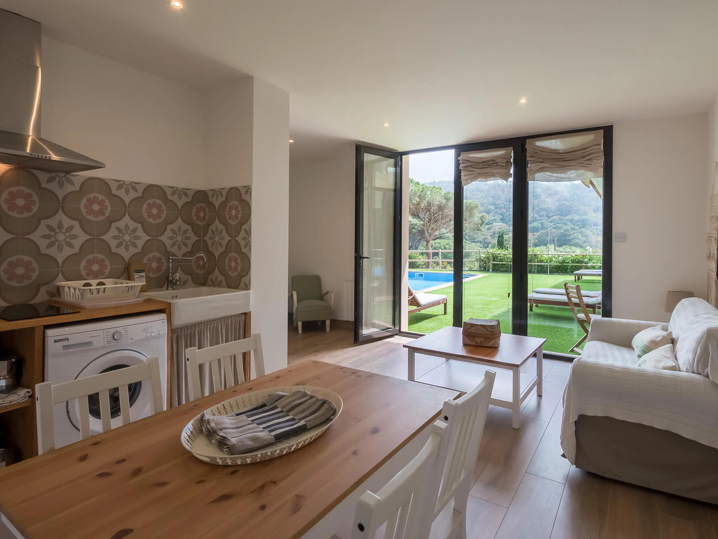 Agradable apartamento de nueva construcción. Situado en una pequeña comunidad de tres apartamentos que comparten piscina. Begur, Costa Brava. A 2 km del centro de Begur y 9 minutos en coche de la playa de Sa Riera. Capacidad 2 personas, una habitación. Dispone de un salón comedor, cocina abierta, habitación con cama doble y baño con ducha. Des del comedor hay acceso al jardín y piscina comunitaria. Hay ventiladores instalados en el apartamento. La cocina esta básicamente equipada. No dispone de horno. Hay una limpieza extra incluida durante su estancia sin coste. Se puede estacionar el vehículo dentro de la finca, parking exterior. Hay wifi en la propiedad. Servicio de televisión e internet 3G no garantizado debido a una mala cobertura en la zona. Para cualquier duda respecto a esta propiedad, por favor, no dude en contactarnos.