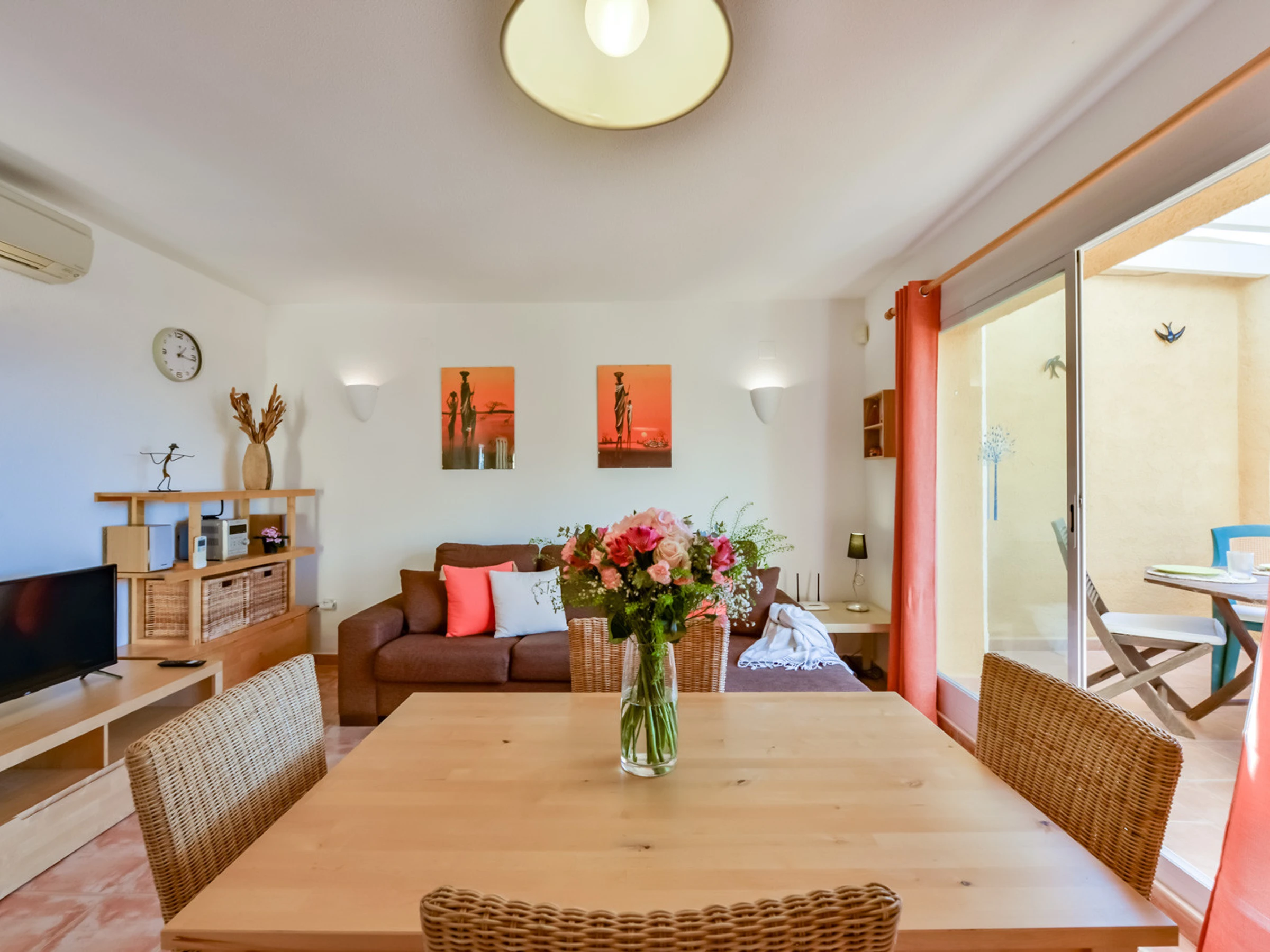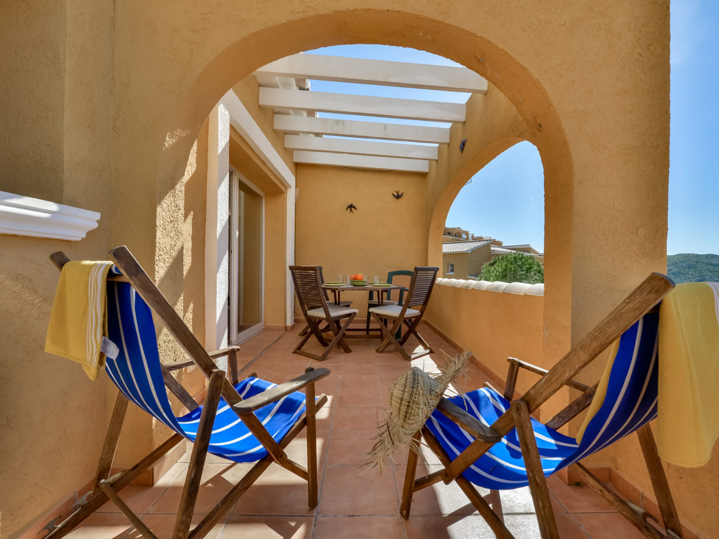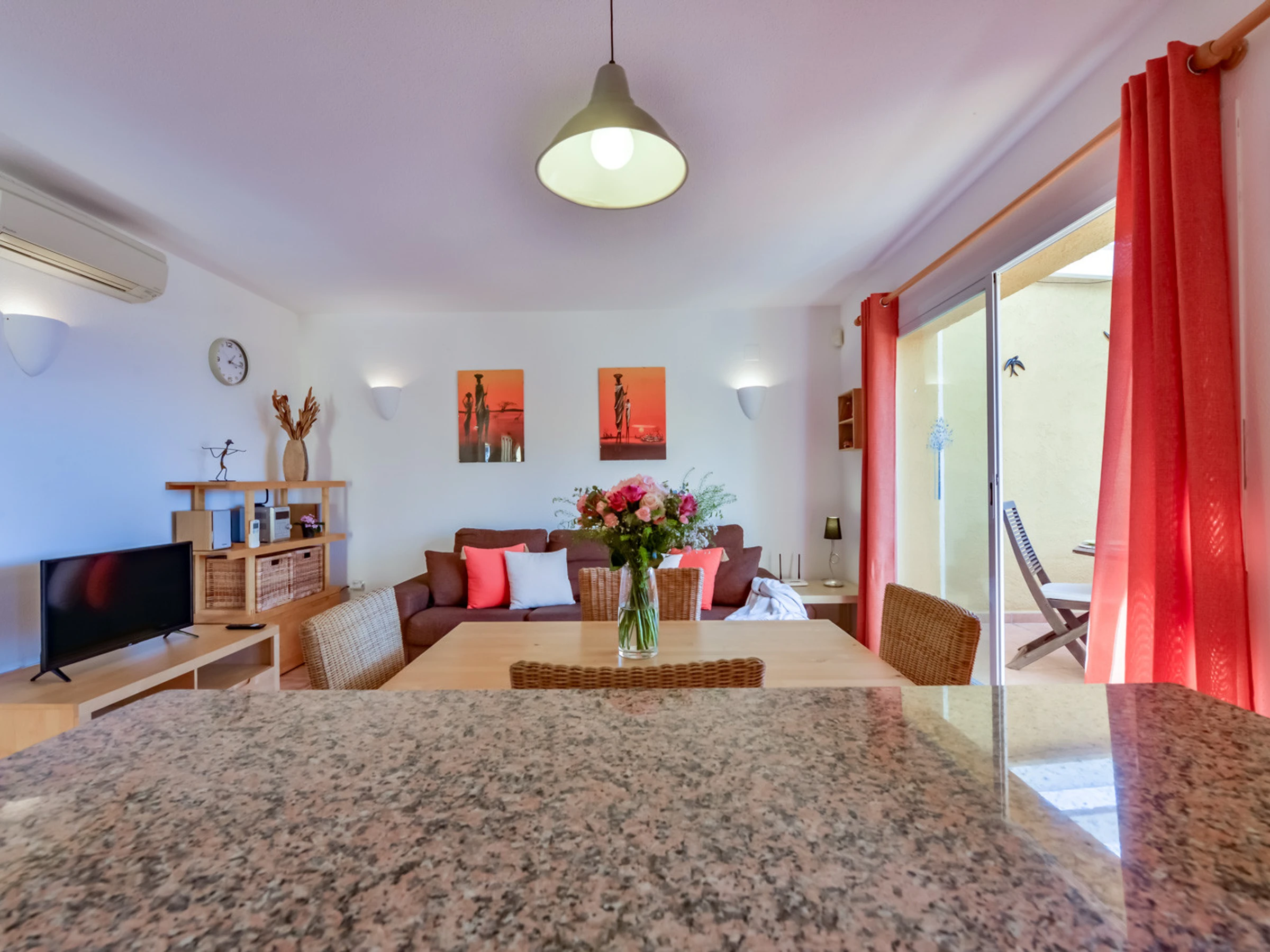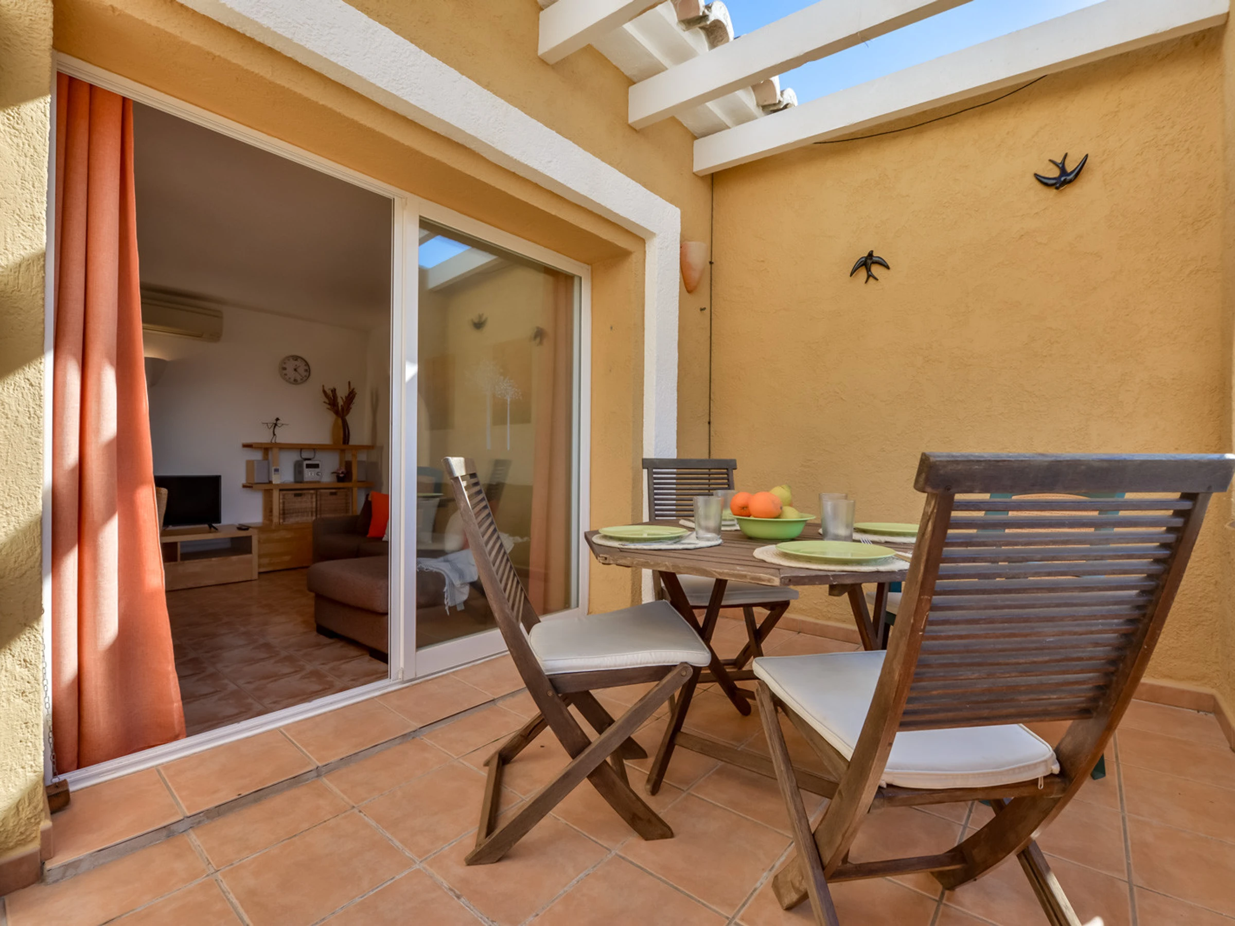 Con 60 m², tiene un salón comedor con aire acondicionado, una cocina abierta al salón y una terraza con unas vistas preciosas abiertas, con mesa para comer en el exterior. Una habitación con cama de matrimonio y una segunda habitación con dos camas individuales y un baño con ducha.