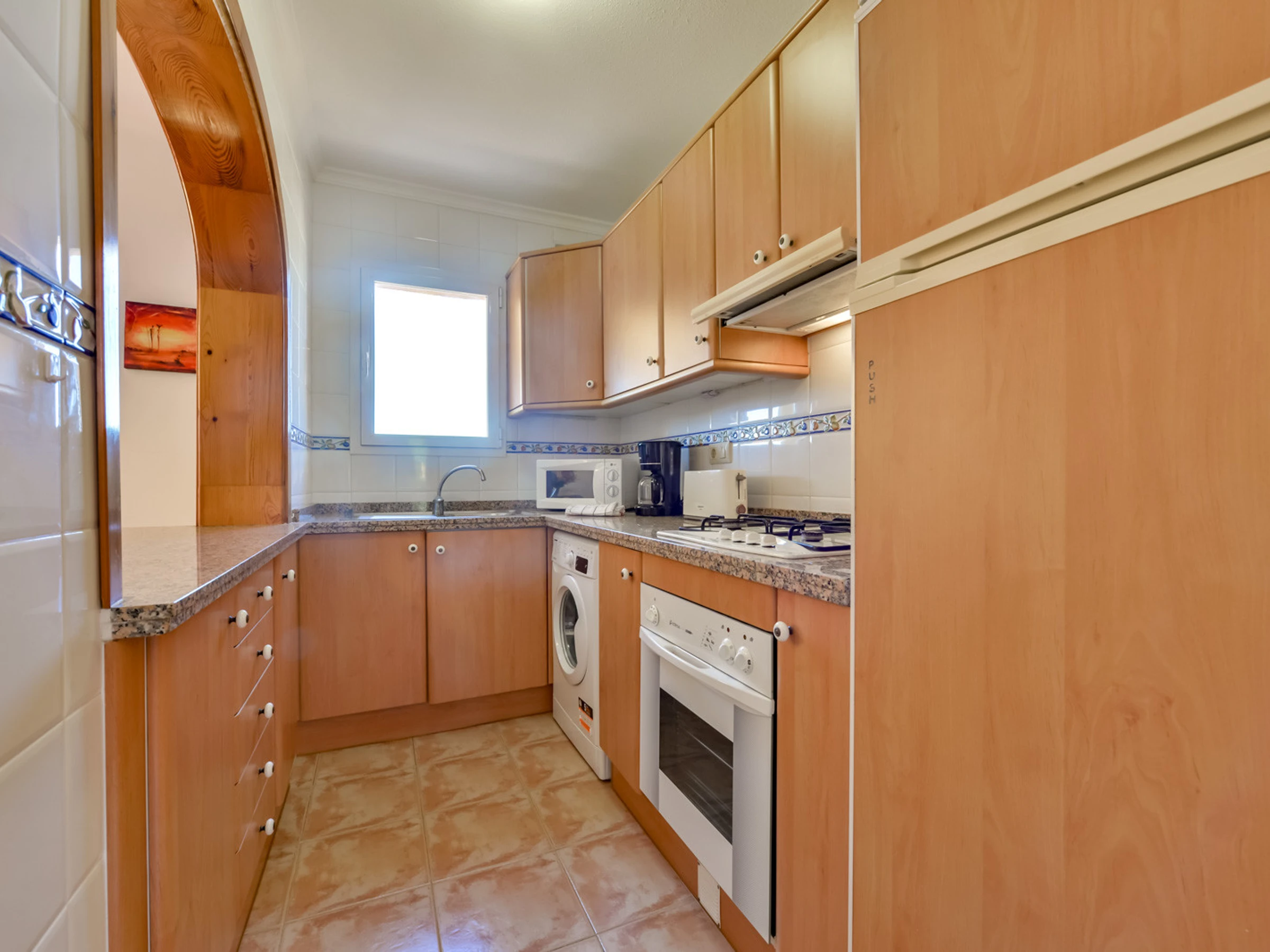 La cocina independiente, de mixta: gas y eléctrica, está equipada con nevera, microondas, horno, congelador, lavadora, vajilla/cubertería, utensilios/cocina, cafetera, tostadora, hervidor de agua y exprimidor.