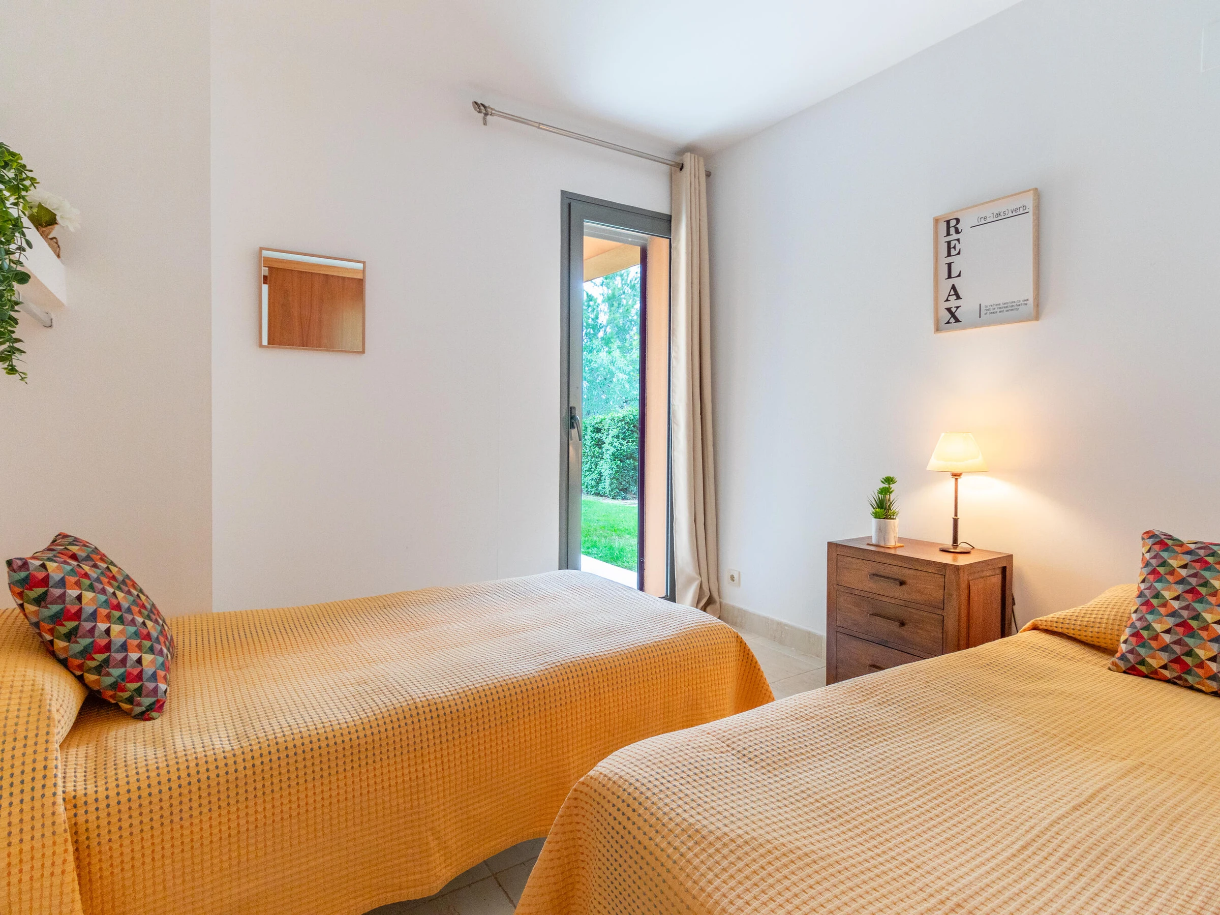 En este alojamiento se respira tranquilidad: ¡relájate con toda la familia!.Preciosa planta baja situada en el club de golf Bonmont Terres Noves. Urbanización de Mont-Roig Del Camp/ Miami Playa. Consta de 2 dormitorios dobles. Cocina individual completamente equipada. Baño con plato de ducha. Salón comedor con salida a gran jardín privado con un bonito porche para disfrutar en compañia. Dispone de Wifi, Aire acondicionado, Plaza de parking exterior y piscina comunitaria. Reserva tus vacaciones. Sábanas y toalla NO incluidas en el alojamiento. Tasa turistica a pagar el dia de llegada.