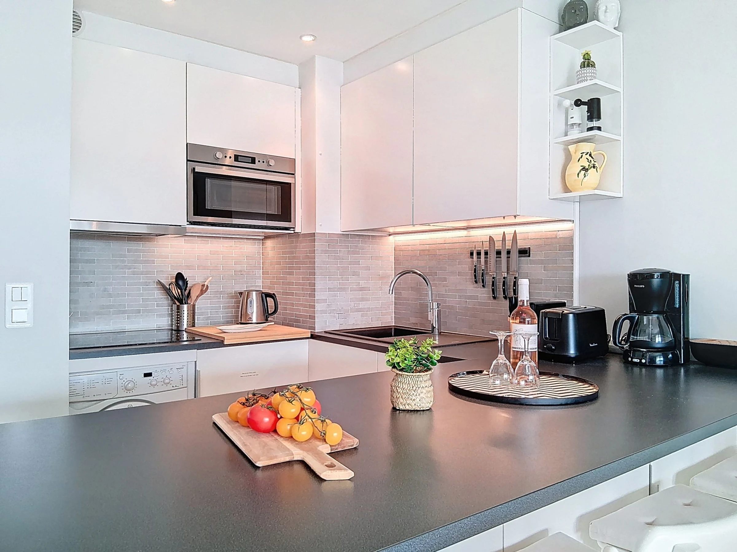 Estudio 30 m2 en el 5° piso, orientación suroeste. Con mobiliario confortable y moderno: salón-dormitorio con 1 cama-armario (160 cm, 200 cm de longitud), TV y pantalla plana. Salida a la terraza. Cocina abierta (lavavajillas, 3 Placas de inducción, tostadora, hervidor de agua eléctrico, microondas, congelador, cafetera eléctrica, Cápsulas de café (NESPRESSO) extra). Salida a la terraza. Ducha/WC. Calefacción, aire acondicionado. Terraza grande 12 m2, orientación sur y orientación oeste. Muebles de terraza. Vista muy bonita al mar, a la piscina, al jardín y a la localidad. El alojamiento dispone de: lavadora, plancha, secador de pelo. Internet (Wifi, gratis). Plaza de aparcamiento (1 coche). A tener en cuenta: casa para no fumadores. Detector de humo. Oferta de un particular según el art. 155, IV del CGI. [hidden]