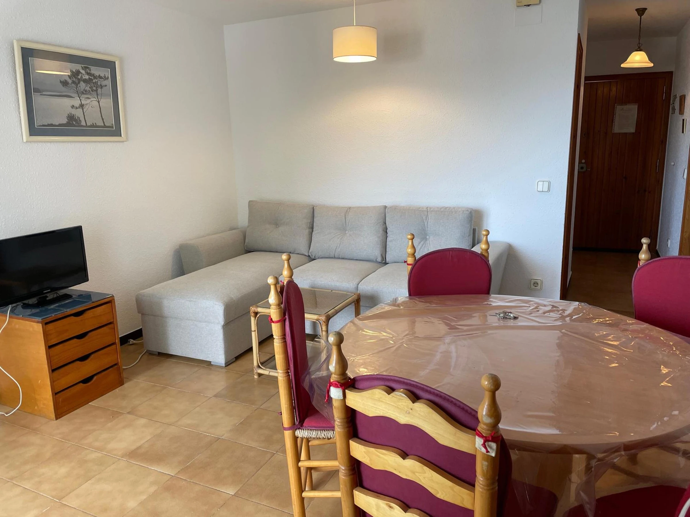 Apartamento situado en una agradable comunidad con piscina en el centro de Calella de Palafrugell. Se compone de salón-comedor con salida a terraza con fantástica vista al mar, cocina equipada, 2 habitaciones dobles (las 2 con cama doble) y 1 baño completo reformado. La comunidad es muy agradable con un amplio jardín y piscina, así como un pequeño espacio parajugar a fútbol. Se accede a ella por 2 calles diferentes, y de un lado tiene enfrente un gran supermercado. Cerca del centro y a menos de 200 metros de la playa "Port Pelegrí". La terraza es mínima, con espacio justo para una mesa pequeña. Edificio con ascensor. Capacidad para 4 personas. Parquing en garaje comunitario. La piscina comunitaria está CERRADA del 15 de octubre al 15 de mayo Para cualquier otra pregunta respecto a esta propiedad, no dude en contactarnos.