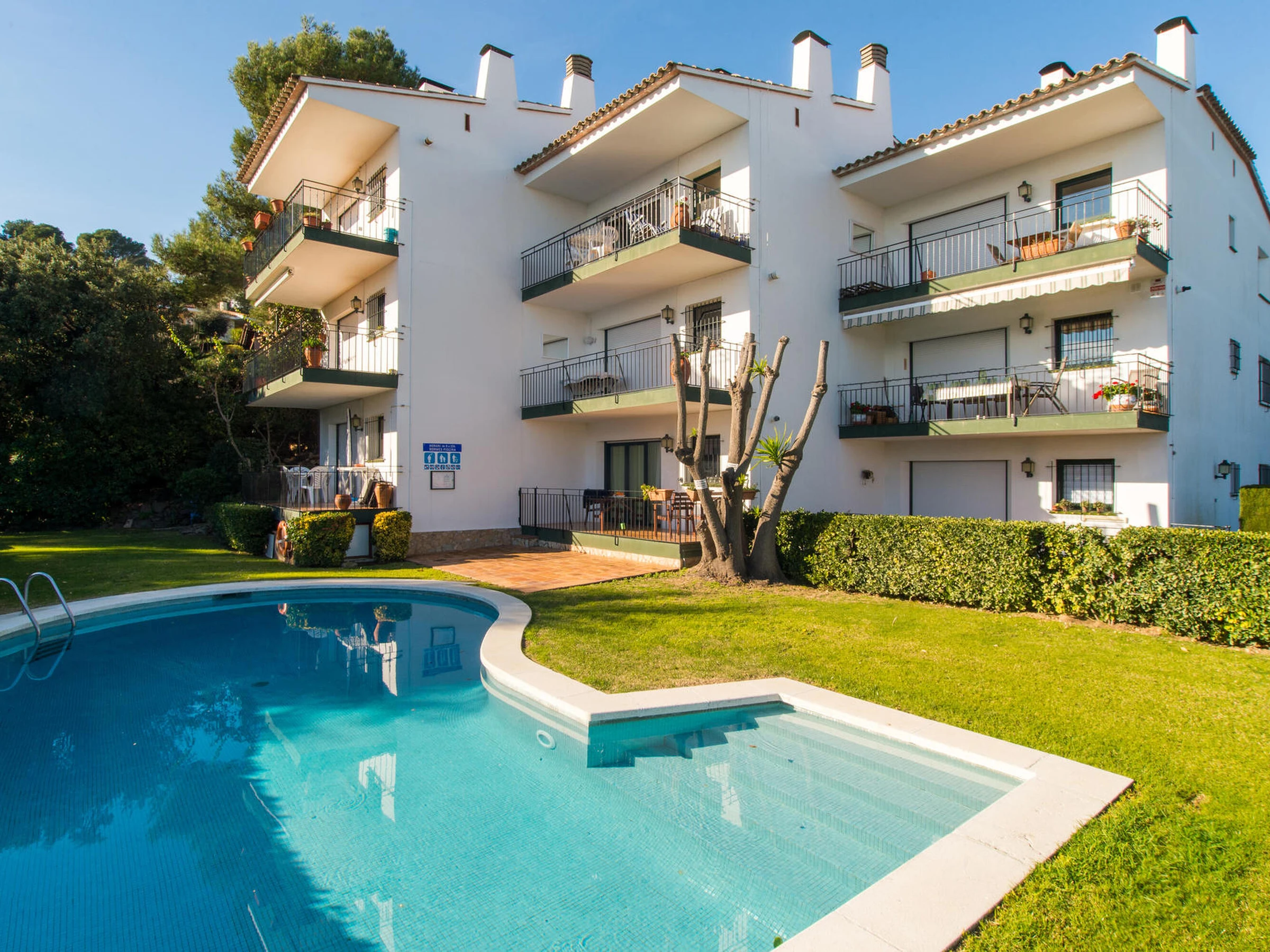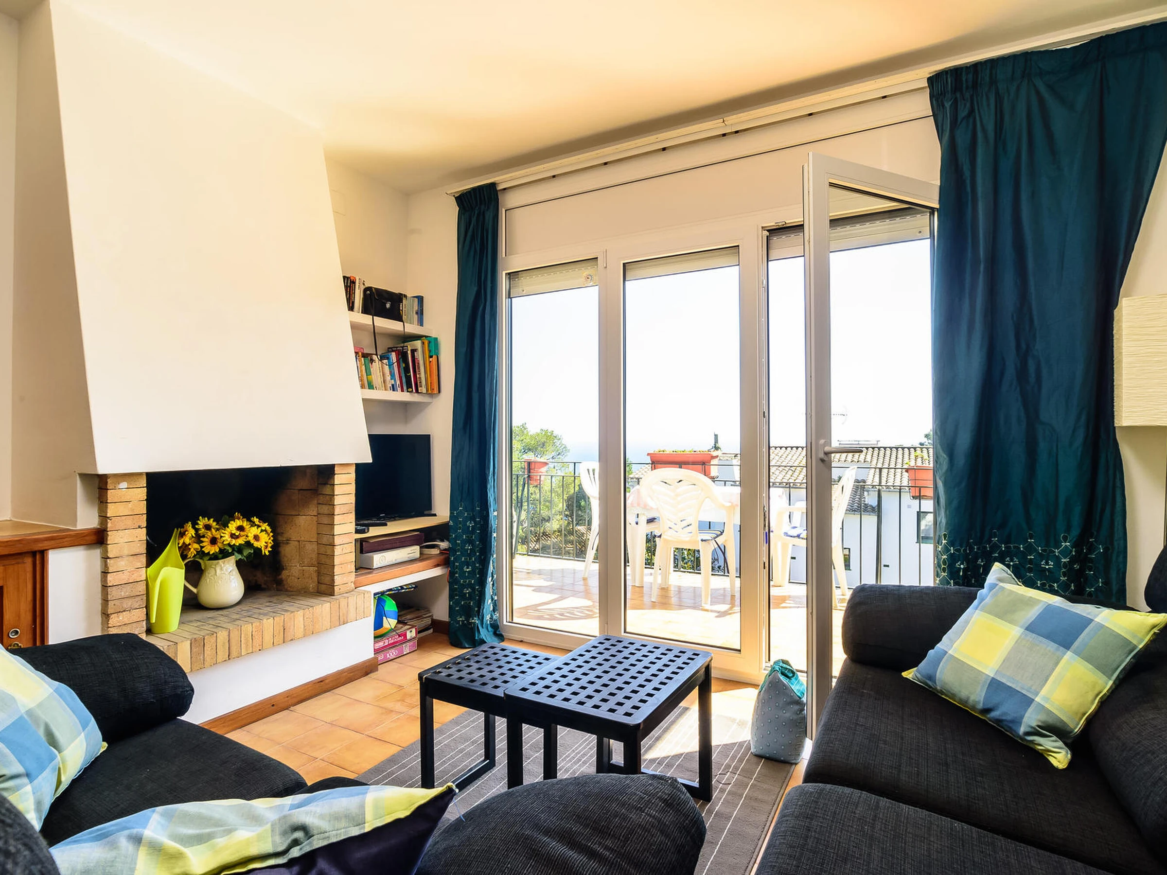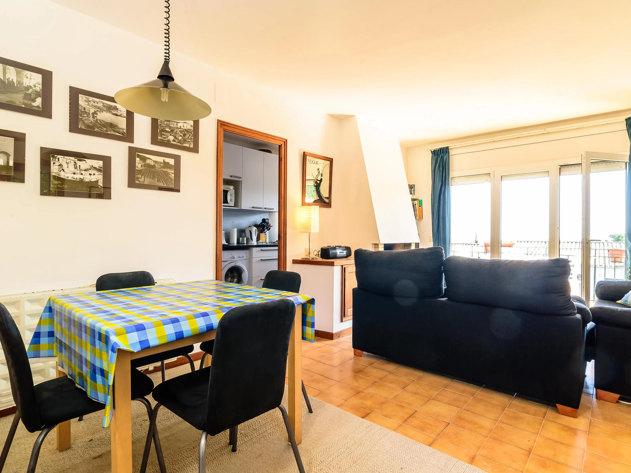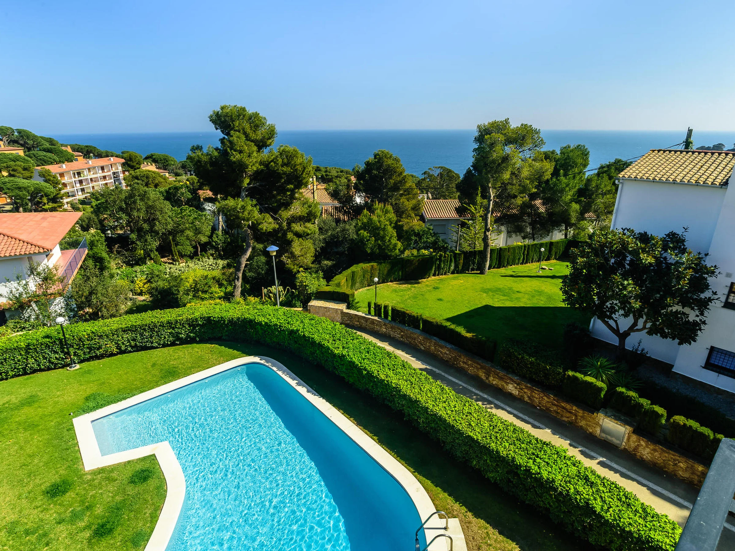 Apartamento con vistas al mar en El Golfet – Calella de Palafrugell Apartamento situado en la tranquila zona de El Golfet, en Calella de Palafrugell, con capacidad para 4 personas. Se encuentra a solo 10 minutos caminando de la playa del Golfet y a 5 minutos en coche del centro del pueblo, al que también se puede acceder a través del camino de ronda que bordea la costa. El apartamento forma parte de una pequeña y familiar comunidad de solo 15 apartamentos, con jardín y piscina comunitaria, ideal para disfrutar de un ambiente relajado. Ubicado en un segundo piso, ofrece unas espléndidas vistas al mar. Dispone de un luminoso salón-comedor con salida a una amplia terraza con fantásticas vistas, cocina totalmente equipada, dos habitaciones dobles y un amplio baño completo. Incluye aparcamiento en garaje comunitario. WIFI comunitario (no se garantiza la velocidad ni el correcto funcionamiento del servicio) y televisión por satélite. Para cualquier otra pregunta respecto a esta propiedad, no dude en contactarnos.