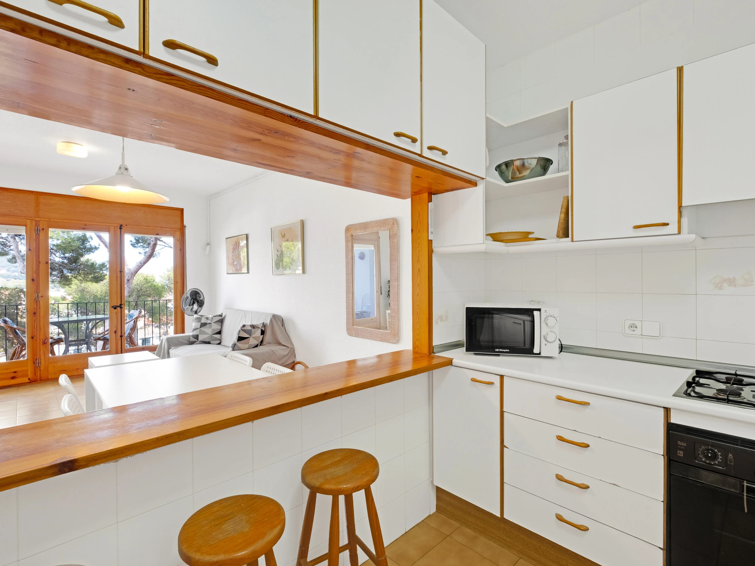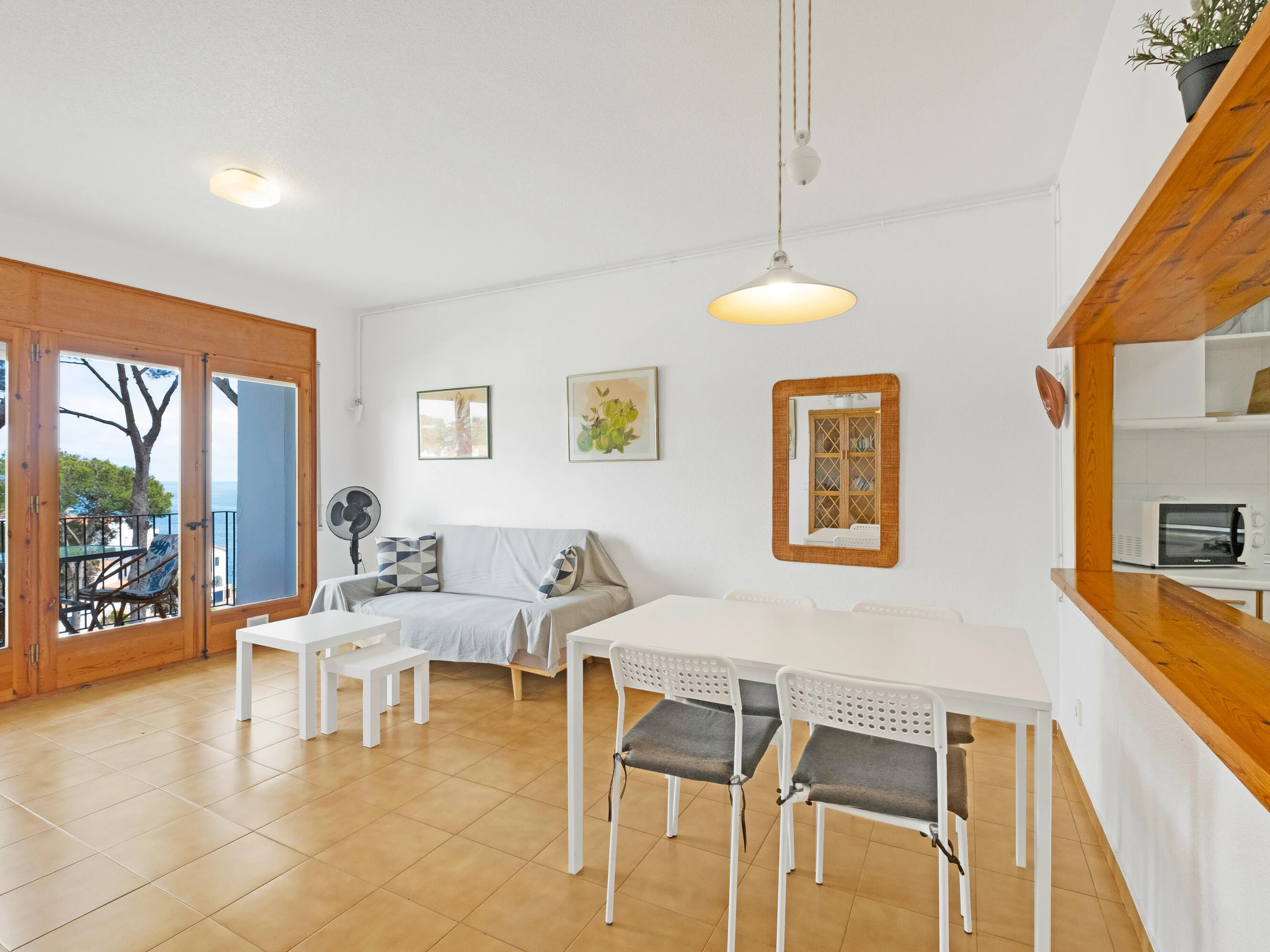 Apartamento con vistas al mar y piscina en el centro de Calella de Palafrugell Acogedor apartamento situado en una bonita comunidad con jardín y piscina, en el centro de Calella de Palafrugell, ideal para una escapada relajante en pareja. Se trata de un segundo piso que dispone de un luminoso salón-comedor con acceso a una amplia terraza con magníficas vistas al mar, cocina equipada, un dormitorio doble y un baño completo. La comunidad es muy agradable y ofrece un gran jardín con piscina, así como un pequeño espacio para jugar en familia. El edificio tiene acceso por dos calles diferentes y, en una de ellas, hay un gran supermercado justo enfrente. Ubicado cerca del centro y a menos de 200 metros de la playa de Port Pelegrí. Apto para 2 personas, ideal para parejas. Aparcamiento en garaje comunitario incluido. La piscina comunitaria está CERRADA del 15 de octubre al 15 de mayo. Para cualquier otra pregunta sobre este apartamento, no dude en contactarnos.