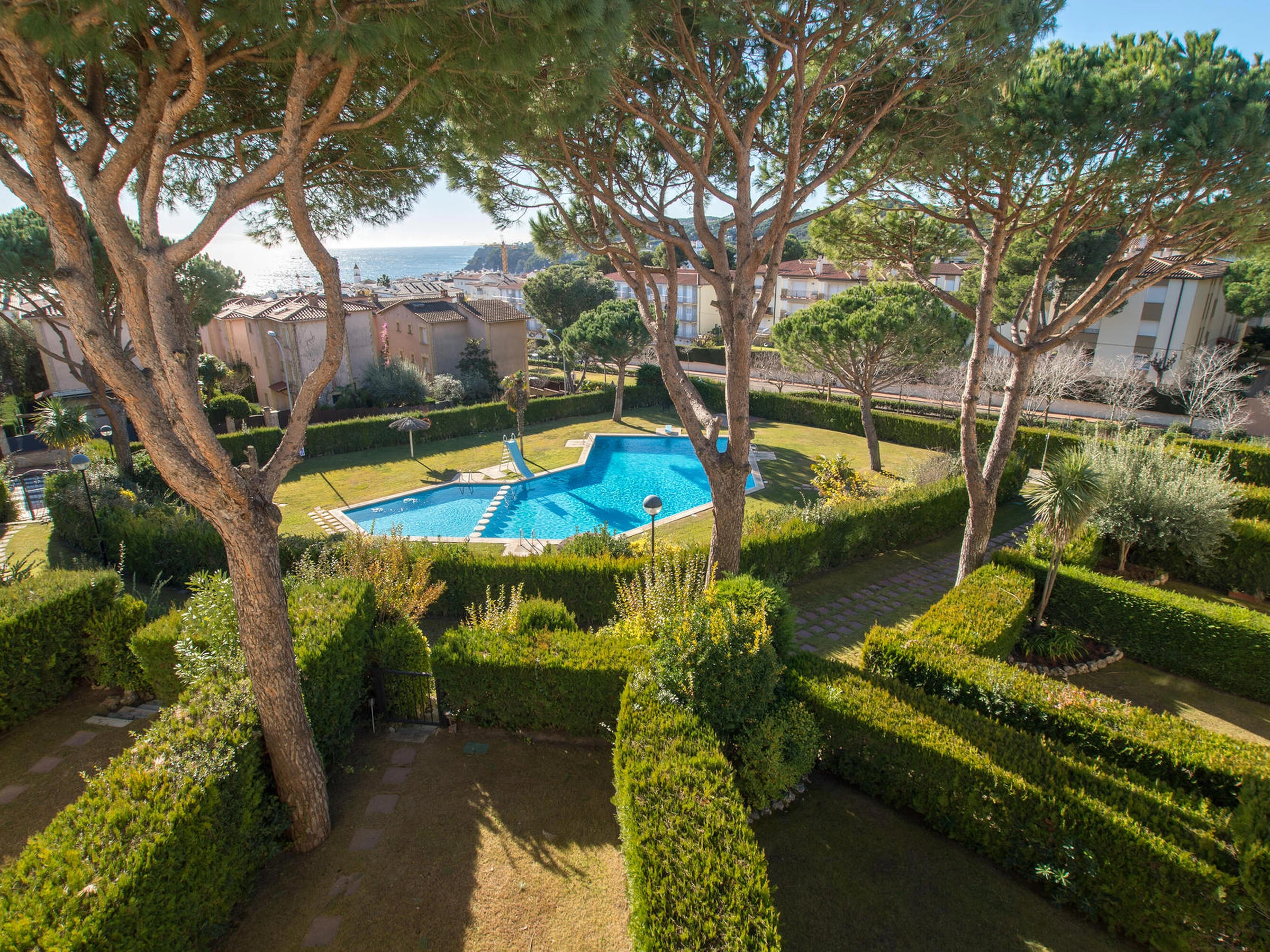 Bonito apartamento con vistas al mar, ubicado en tranquila zona no lejos del centro en Calella de Palafrugell. Dispone de salón-comedor con salida a terraza con vista al mar y a la zona comunitaria ajardinada y piscina. El apartamento cuenta con 2 habitaciones dobles, dos baños completos y cocina completamente equipada. Situado a 600 metros de las playas y del centro. Parking asignado. Para cualquier duda respecto a esta propiedad, no dude en contactarnos.