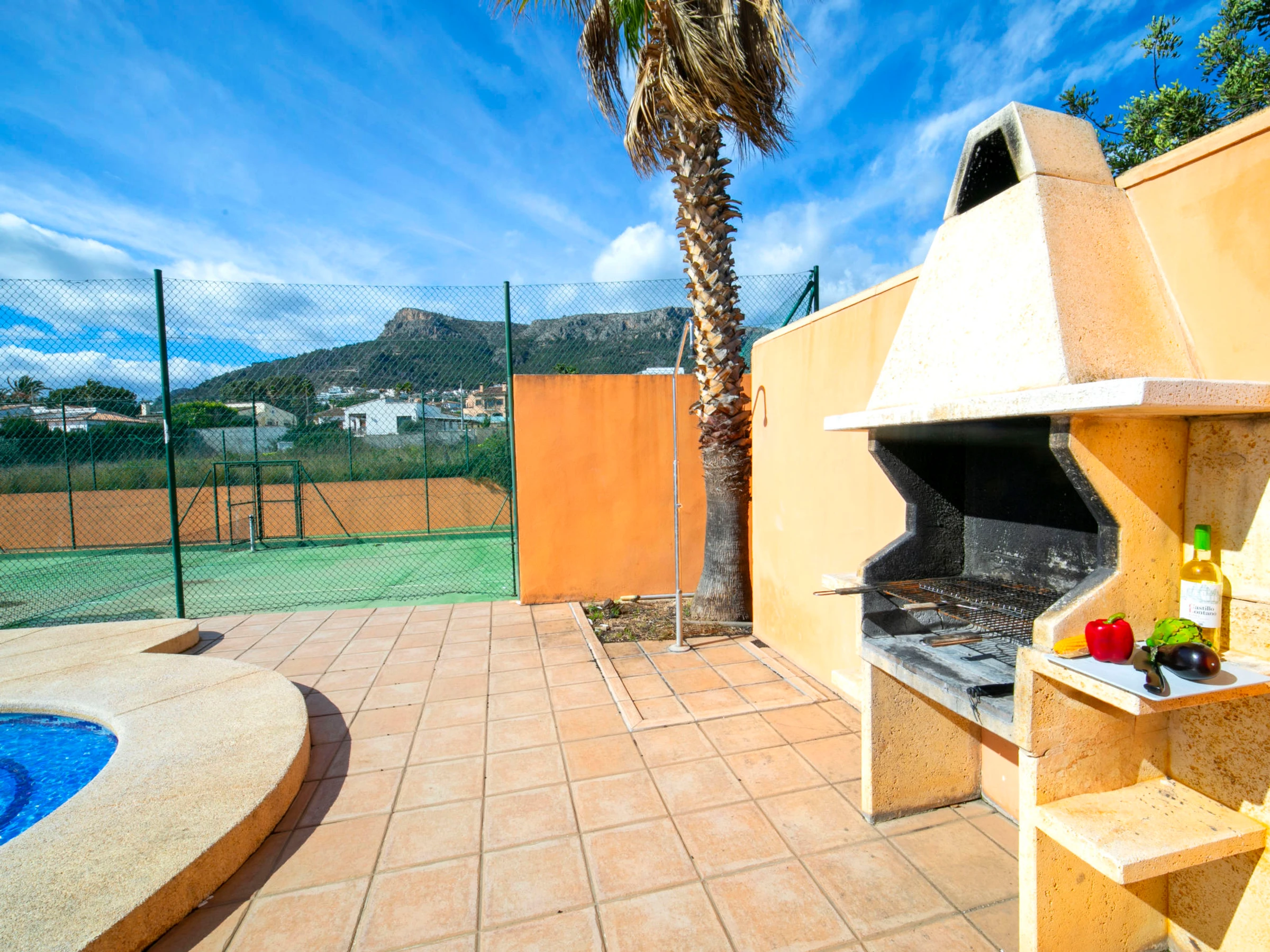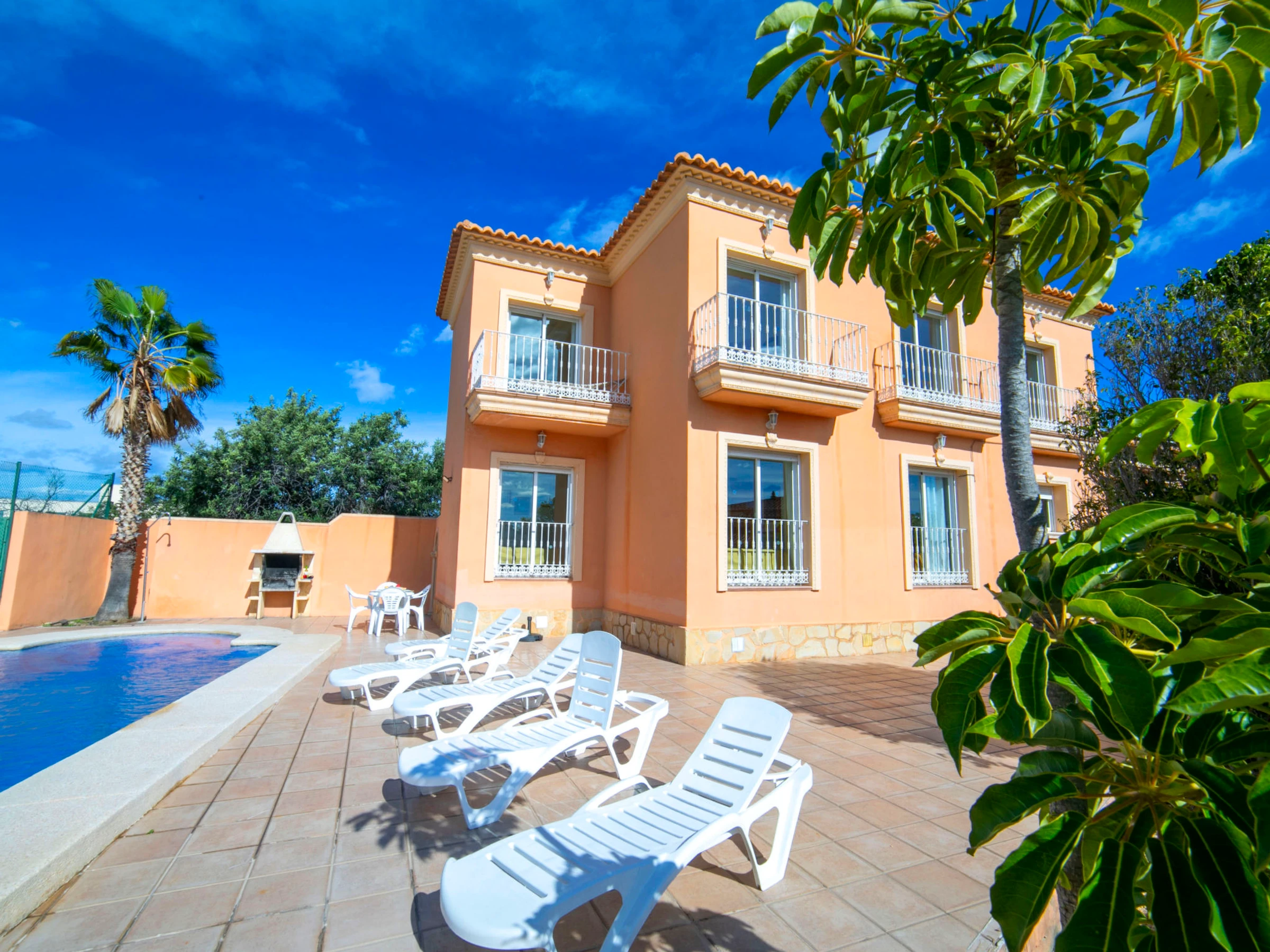 "Solpadel", villa 10 estancias 350 m2. Espacioso: salón-comedor con mesa de comedor, TV satélite, canales internacionales, aire acondicionado y bomba de calor, caliente. 1 dorm. con 1 cama de matrimonio (135 cm, 190 cm de longitud), aire acondicionado y bomba de calor, caliente. Salida a la terraza. 2 dorm., cada habitación con 2 camas (90 cm, 190 cm de longitud), aire acondicionado y bomba de calor, caliente. Salida a la terraza. Cocina (horno, lavavajillas, 4 placas de vitrocerámica, tostadora, hervidor de agua eléctrico, microondas, congelador, cafetera eléctrica). Baño/WC, ducha/WC. En planta inferior: salón-comedor. 1 dorm. con 2 camas (90 cm, 190 cm de longitud). Pequeña cocina (congelador) con mesa de comedor. Ducha/WC. Planta superior: 1 dorm. con 1 cama de matrimonio (135 cm, 190 cm de longitud), aire acondicionado y bomba de calor, caliente. Salida al balcón. 3 dorm., cada habitación con 2 camas (90 cm, 190 cm de longitud), aire acondicionado y bomba de calor, caliente. Salida al balcón. Ducha/WC, ducha/bidet/WC. Terraza-jardín. Muebles de terraza, barbacoa, tumbonas. Vista a la piscina. El alojamiento dispone de: lavadora, plancha, trona, cuna hasta 2 años. Internet (Wifi, gratis). Plaza de aparcamiento (4 Coches). Adecuado para familias. Permitido máximo 1 mascota / perro. Pista de Padel. [hidden] // Reg. Nr.: ESFCTU00000302900031304700000000000000000[hidden]8