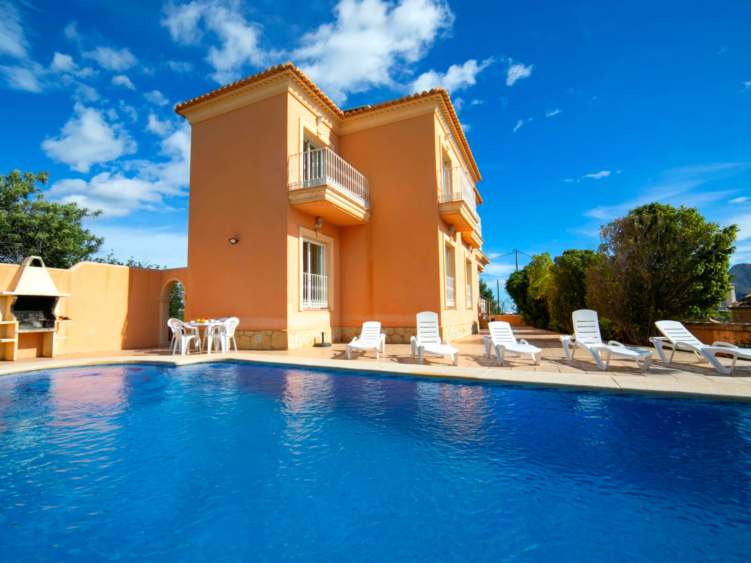 Villa "Solpadel", amplia, agradable. A 750 m del centro de Calpe, a 25 km del centro de Benidorm, a 60 km del centro de Alicante, lugar tranquilo, a 1.4 km del mar, a 1.5 km de la playa. Privado: terreno 1'217 m2 (vallada), jardín, piscina rectangular (9 x 4 m, 160 - 190 cm de profundidad, Disponible por temporada: [hidden] - [hidden] Muebles de jardín, barbacoa, Aparcamiento en el mismo terreno. Supermercado 700 m, restaurante, café 800 m, parada autobús 600 m, playa de arena "El Arenal" 1.4 km. Atracciones en los alrededores: Aqualandia 25 km, Terra Mitica 35 km, Aeropuerto El Altet ALicante-Elche 75 km. Zona de senderismo Peñon de Ifach 4 km. A tener en cuenta: adecuado para familias.