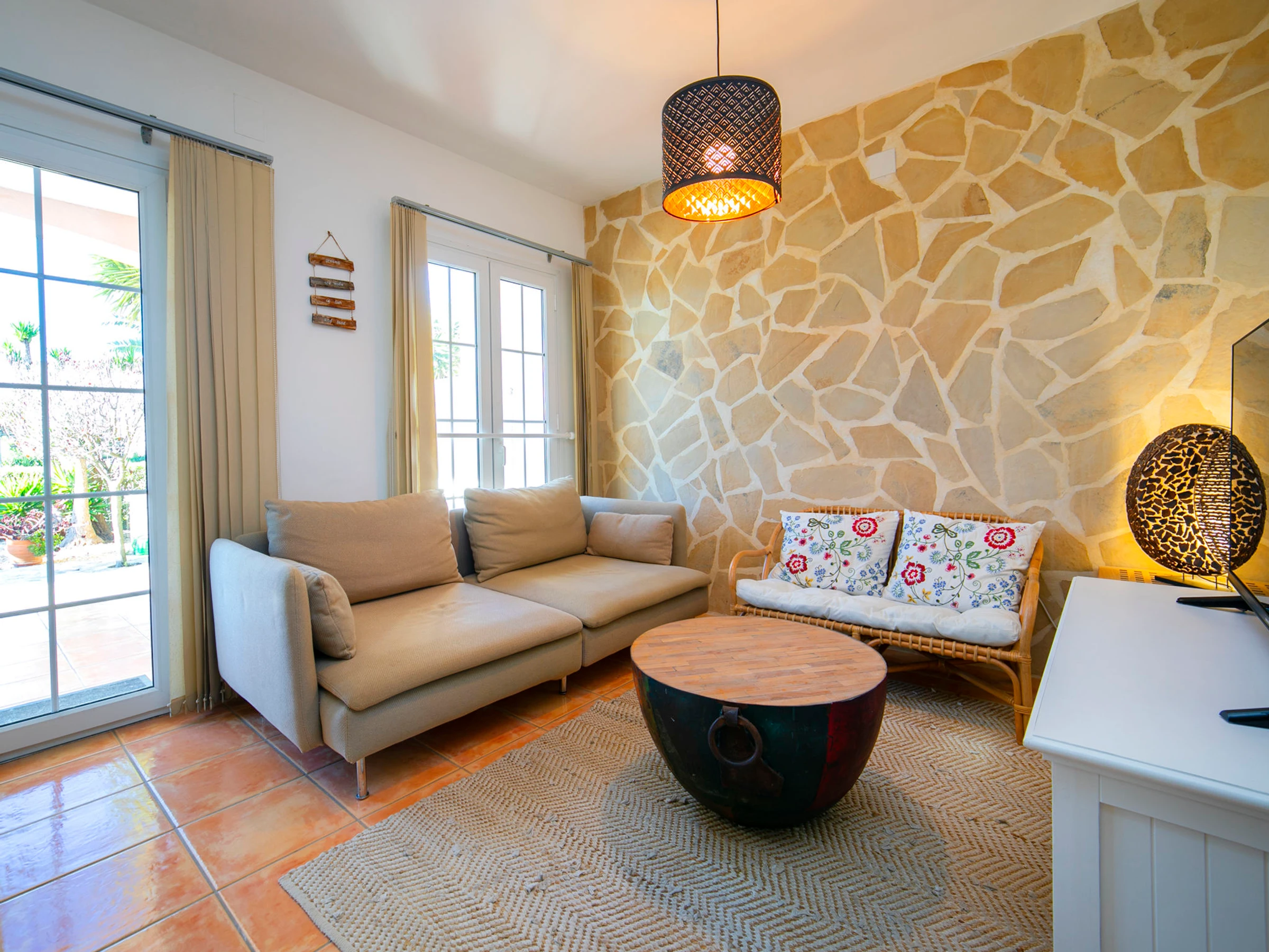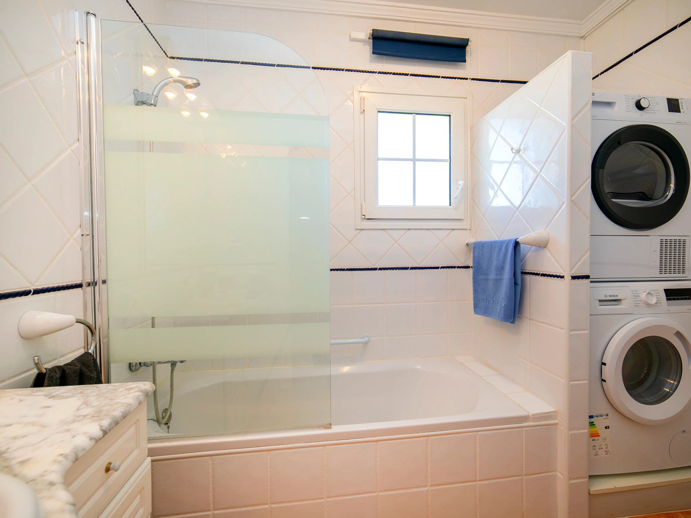 "Residencial Bel-Air", bungalow 3 estancias 119 m2 en 2 plantas. Espacioso y luminoso, con mobiliario confortable y bonito: salón-comedor con TV satélite, aire acondicionado, ventilador y bomba de calor, caliente. Salida al jardín, a la terraza. Cocina abierta (horno, lavavajillas, 3 placas de vitrocerámica, tostadora, hervidor de agua eléctrico, microondas, cafetera eléctrica). WC separado. Planta superior: 1 dorm. con 1 cama de matrimonio (1 x 180 cm, 200 cm de longitud), baño/ducha/bidet/WC, aire acondicionado, ventilador y bomba de calor, caliente. Salida a la terraza. 1 dorm. con 1 cama de matrimonio (1 x 150 cm, 200 cm de longitud), aire acondicionado y bomba de calor, caliente. Salida a la terraza. Ducha/bidet/WC. Terraza grande. Muebles de terraza, barbacoa (portátil). Vista lejana bonita a la localidad. El alojamiento dispone de: lavadora, plancha, trona, cuna hasta 2 años, secador de pelo. Internet (Wifi, gratis). Plaza de aparcamiento (vallada). Adecuado para familias. [hidden] // Reg. Nr.: ESFCTU00000302900059355500000000000000000[hidden]3