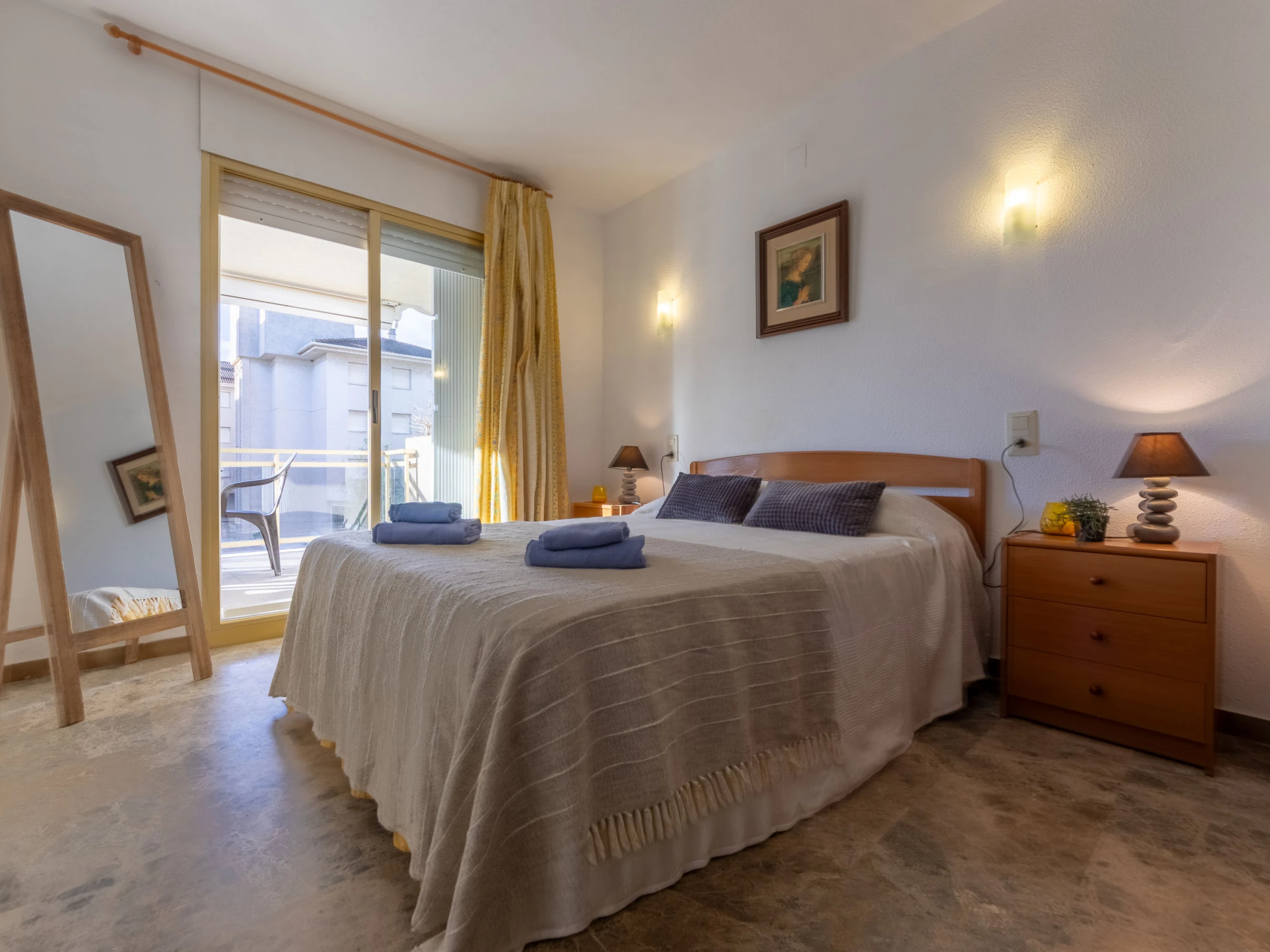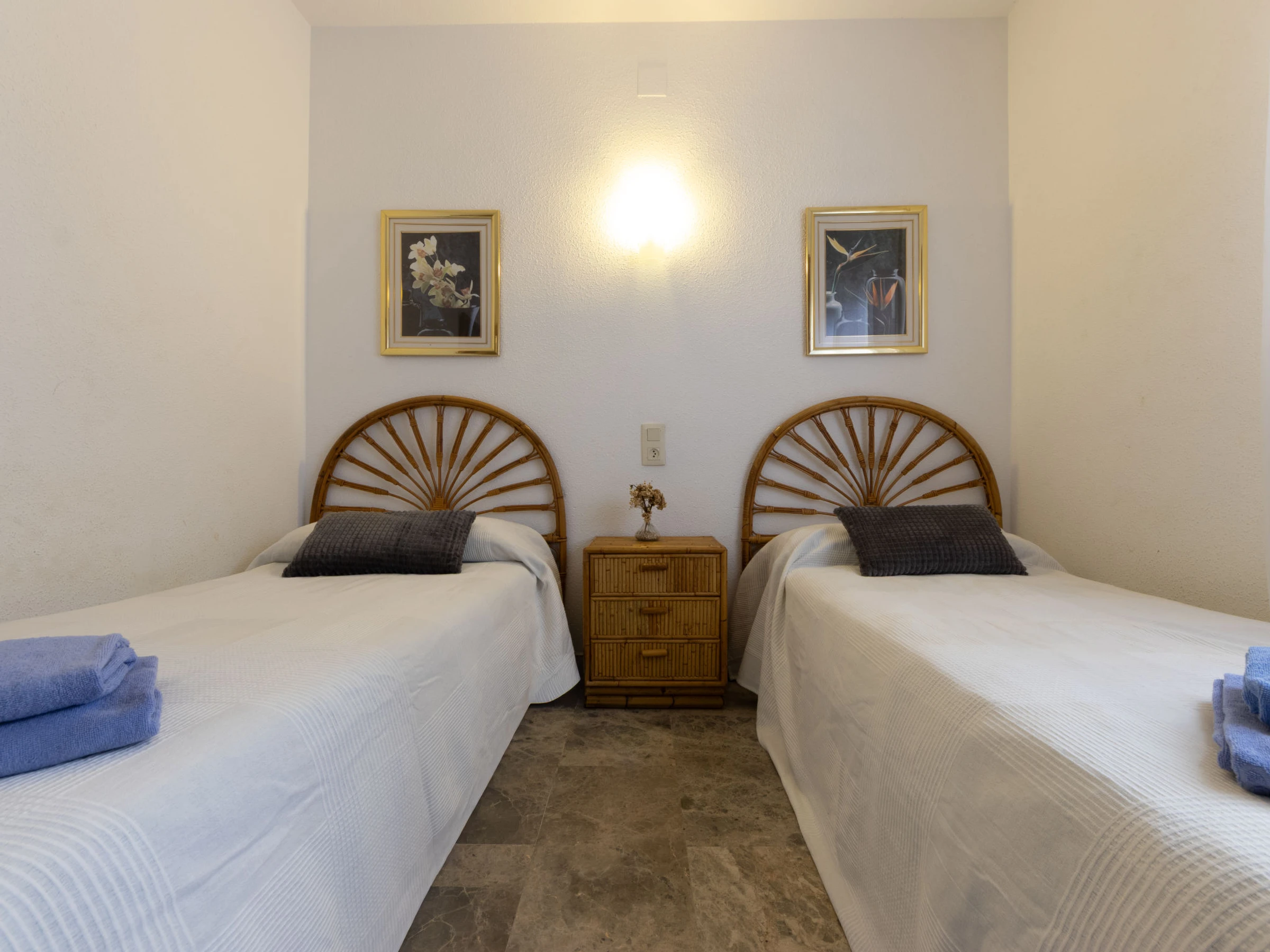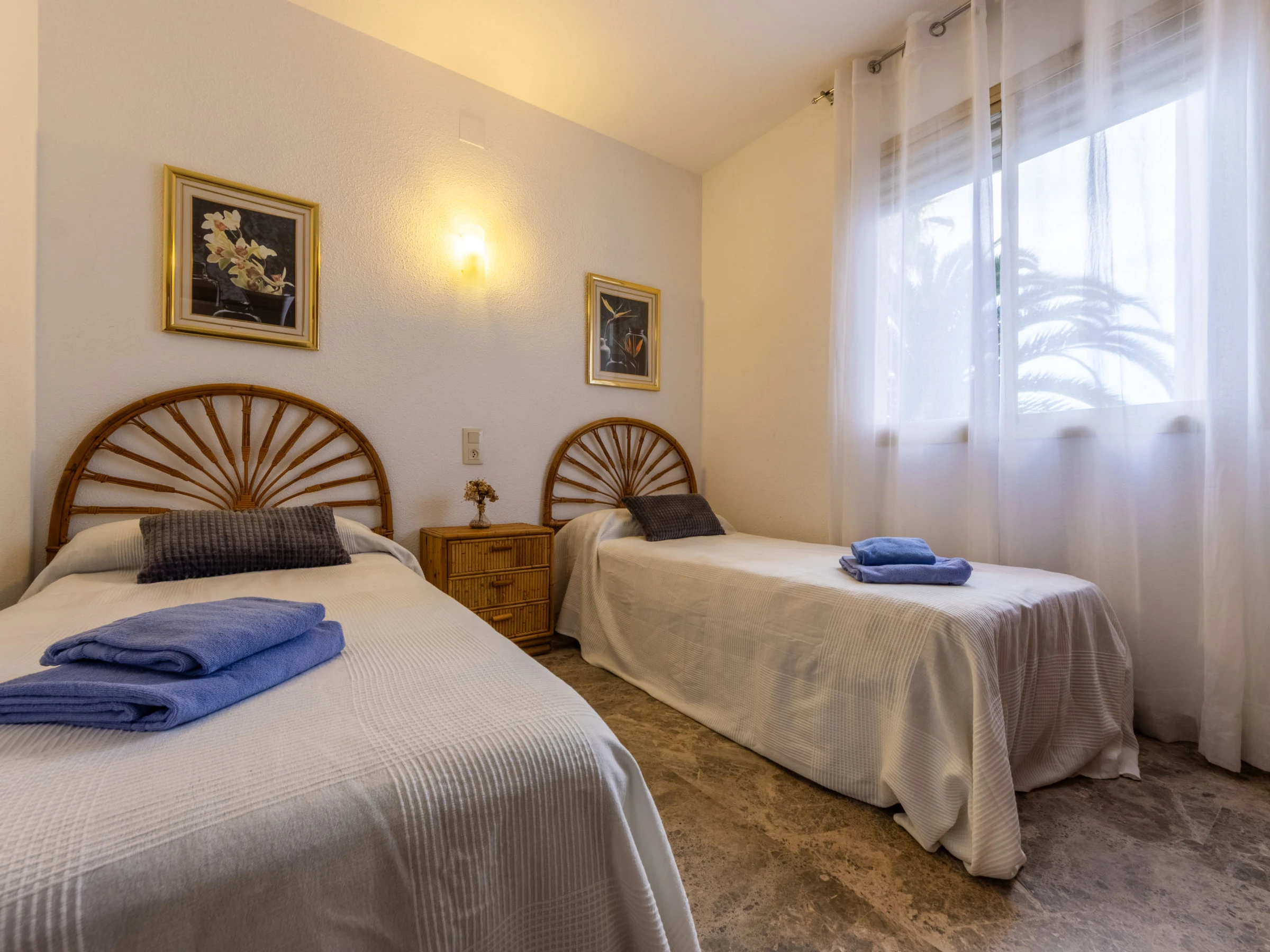 "Costa Blanca I B", apartamento de 4 estancias 72 m2. Con mobiliario confortable y de buen gusto: salón-comedor con TV digital. Salida a la terraza. 1 dorm. con 1 cama de matrimonio (150 cm, 190 cm de longitud). 1 dorm. con 1 cama doble (150 cm, 190 cm de longitud). 1 dorm. con 2 camas (80 cm, 190 cm de longitud). Cocina (3 fogones, horno, lavavajillas, tostadora, hervidor de agua eléctrico, microondas, cafetera eléctrica). Baño/bidet/WC, WC separado. Ningún tipo de calefacción. Terraza. Muebles de terraza. Vista al mar y al jardín. El alojamiento dispone de: lavadora, plancha. Plaza de aparcamiento n. x. Adecuado para familias. [hidden]