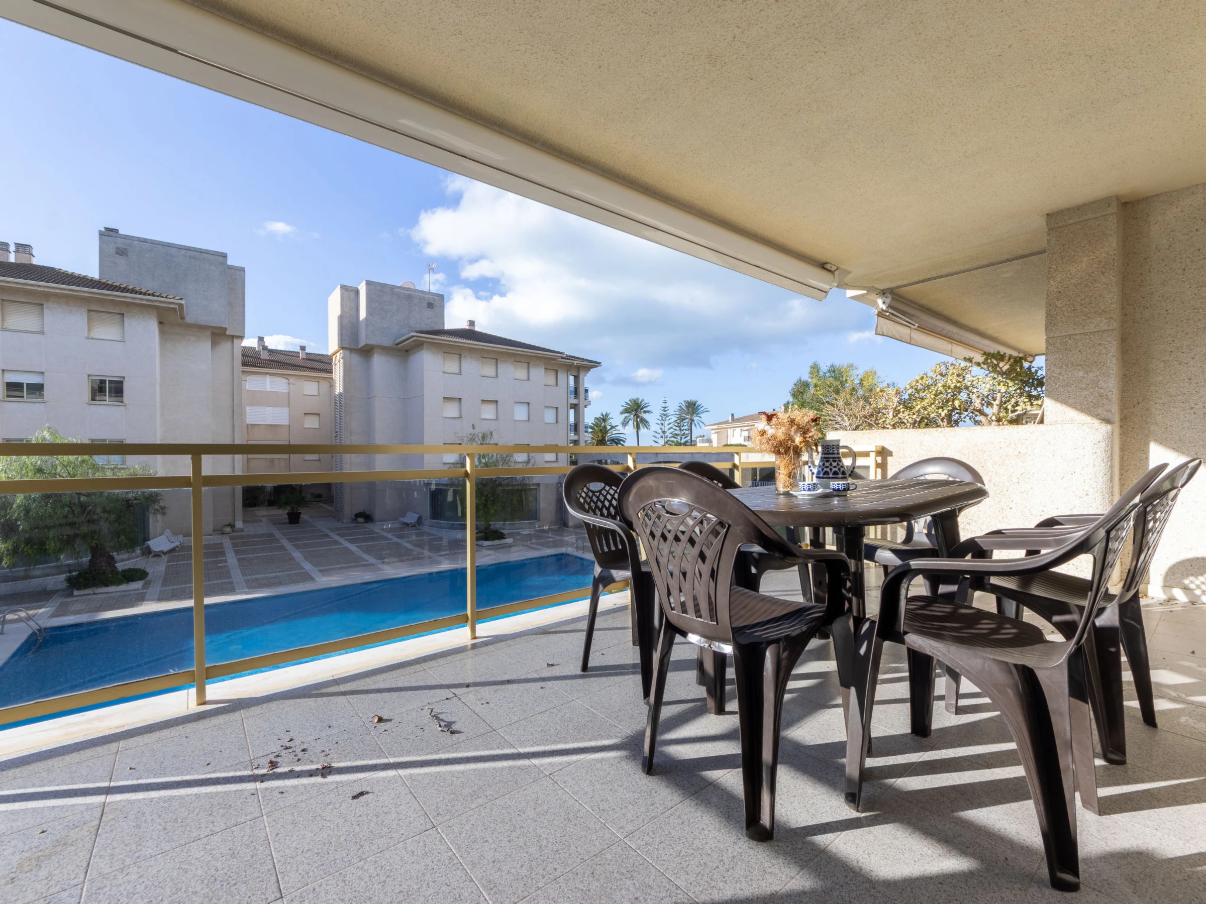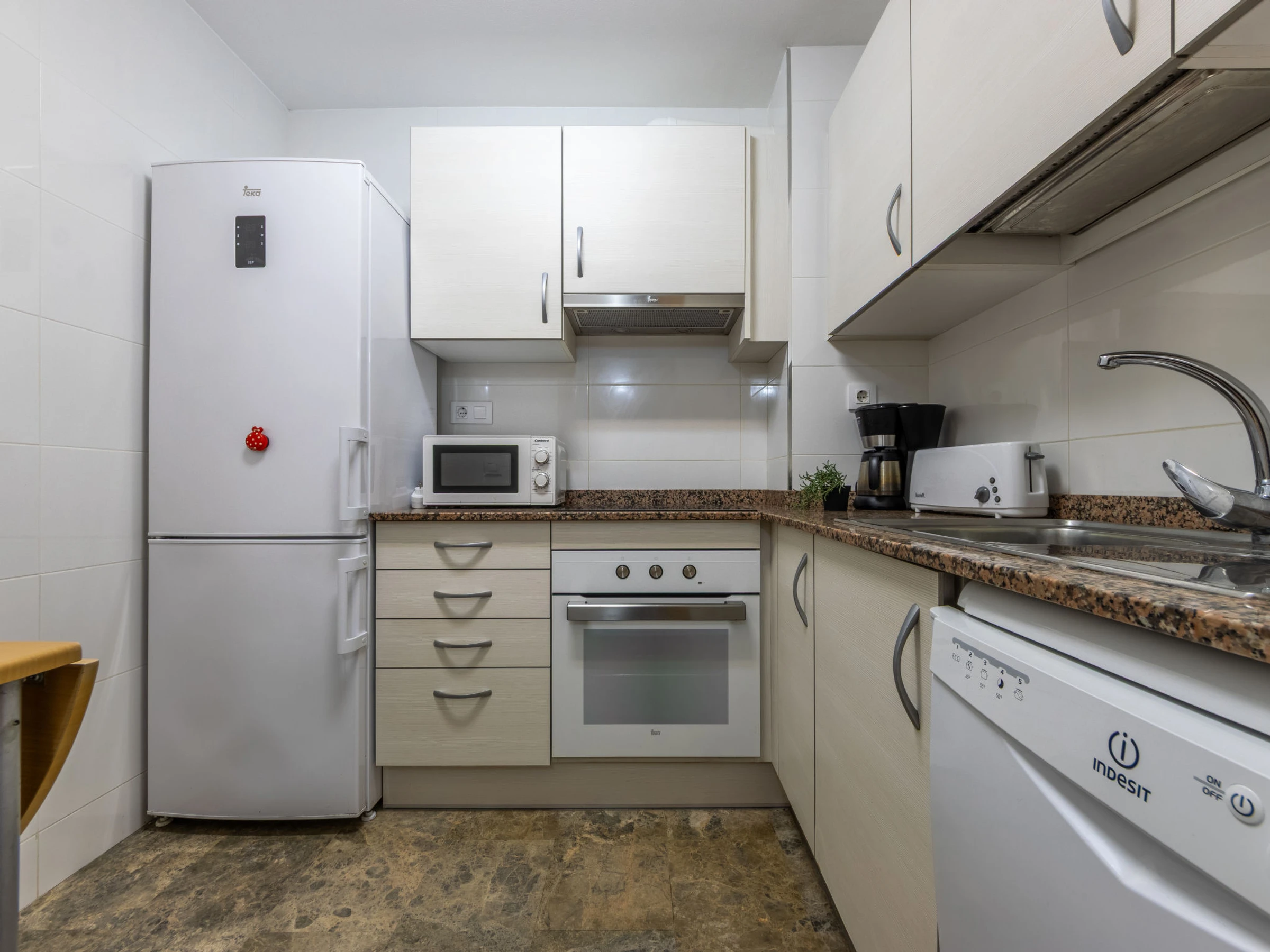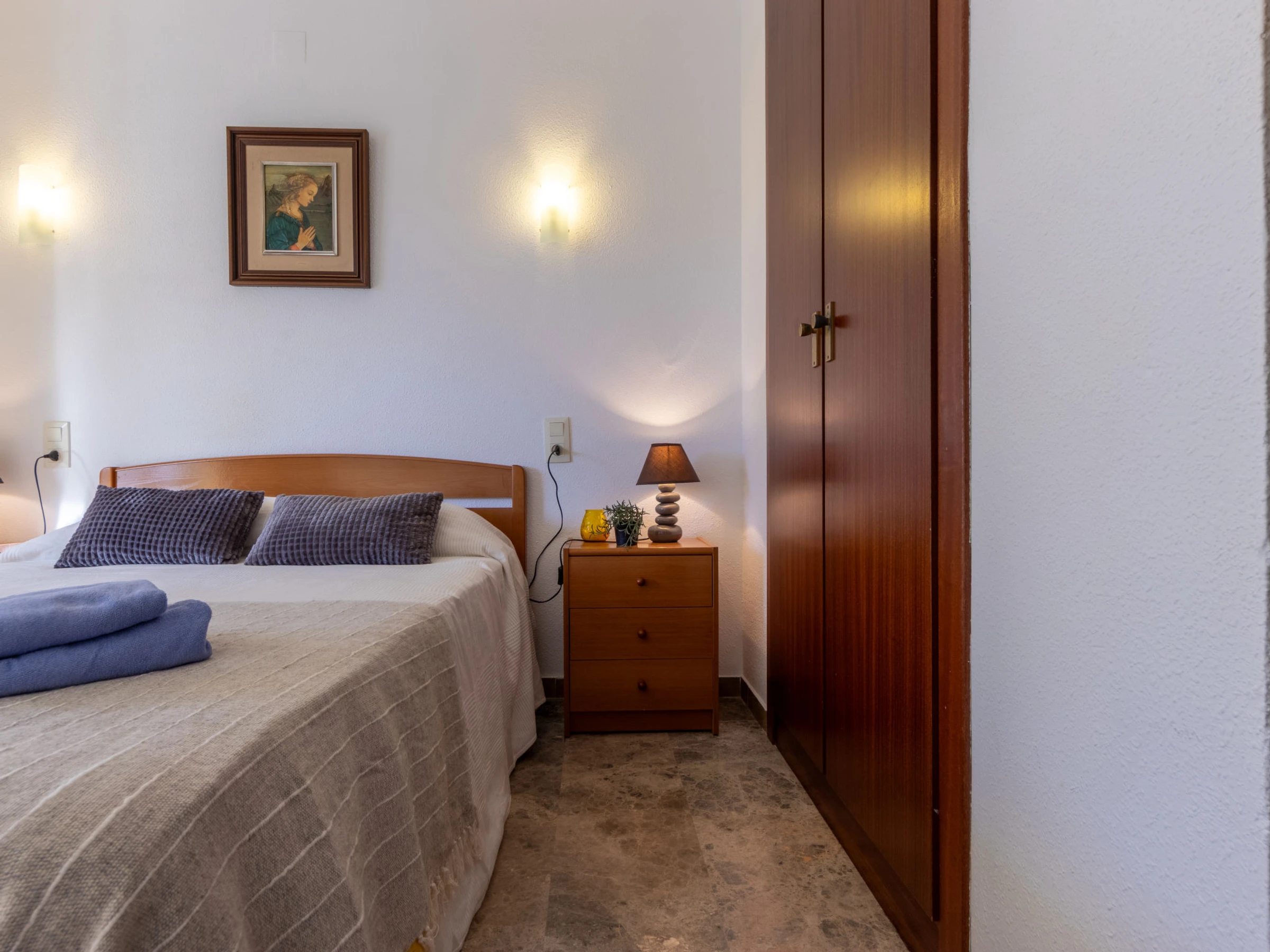 "Costa Blanca I B", apartamento de 4 estancias 72 m2. Con mobiliario confortable y de buen gusto: salón-comedor con TV digital. Salida a la terraza. 1 dorm. con 1 cama de matrimonio (150 cm, 190 cm de longitud). 1 dorm. con 1 cama doble (150 cm, 190 cm de longitud). 1 dorm. con 2 camas (80 cm, 190 cm de longitud). Cocina (3 fogones, horno, lavavajillas, tostadora, hervidor de agua eléctrico, microondas, cafetera eléctrica). Baño/bidet/WC, WC separado. Ningún tipo de calefacción. Terraza. Muebles de terraza. Vista al mar y al jardín. El alojamiento dispone de: lavadora, plancha. Plaza de aparcamiento n. x. Adecuado para familias. [hidden]