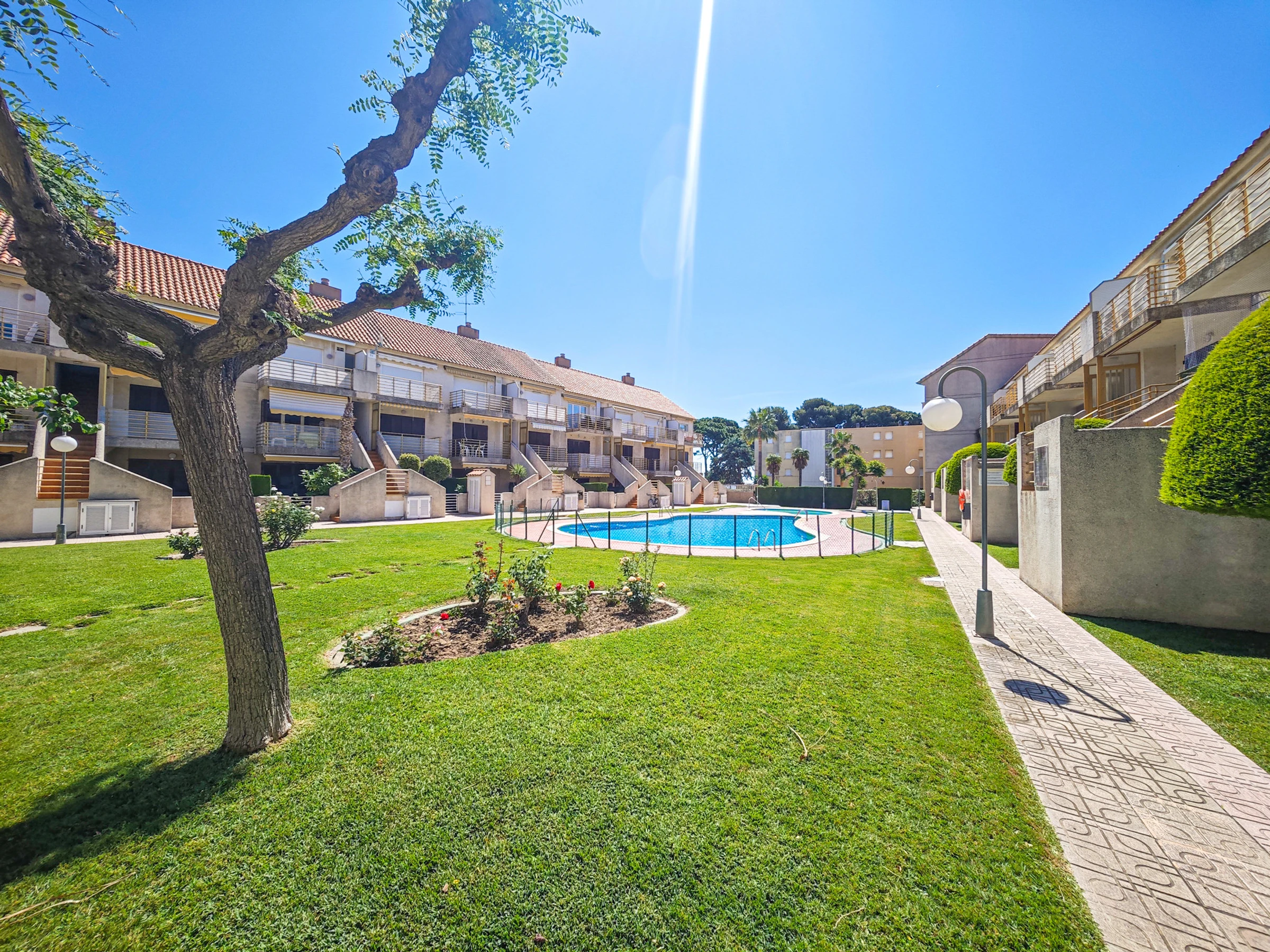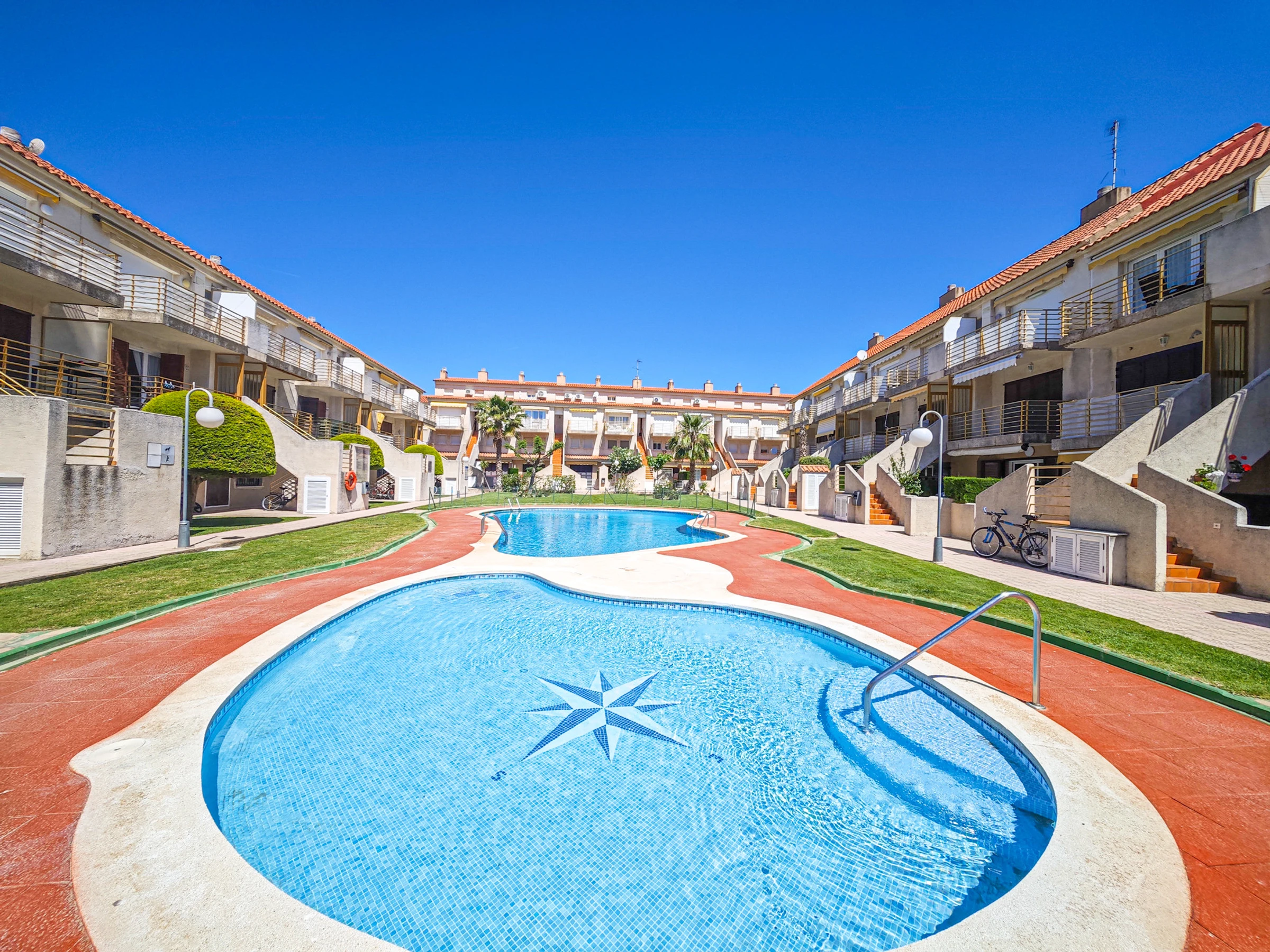 Un punto destacado es la terraza que ofrecen vistas encantadoras a la piscina y al jardin comunitario. El mobiliario de jardín permite disfrutar de momentos de descanso al aire libre. La ubicación es inmejorable, a solo 100 metros de la playa de arena y con supermercados a pocos metros