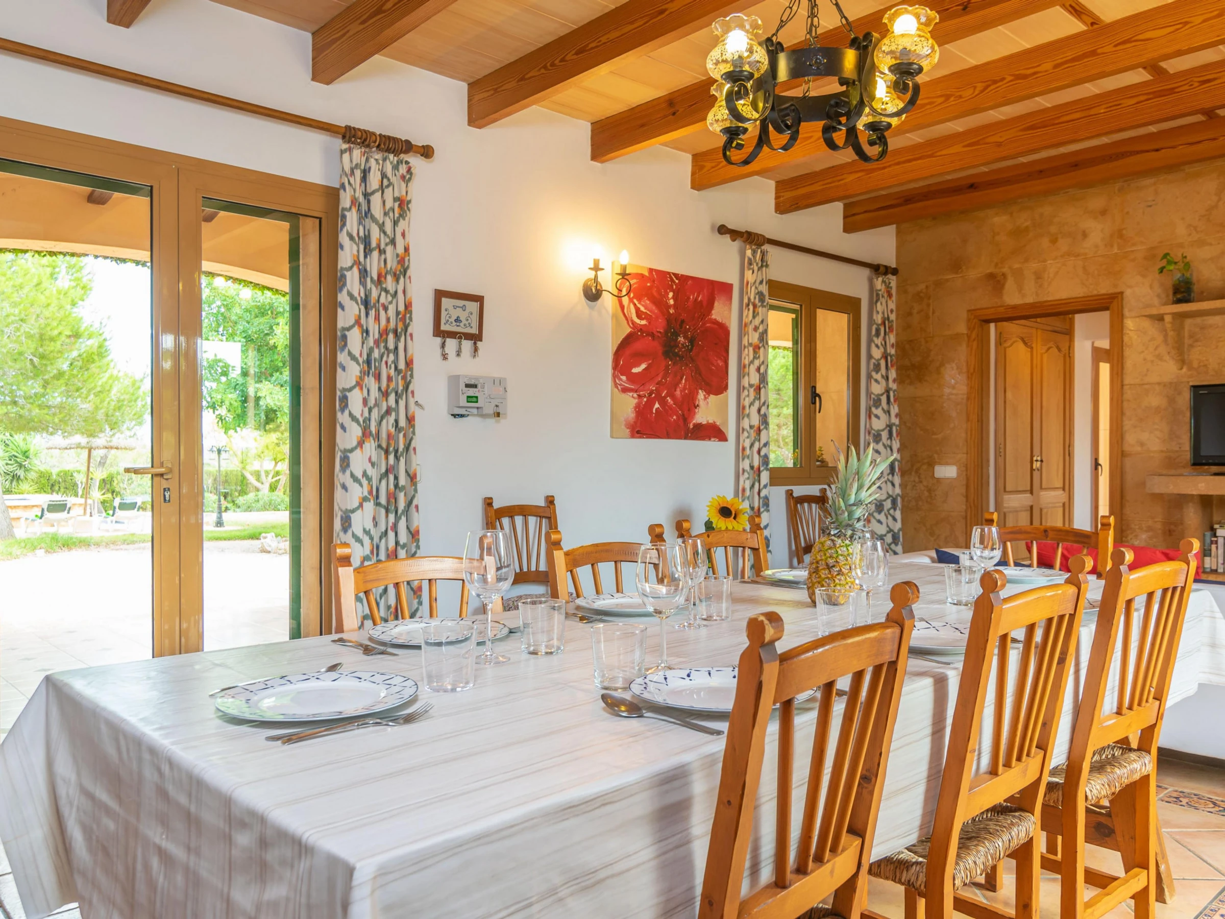 Esta preciosa casa de campo es fiel al estilo mallorquín con una construcción de piedra y unos exteriores rodeados de olivos, entre otros árboles autóctonos, que integran la propiedad en el puro paisaje de la isla. Un bonito porche es perfecto para preparar buenas barbacoas y les conduce hacia una acogedora zona de césped, con 8 tumbonas y sombrillas de paja, que envuelve una gran piscina privada de cloro, -de 12 x 5 m y de 1.5 a 2 m de hondo-.
