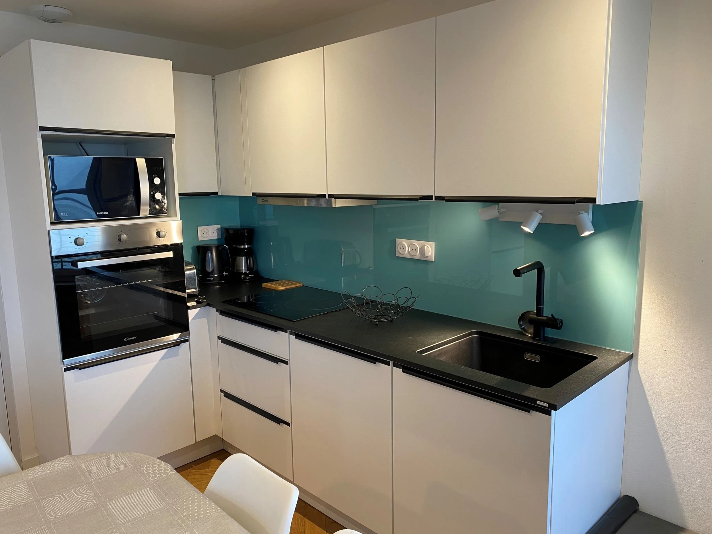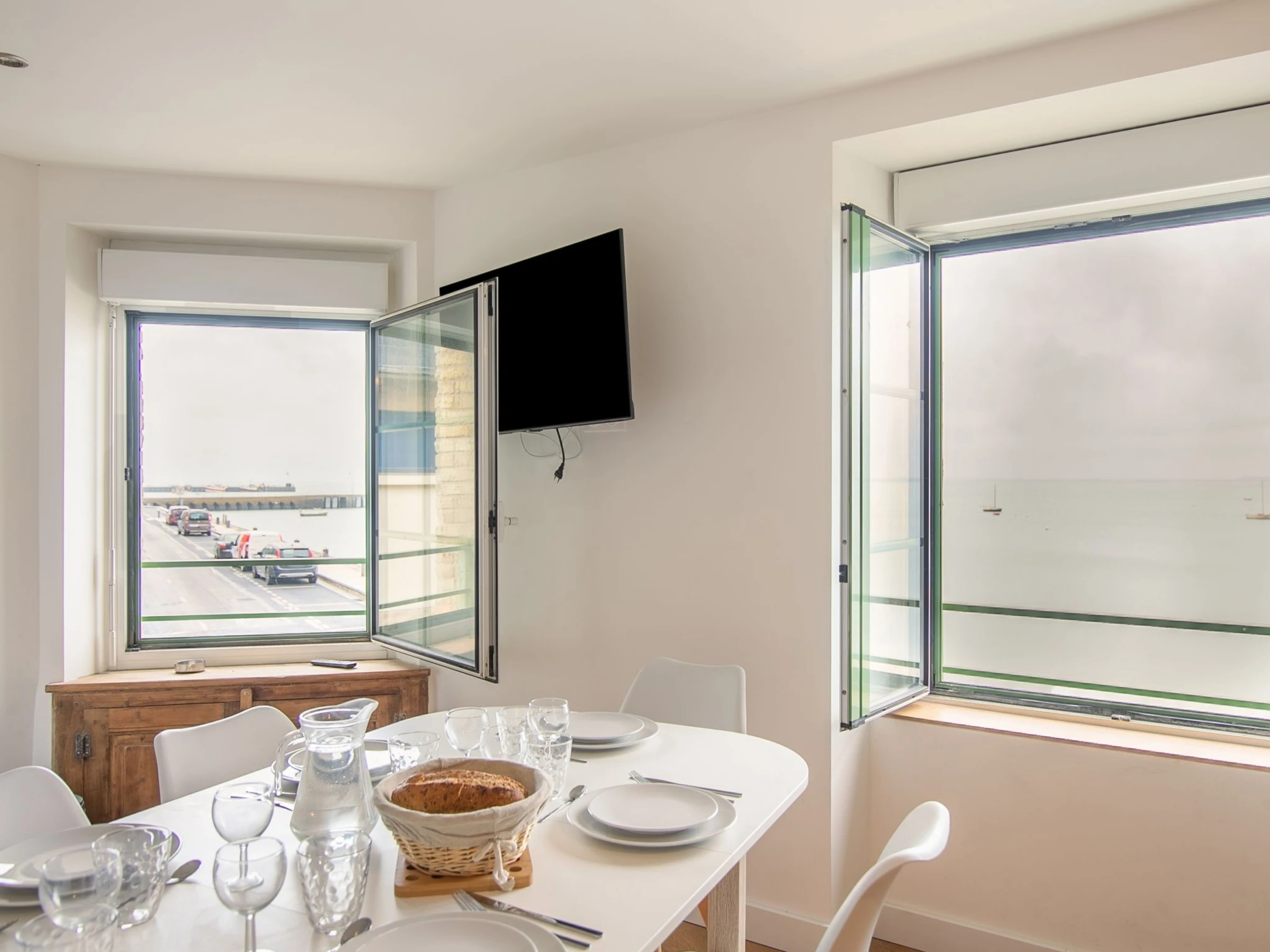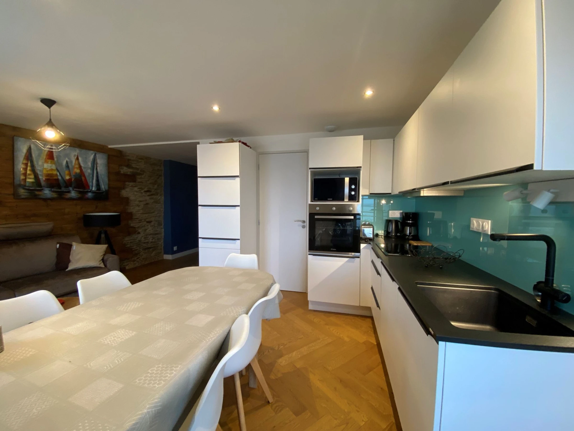 "Le point du jour 1", apartamento de 3 estancias 50 m2 en el 1° piso. Espacioso y luminoso, completamente reformado en 2021, con mobiliario moderno y de buen gusto: salón con TV (pantalla plana). 1 dorm. con 1 cama de matrimonio (1 x 180 cm, 200 cm de longitud). 1 dorm., pequeño, sin ventanas con 2 x 2 literas (90 cm, 190 cm de longitud). Cocina abierta (horno, lavavajillas, 3 Placas de inducción, tostadora, hervidor de agua eléctrico, microondas, congelador, cafetera eléctrica) con mesa de comedor. Ducha, WC separado. Calefacción eléctrica. Suelo de parquet. Vista espléndida al mar. El alojamiento dispone de: Internet (Wifi, gratis). A tener en cuenta: casa para no fumadores. Detector de humo.