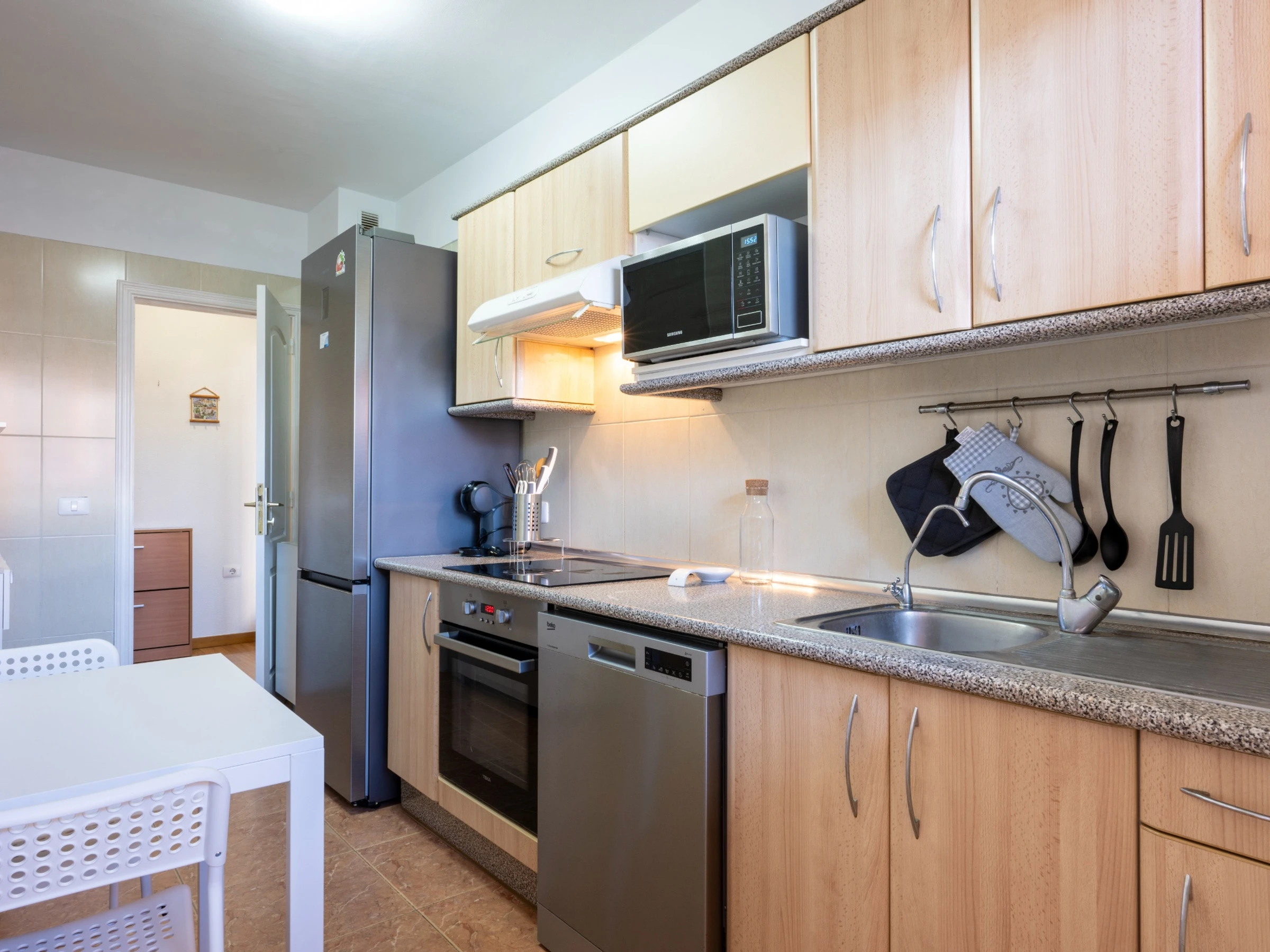 Dispone de ascensor, lavadora, plancha, acceso internet (wifi), secador, balcón, piscina comunitaria, 2 televisores, uno en el salón y el otro en uno de los dormitorios. Puede encontrar un filtro de agua potable en la cocina del que puede hacer uso si así lo desea. Además, el complejo cuenta con una piscina comunitaria y solárium donde podrás disfrutar de unos maravillosos días al sol, ya que la meteorología de la zona suele ser la mayor parte del año muy agradable.
