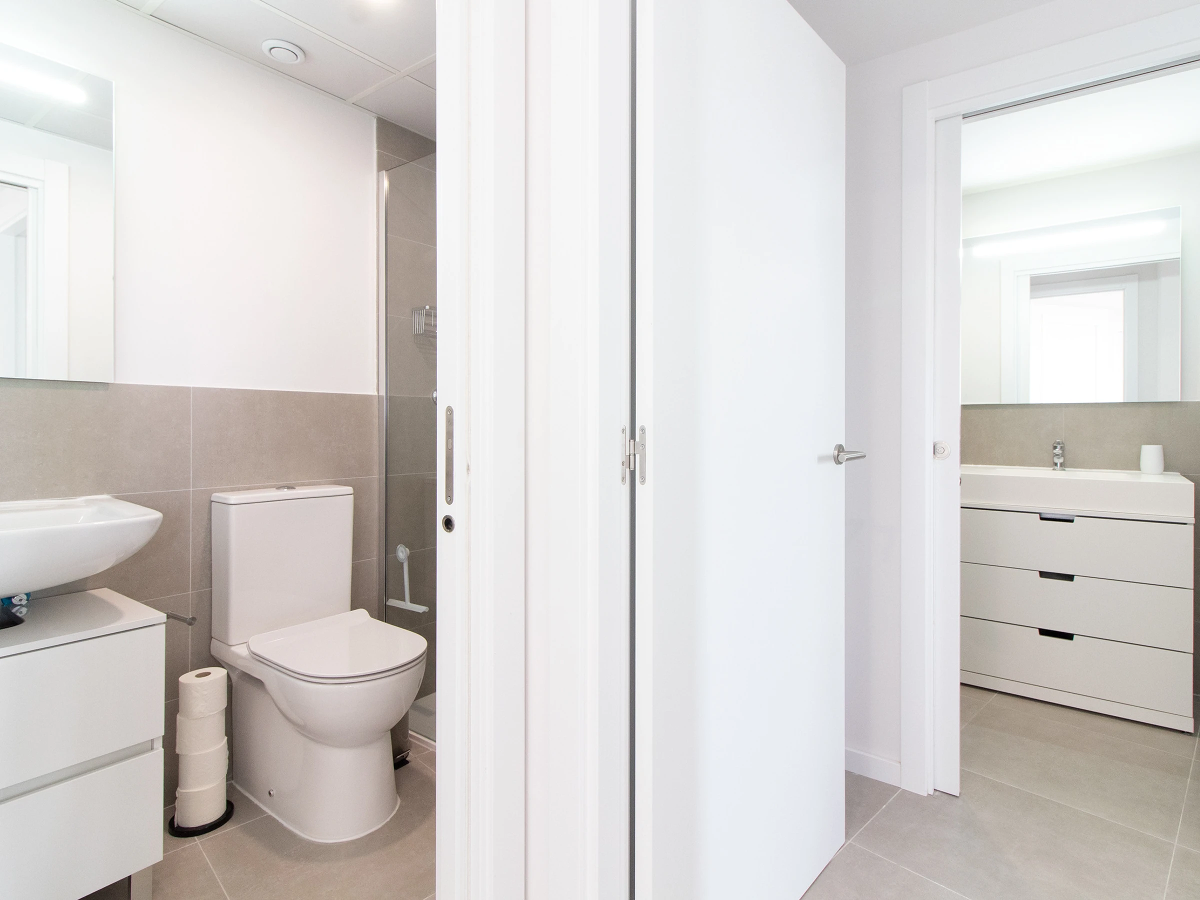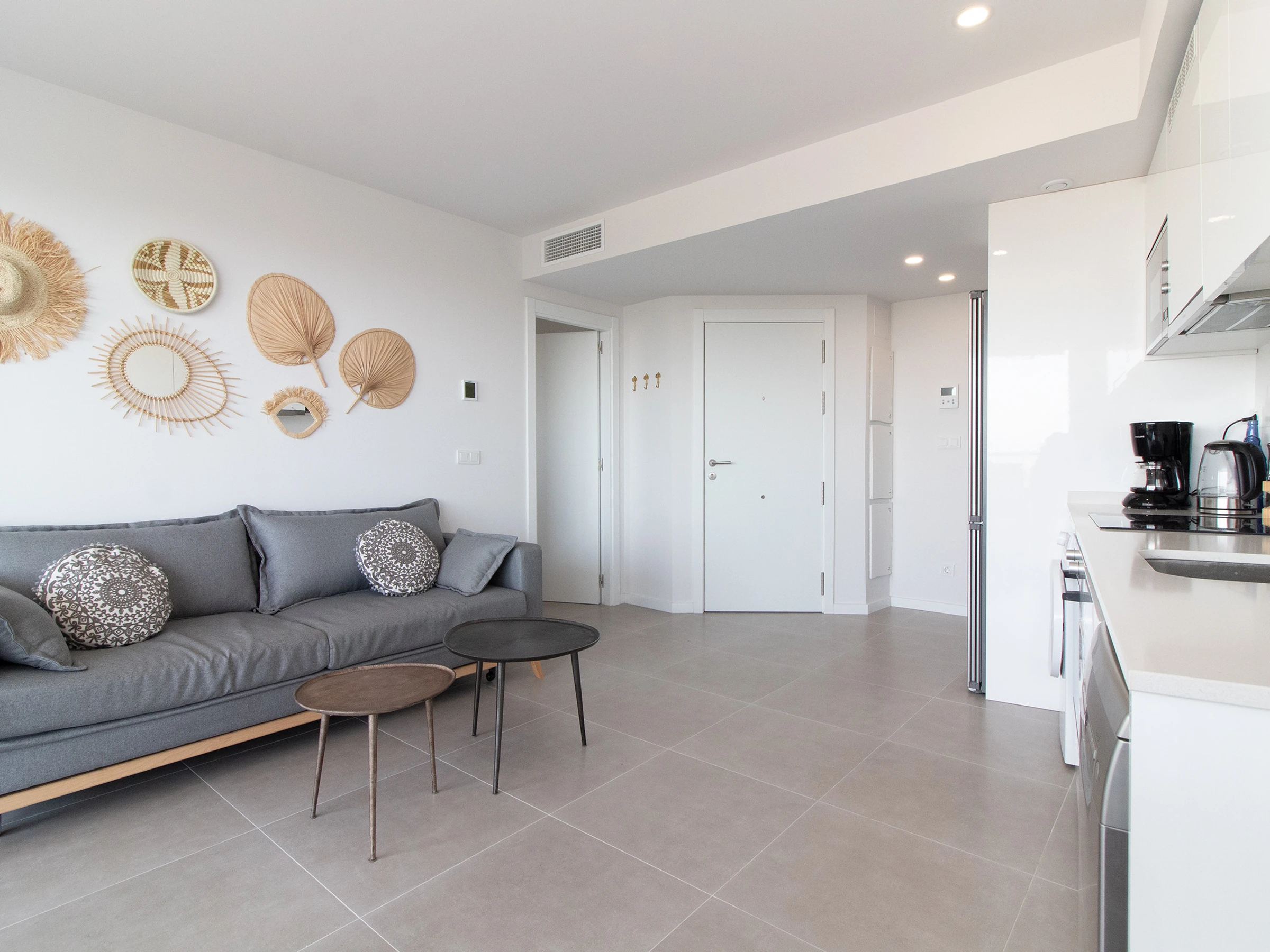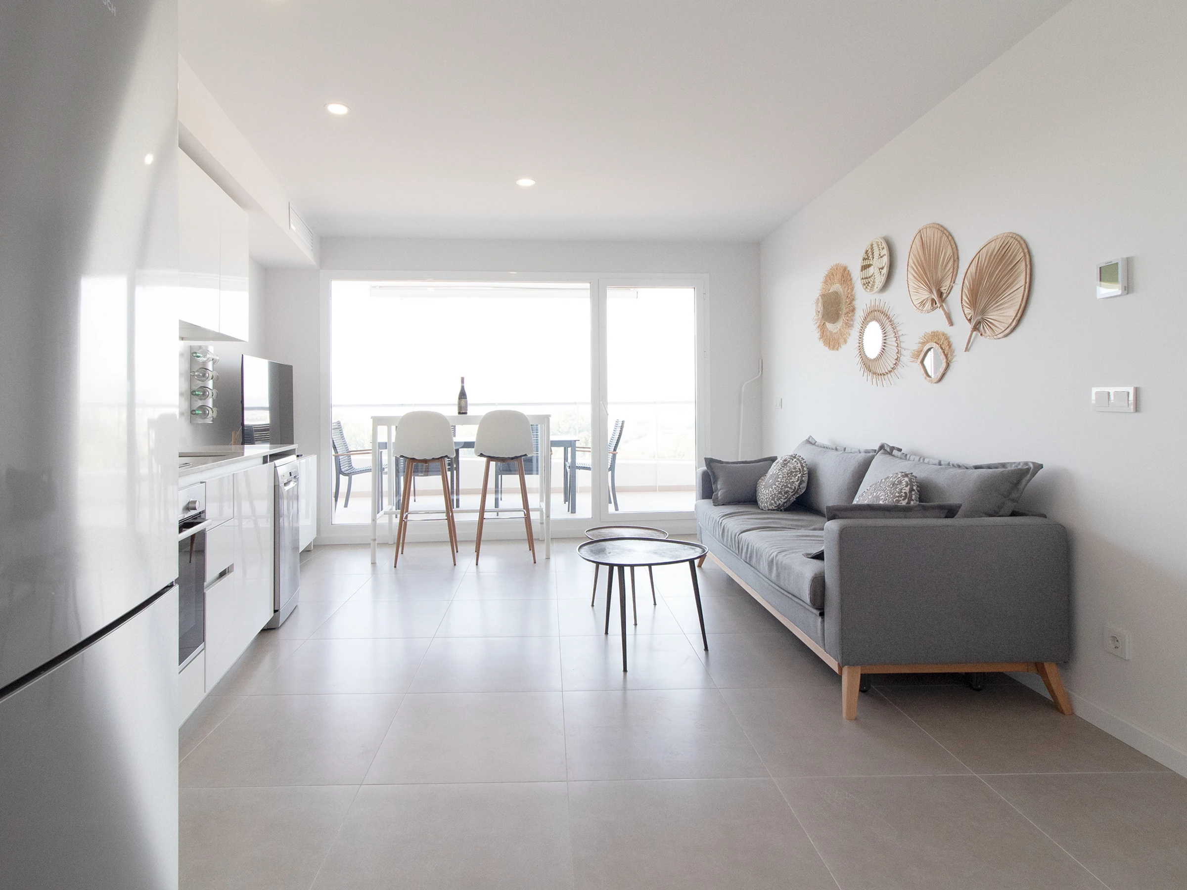 El apartamento dispone de 2 dormitorios y 2 baños. Además, cuenta con una cocina abierta al salón y grandes ventanales, los cuales dan acceso a la terraza. La terraza de 23 m² se encuentra completamente equipada y es el sitio perfecto para disfrutar en familia o con amigos.