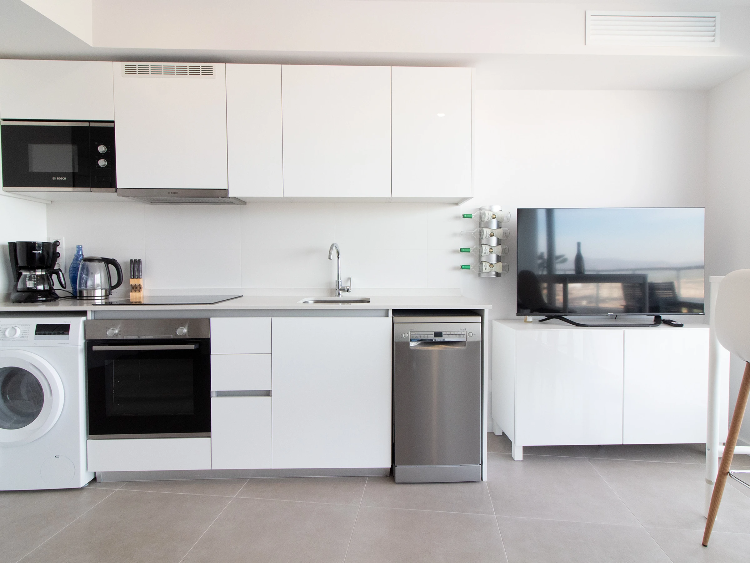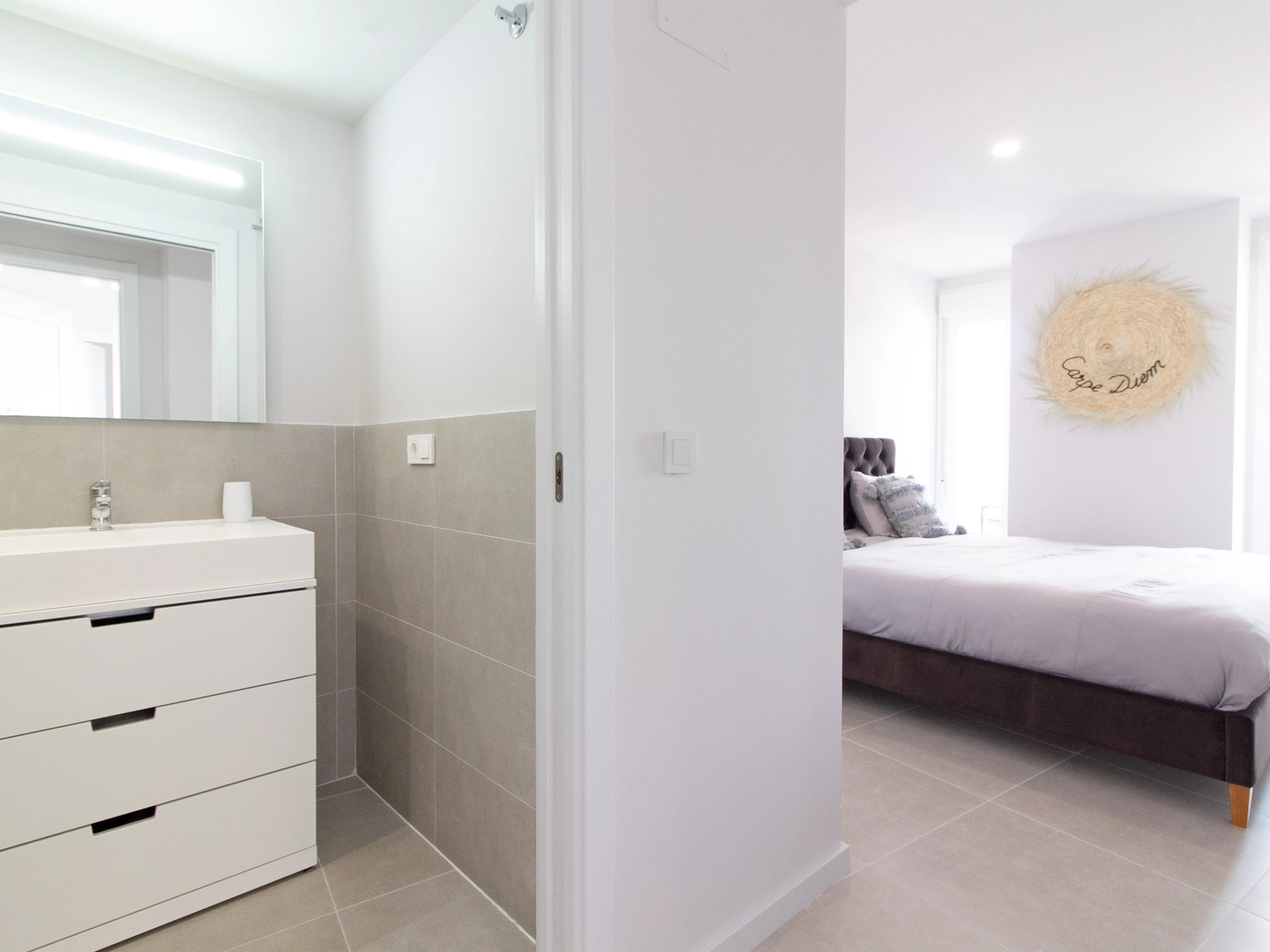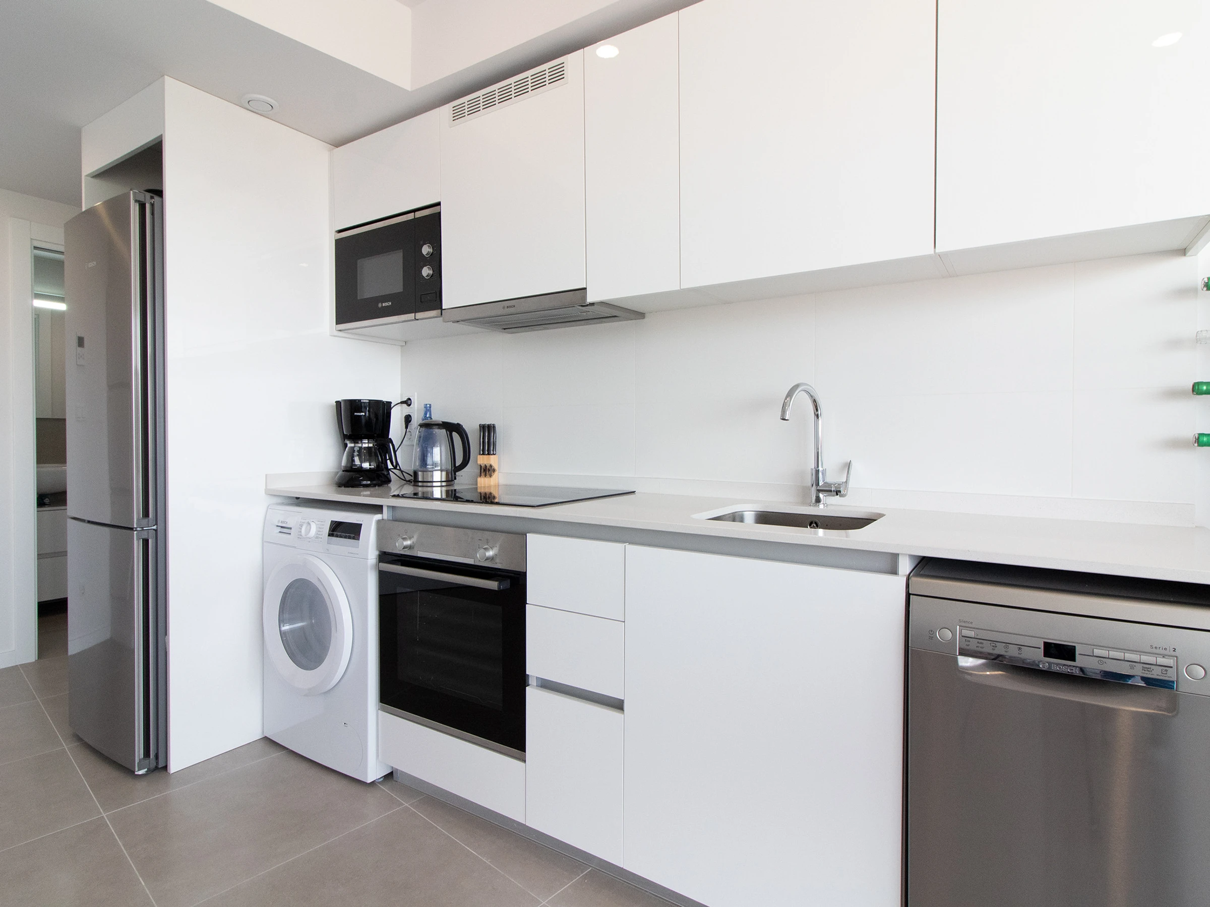 El apartamento dispone de 2 dormitorios y 2 baños. Además, cuenta con una cocina abierta al salón y grandes ventanales, los cuales dan acceso a la terraza. La terraza de 23 m² se encuentra completamente equipada y es el sitio perfecto para disfrutar en familia o con amigos.