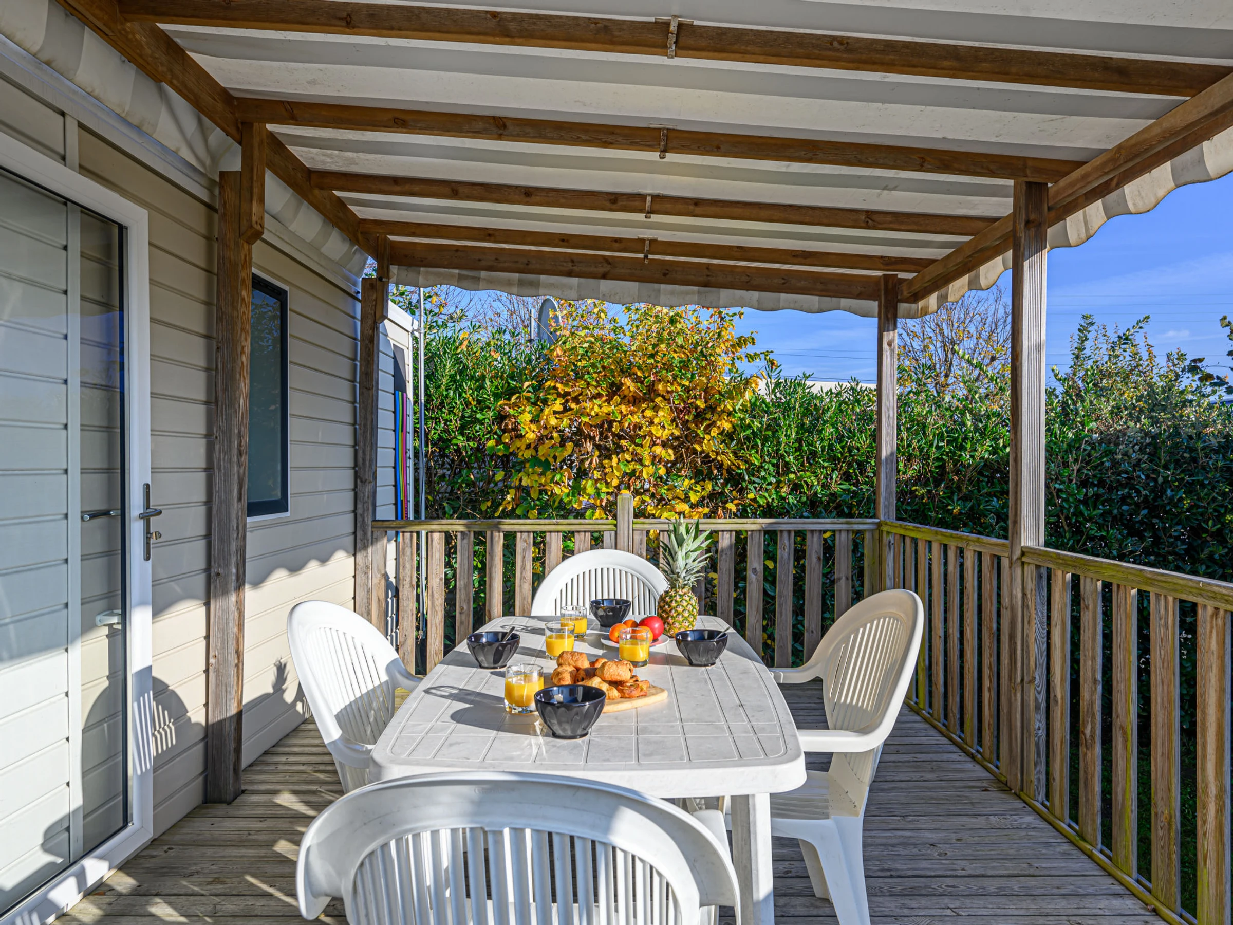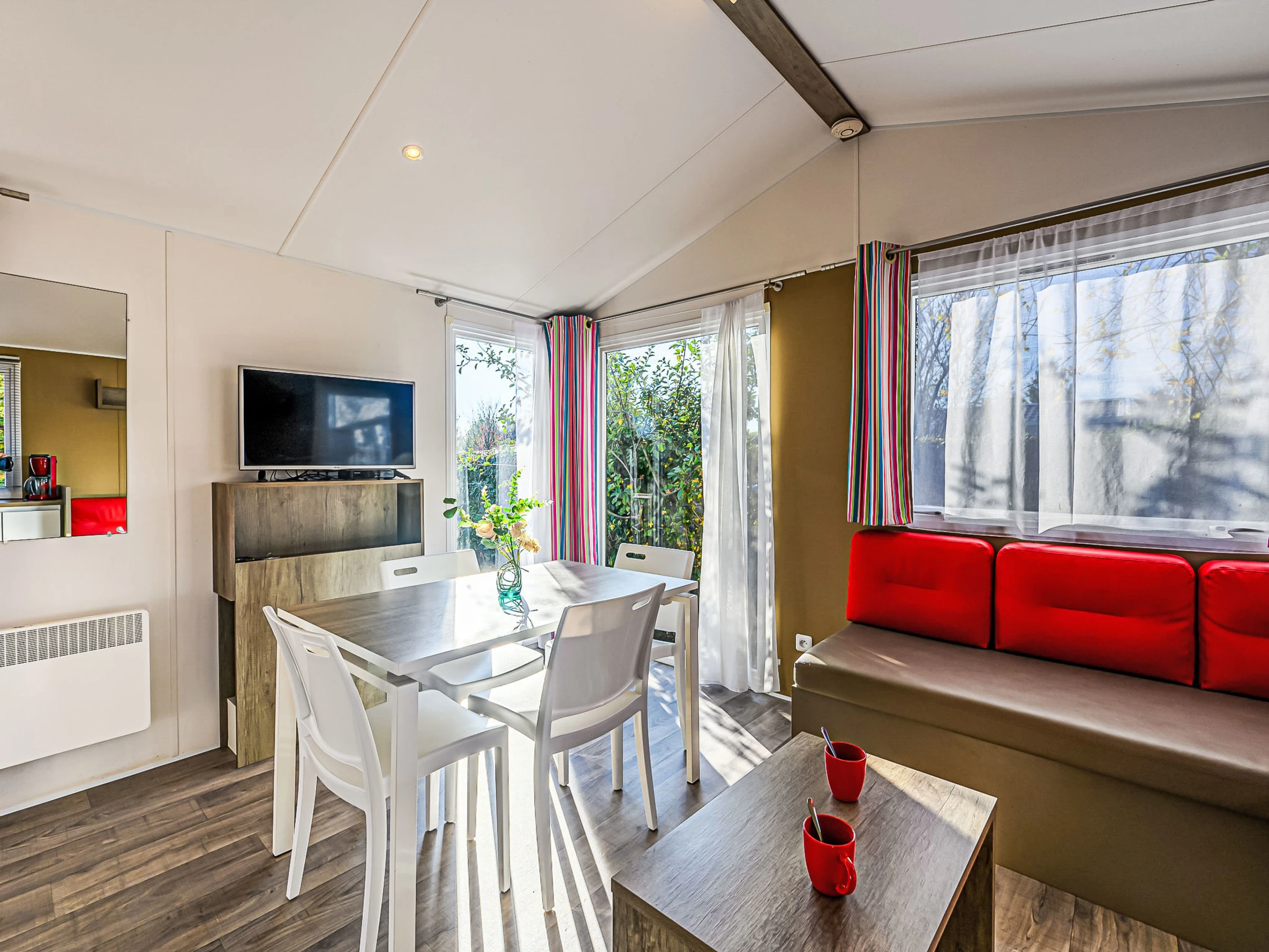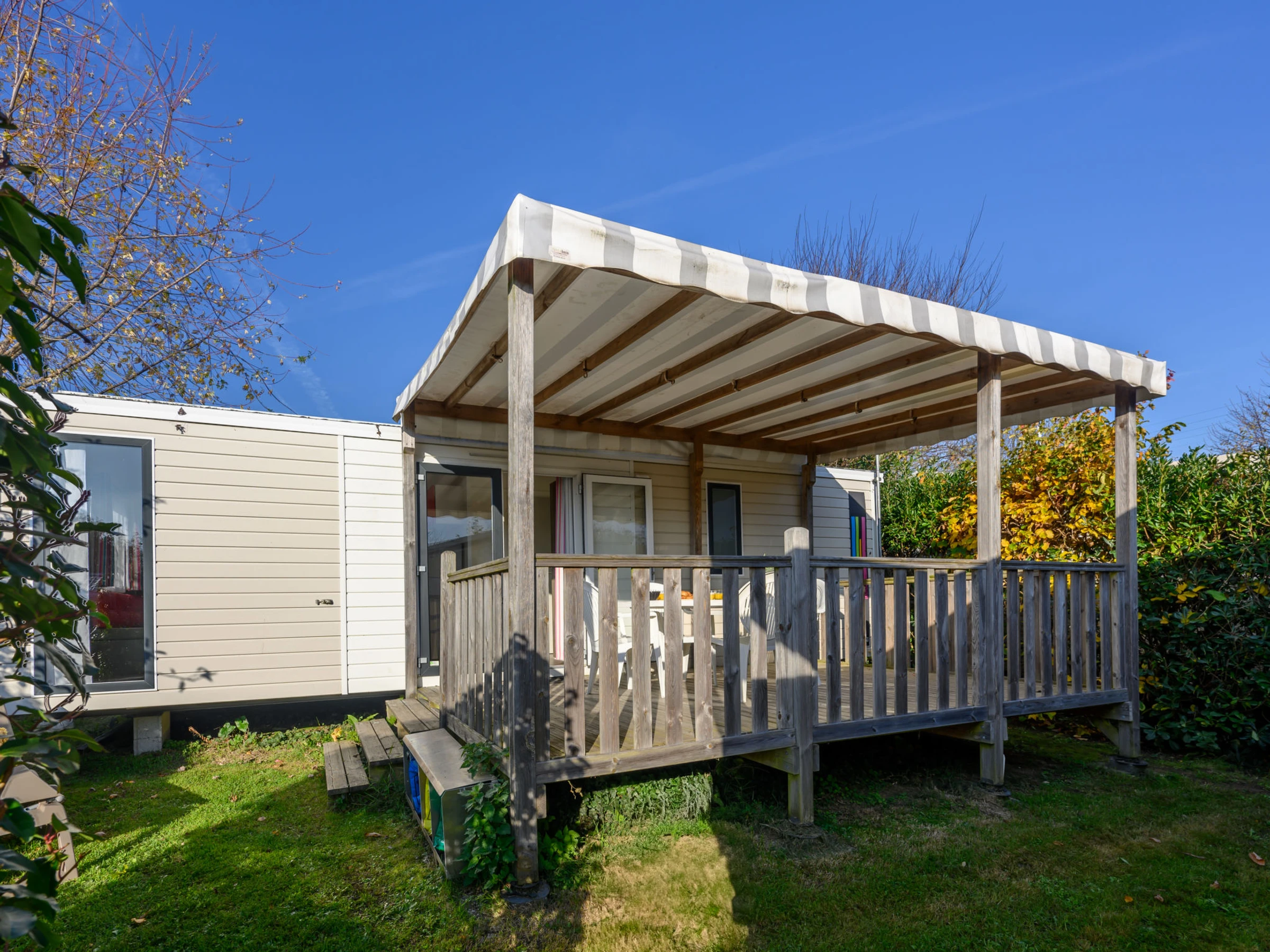 "Le Tadorne", 3 estancias mobile home 32 m2. Con mobiliario confortable: salón-comedor con TV (pantalla plana). Salida a la terraza. 1 dorm. con 2 camas (90 cm, 190 cm de longitud). 1 dorm. con 1 cama doble (140 cm, 190 cm de longitud). Rincón-cocina (4 fogones, horno, tostadora, hervidor de agua eléctrico, microondas, cafetera eléctrica). Ducha, WC separado. Calefacción. Terraza 5 m2. Muebles de terraza, barbacoa. El alojamiento dispone de: secador de pelo. Internet (Wifi, gratis). Plaza de aparcamiento. A tener en cuenta: permitido máximo 1 mascota / perro. Detector de humo. Oferta de un propietario comercial según el art. 155, IV, CGI