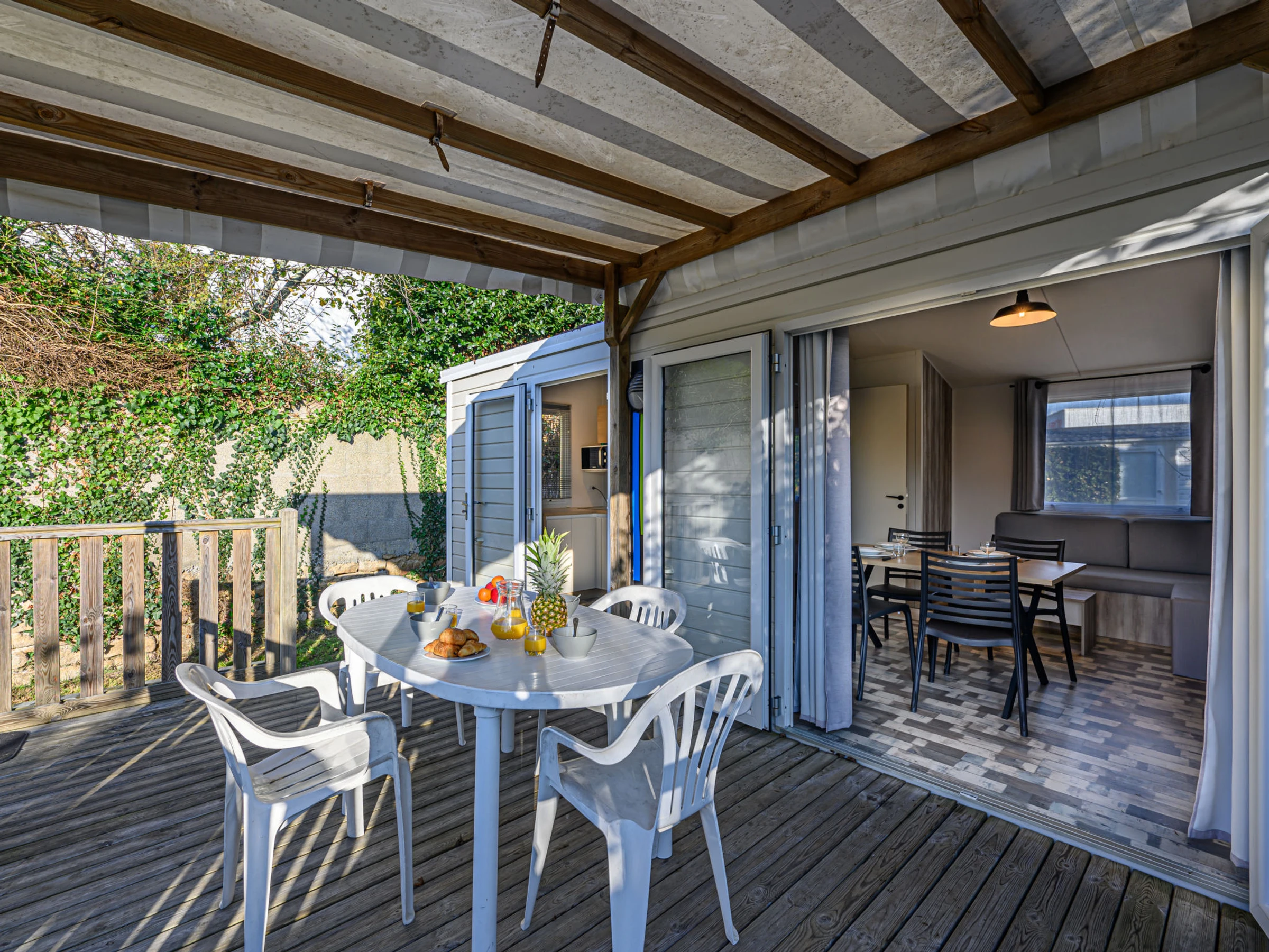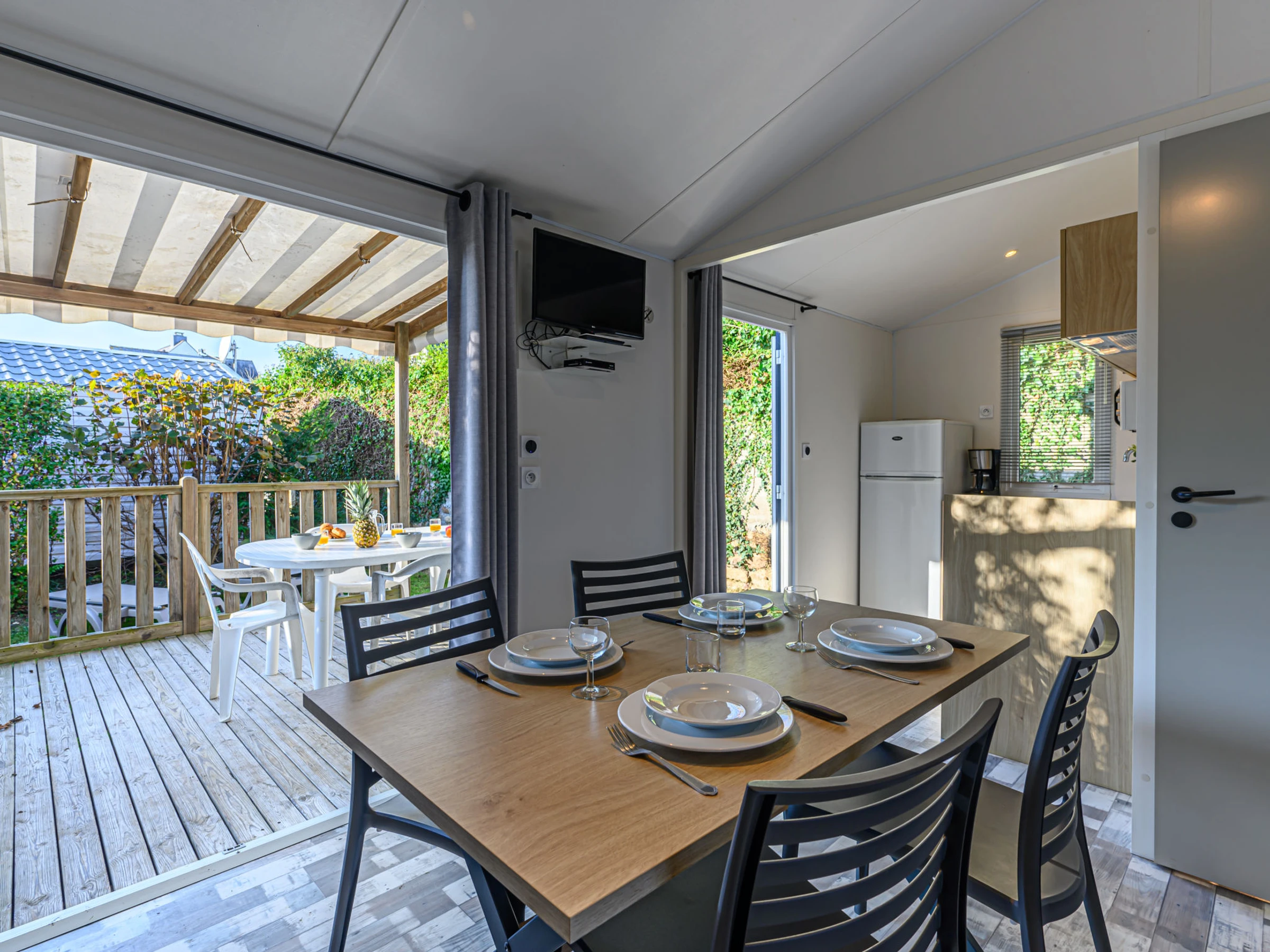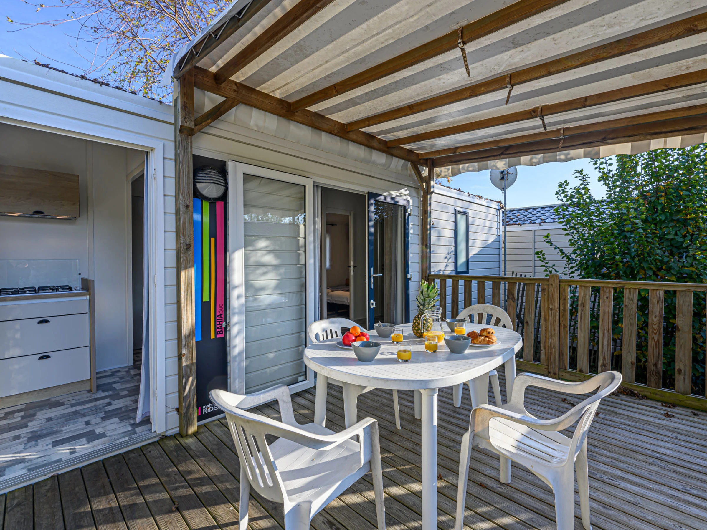 "Le Cygne", estudio mobile home 31 m2. Con mobiliario confortable: salón-comedor con TV (pantalla plana). Salida a la terraza. 1 dorm. con 1 cama de matrimonio (1 x 140 cm, 190 cm de longitud). 1 dorm. con 2 camas (90 cm, 190 cm de longitud). Cocina abierta (tostadora, hervidor de agua eléctrico, microondas, cafetera eléctrica). Ducha, WC separado. Calefacción. Terraza 5 m2. Muebles de terraza. El alojamiento dispone de: secador de pelo. Internet (Wifi, gratis). Plaza de aparcamiento. A tener en cuenta: permitido máximo 1 mascota / perro. Detector de humo. Oferta de un propietario comercial según el art. 155, IV, CGI