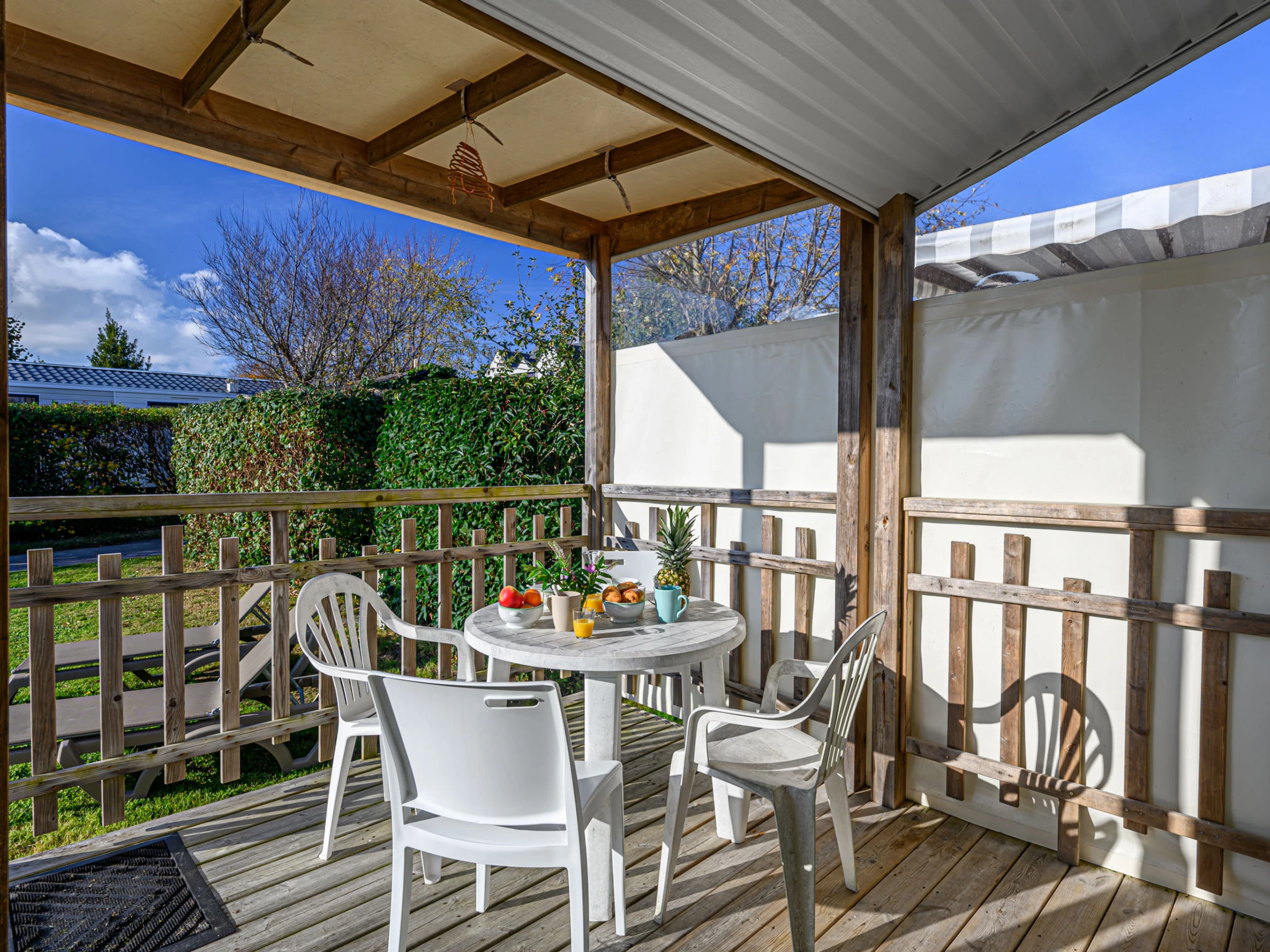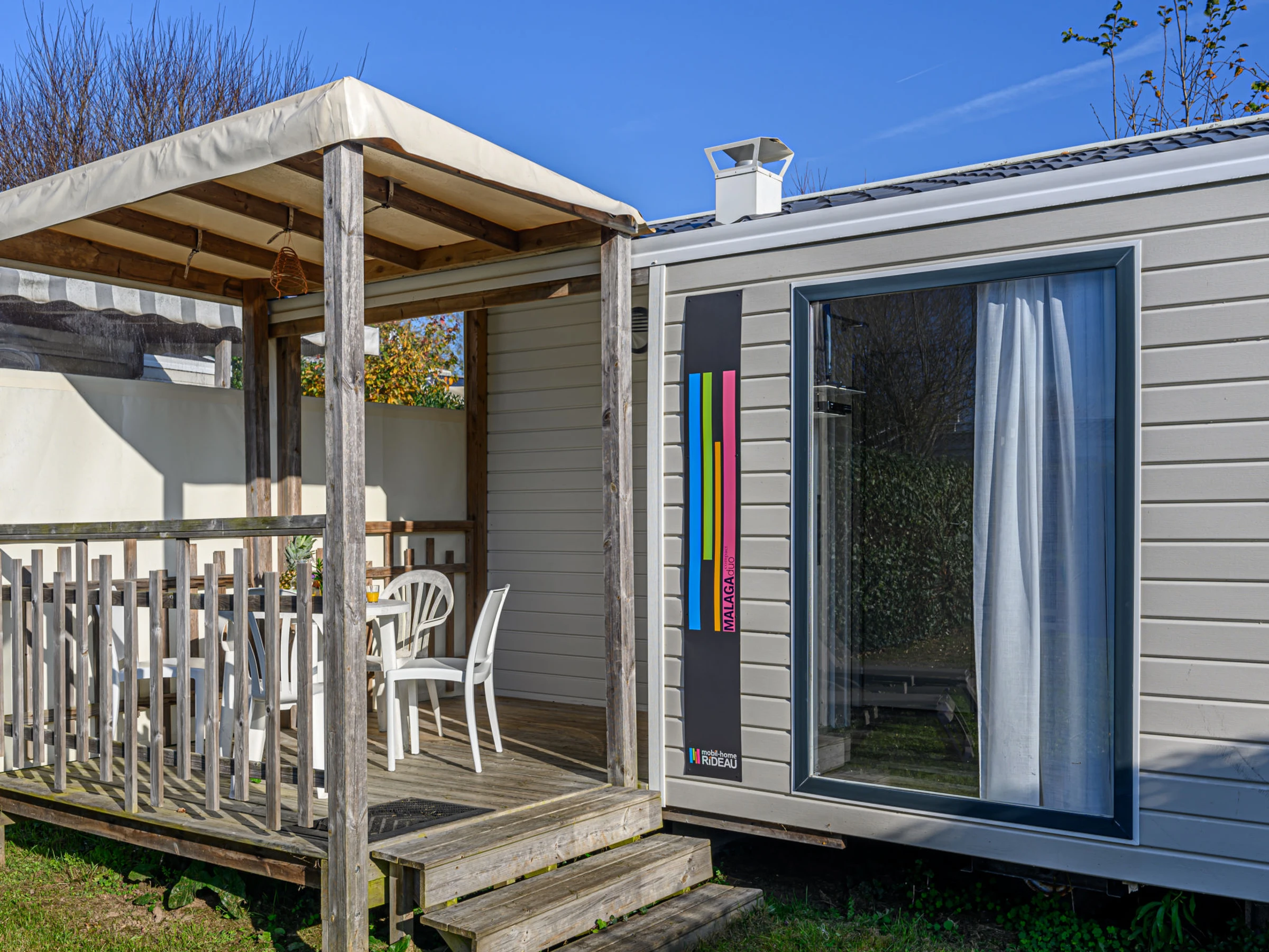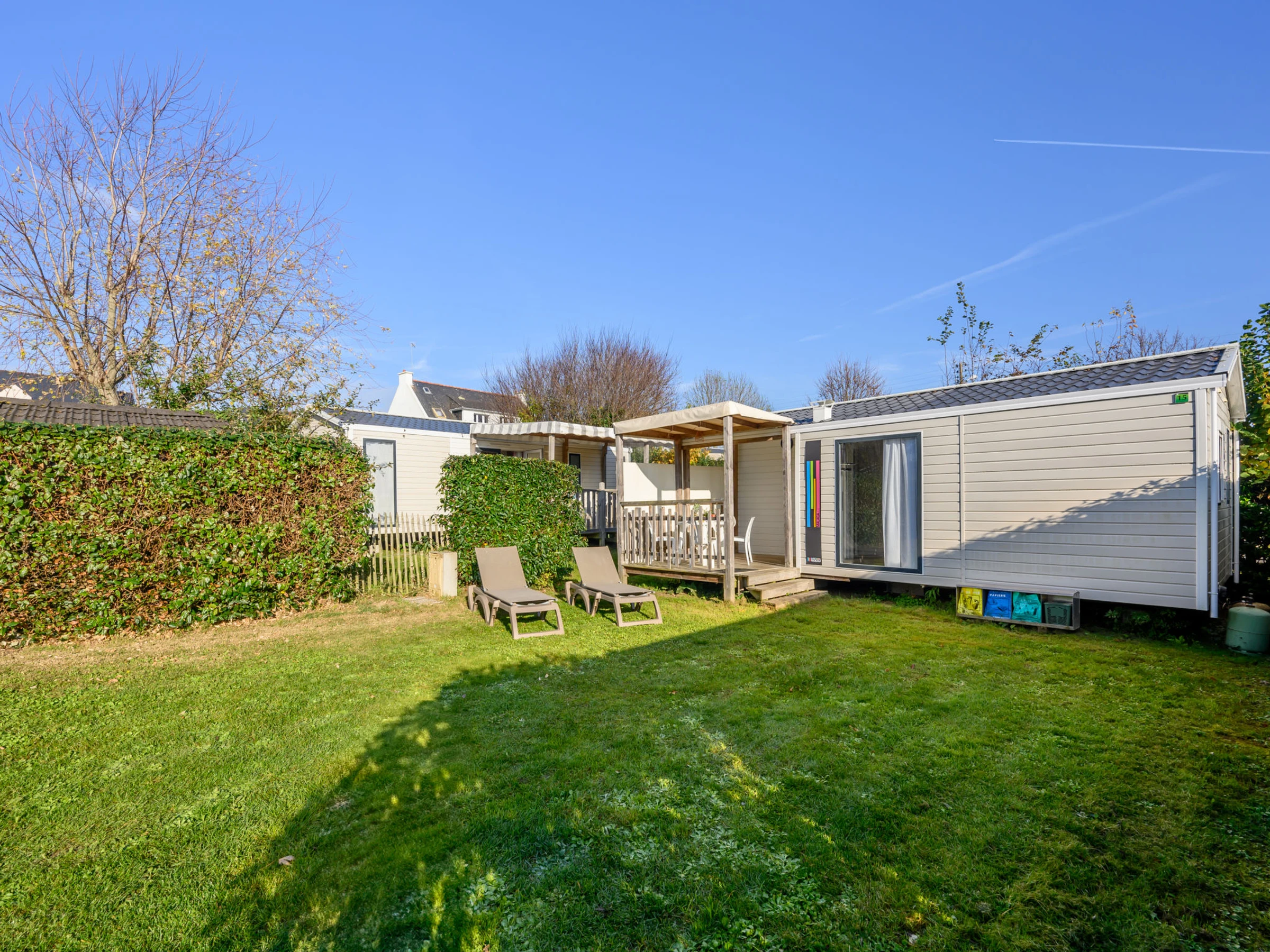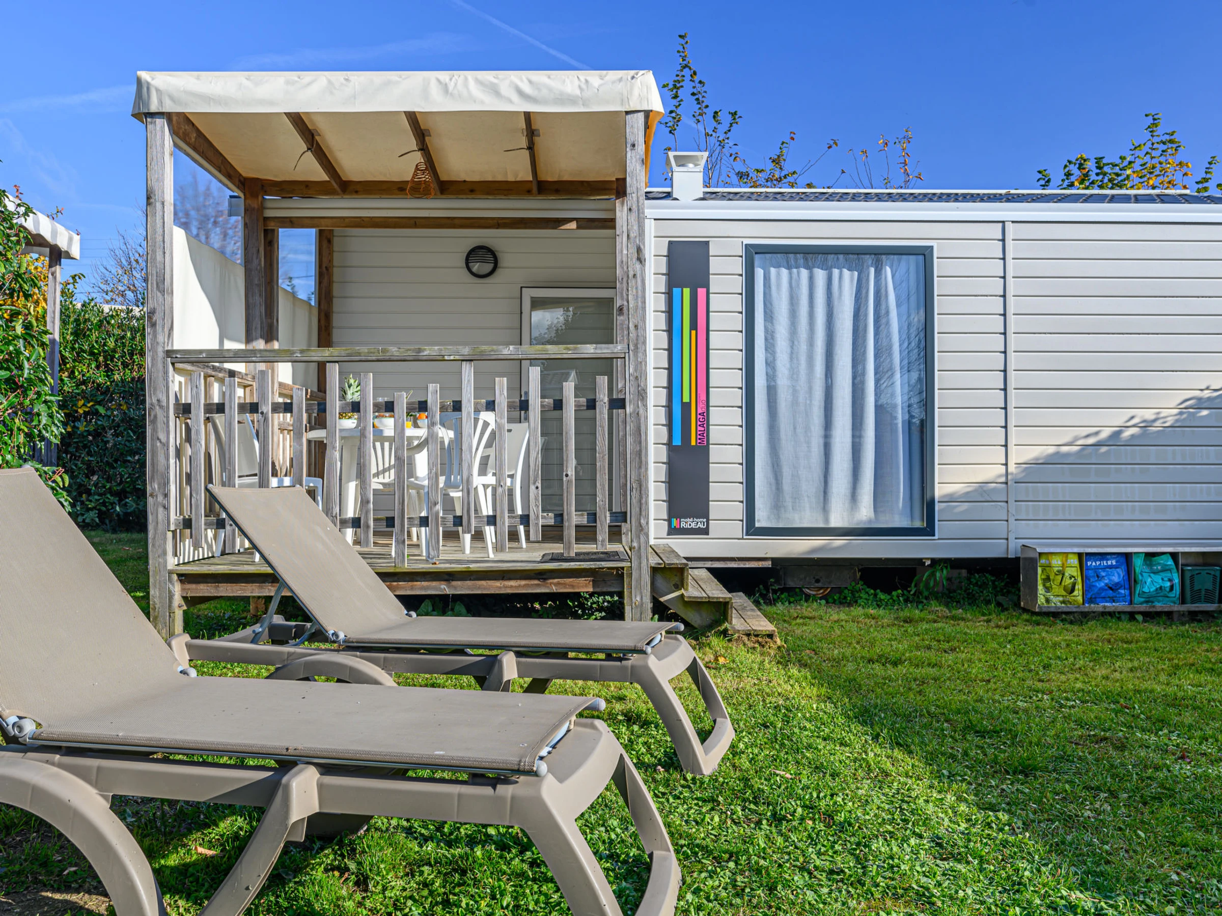"Le Courlis", estudio mobile home 23 m2. Con mobiliario confortable: salón-comedor con TV (pantalla plana). Salida a la terraza. 1 dorm. con 1 cama de matrimonio (1 x 140 cm, 190 cm de longitud). 1 dorm. con 2 camas (90 cm, 190 cm de longitud). Rincón-cocina (4 fogones, tostadora, hervidor de agua eléctrico, microondas, cafetera eléctrica). Ducha, WC separado. Calefacción. Terraza 5 m2, orientación oeste. Muebles de terraza. El alojamiento dispone de: secador de pelo. Internet (Wifi, gratis). Plaza de aparcamiento. A tener en cuenta: permitido máximo 1 mascota / perro. Detector de humo. Oferta de un propietario comercial según el art. 155, IV, CGI