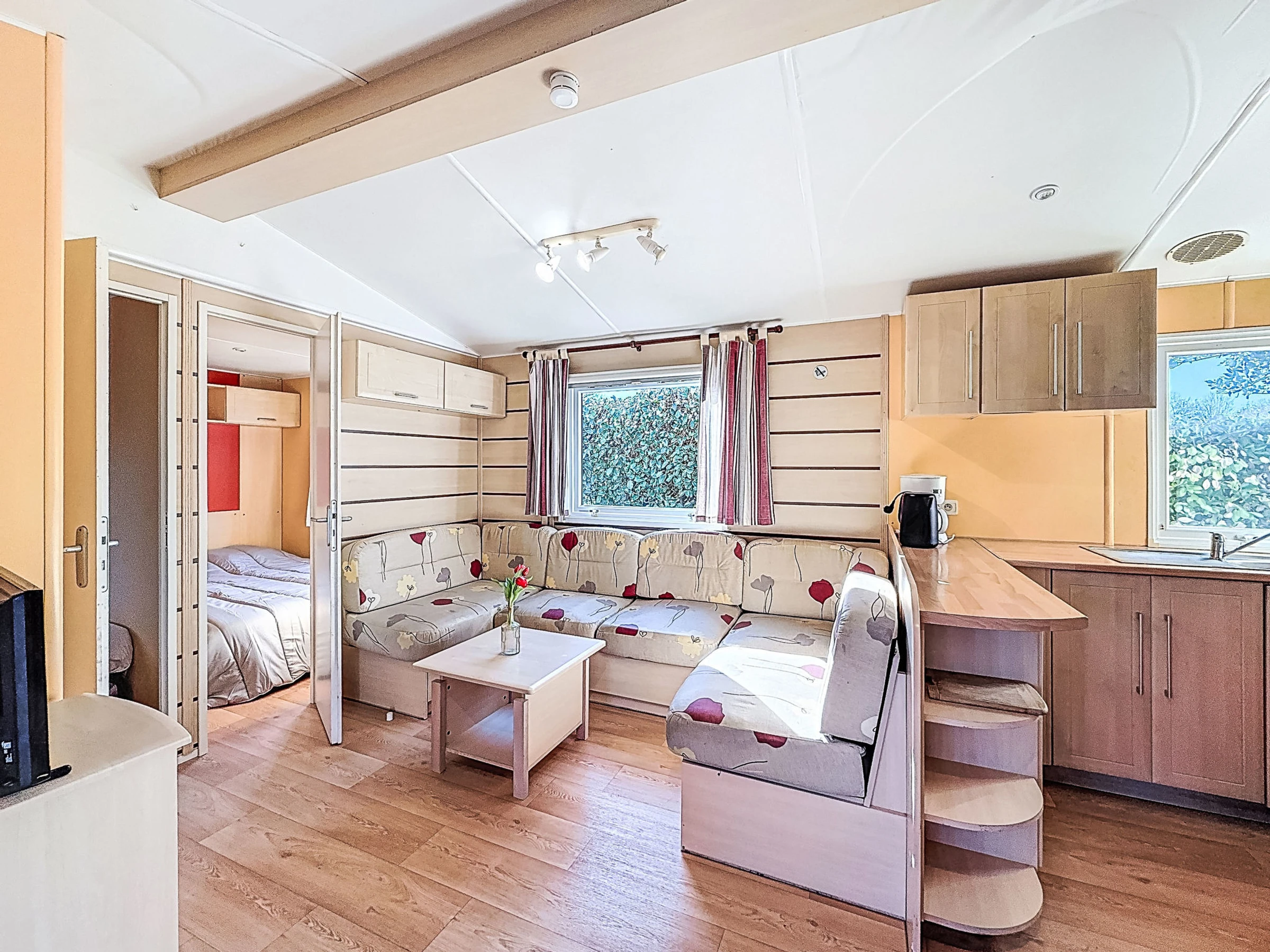"L'échasse", 4 estancias mobile home 40 m2. Con mobiliario confortable: salón-comedor con TV (pantalla plana). Salida a la terraza. 1 dorm. con 1 cama de matrimonio (1 x 160 cm, 190 cm de longitud). 1 dorm. con 1 cama de matrimonio (1 x 140 cm, 190 cm de longitud). 1 dorm. con 2 camas (80 cm, 190 cm de longitud). Cocina abierta (4 fuegos, tostadora, hervidor de agua eléctrico, microondas, cafetera eléctrica). Ducha, WC separado. Terraza 10 m2. Muebles de terraza. El alojamiento dispone de: secador de pelo. Internet (Wifi, gratis). Plaza de aparcamiento junto a la casa. A tener en cuenta: 1 mascota / perro. Detector de humo. Oferta de un propietario comercial según el art. 155, IV, CGI