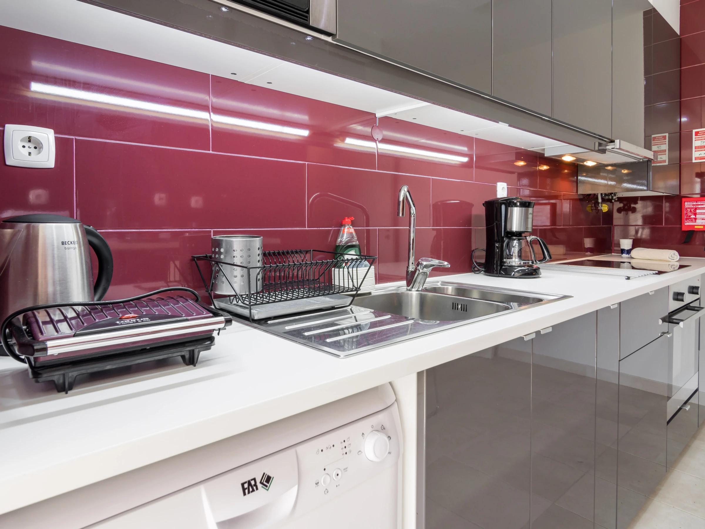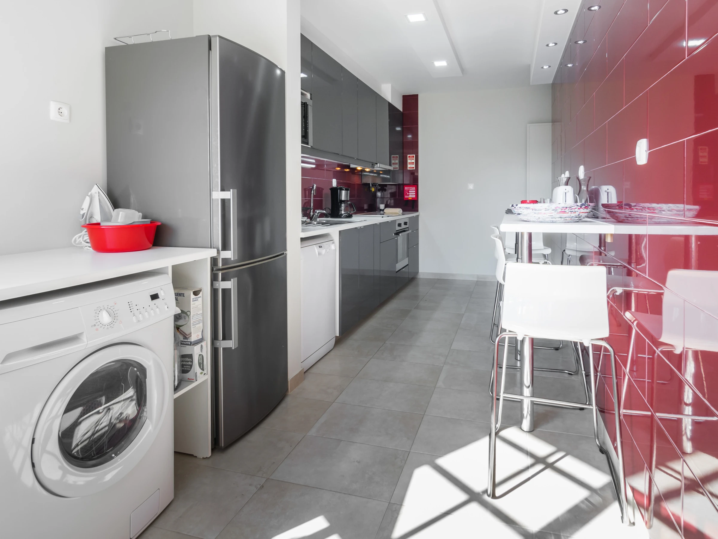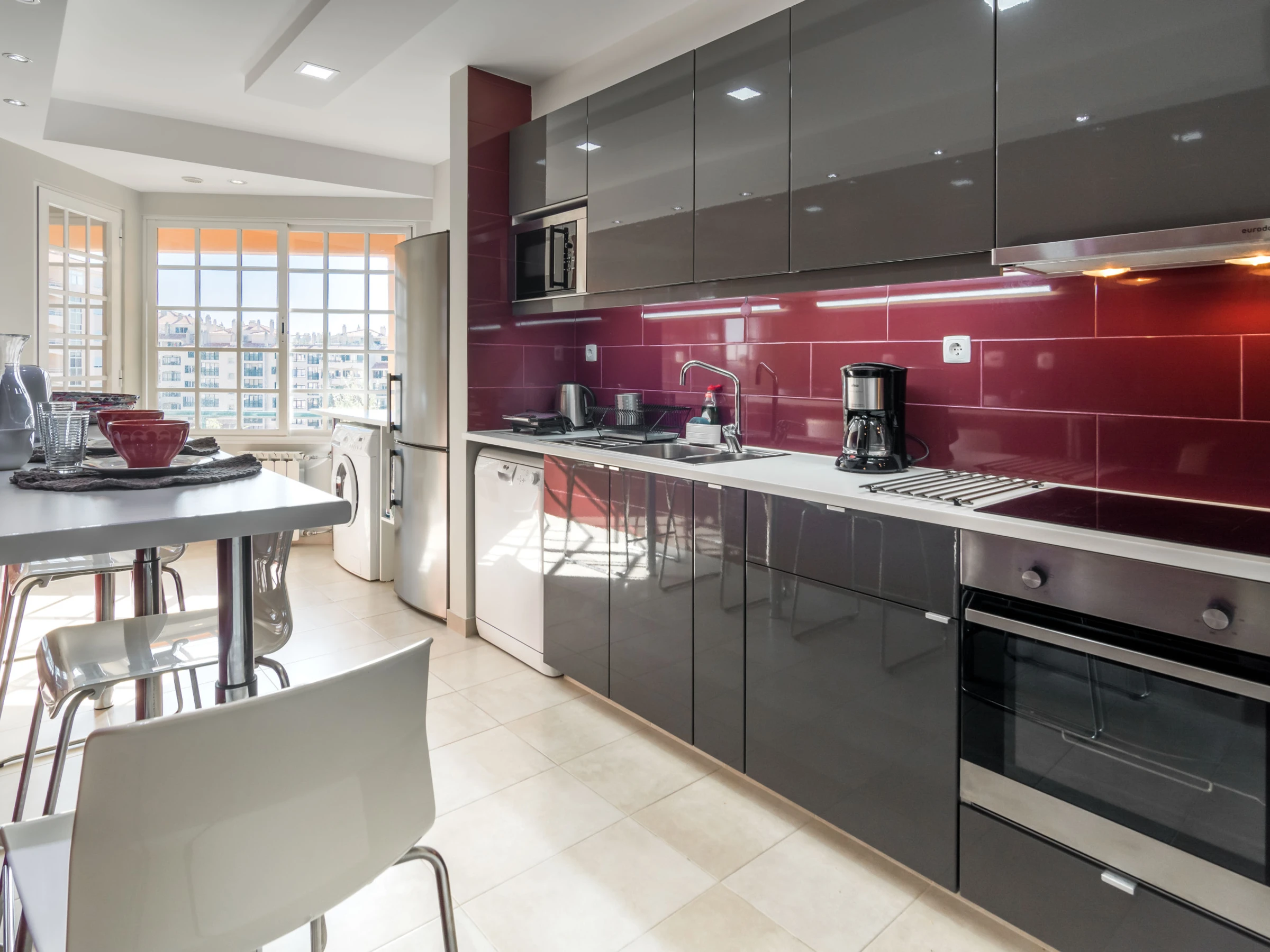 Al lado opuesto de las habitaciones tiene la cocina moderna y totalmente equipada. De la estufa, horno, nevera de tamaño completo a lavadora de platos, máquinas de lavado y secado.