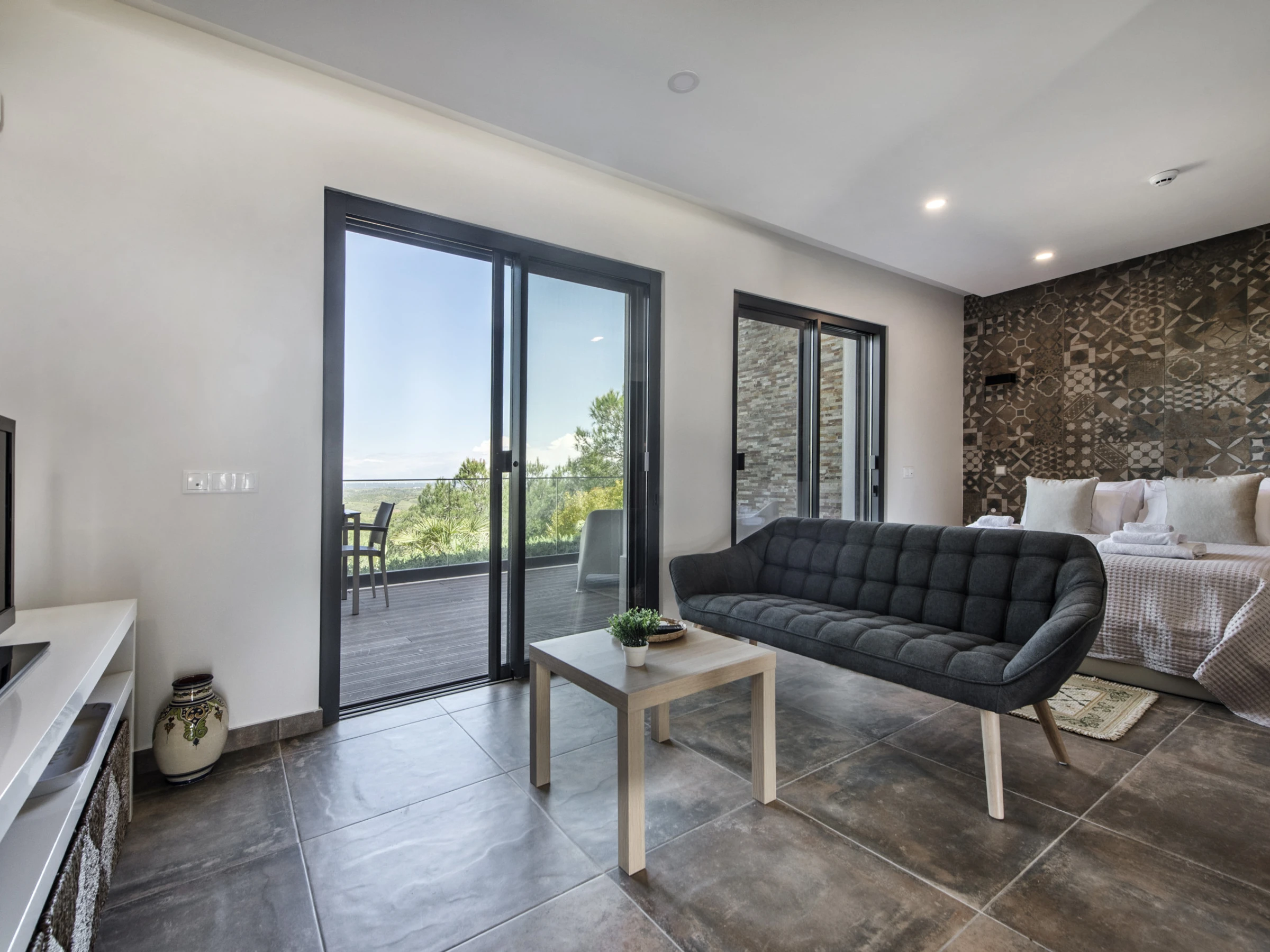 El área exterior es verdaderamente irresistible, con una piscina infinity que ofrece vistas impresionantes sobre la sierra y el mar, zona de barbacoa cubierta con espacio para comidas, ducha exterior junto a la piscina, tumbonas y jardines cuidados que complementan a la perfección el ambiente de tranquilidad.