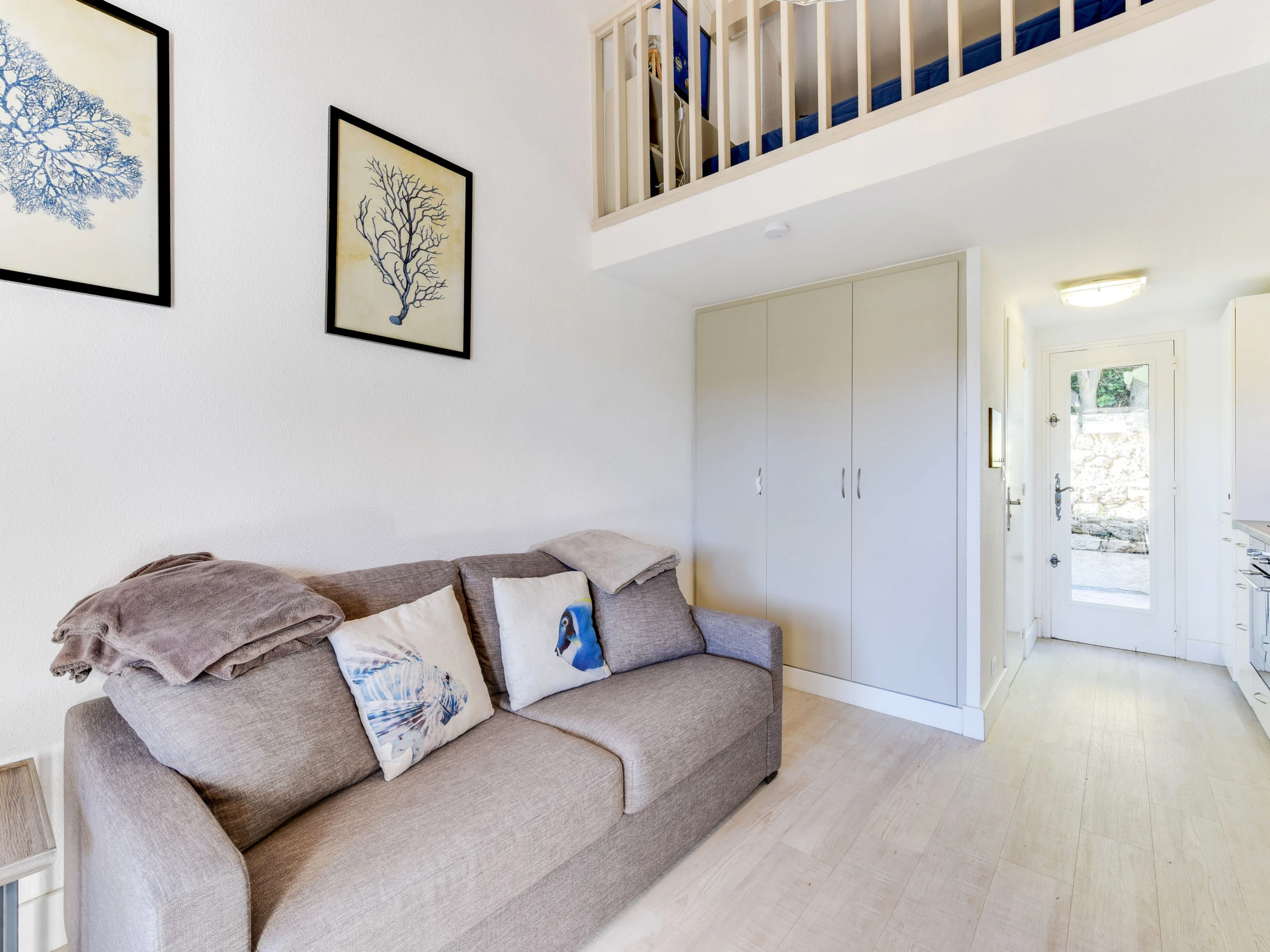 Estudio 20 m2 en 2 plantas, en la planta baja. Con mobiliario funcional y confortable: salón-dormitorio con 1 sofá-cama doble (140 cm, 190 cm de longitud), TV (pantalla plana). Salida a la terraza. Cocina abierta (horno, lavavajillas, 4 Placas de inducción, tostadora, hervidor de agua eléctrico, microondas, cafetera eléctrica). Salida al balcón. Ducha/WC. Calefacción eléctrica, calentador (200 litros). Planta superior: 1 dorm. 9 m2, abuhardillado, abierto con 1 cama de matrimonio (1 x 140 cm, 190 cm de longitud), ventilador. Balcón 7 m2, orientación norte y orientación oeste, terraza 12 m2, orientación sur. Muebles de terraza, tumbonas (2). Vista al jardín. El alojamiento dispone de: lavadora, plancha. Internet (Wifi, gratis). Plaza de aparcamiento n. 7 (vallada). A tener en cuenta: TV solamente FR. Detector de humo.