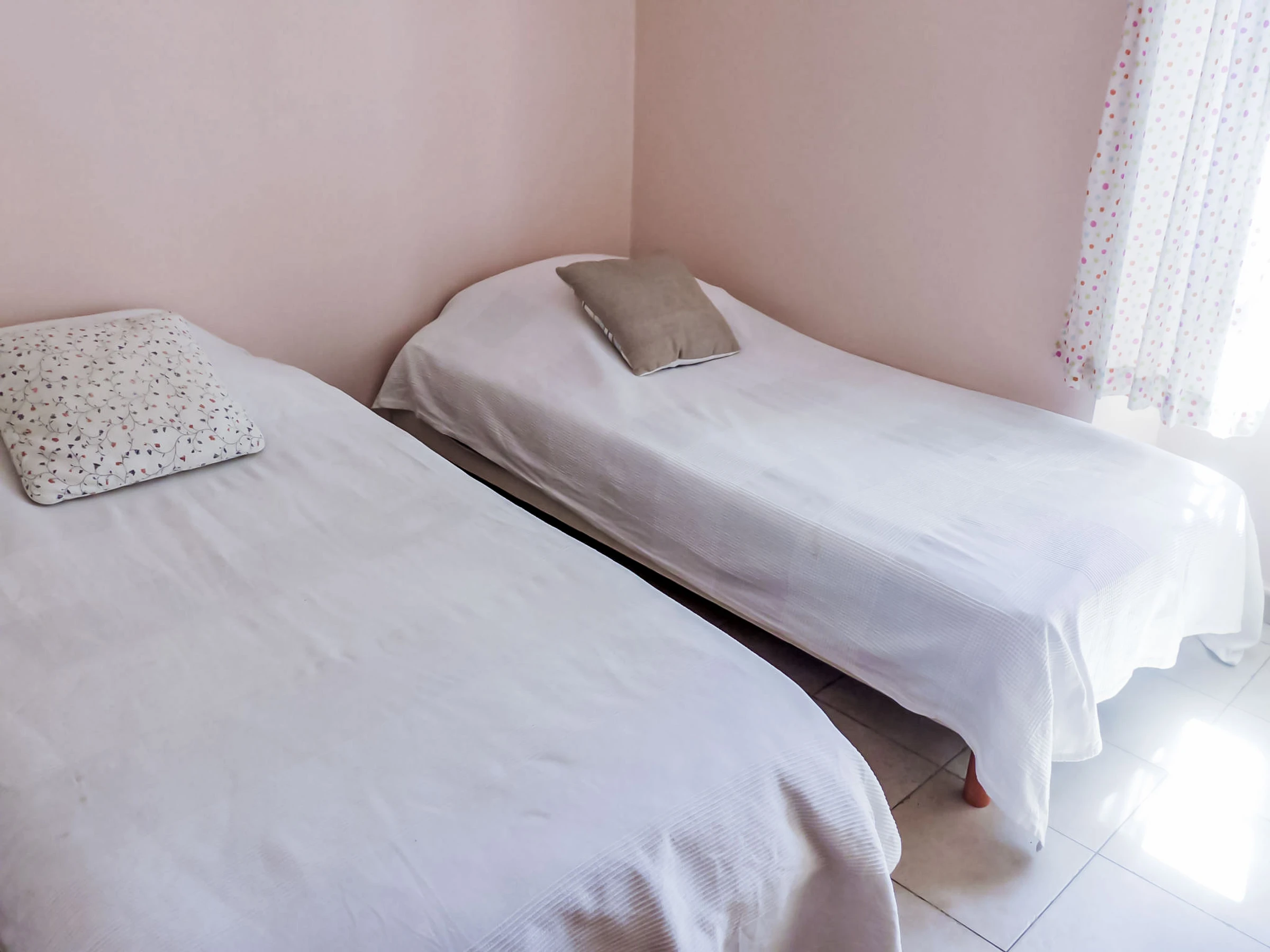 Casa adosada 5 estancias 100 m2 en 2 plantas. Con mobiliario confortable y bonito: salón-comedor 28 m2 con TV (pantalla plana). Salida a la terraza. Cocina (horno, lavavajillas, 4 Placas de inducción, tostadora, hervidor de agua eléctrico, microondas, cafetera eléctrica). Salida a la terraza. WC separado. Planta superior: 1 dorm. con 1 cama (90 cm, 190 cm de longitud), aire acondicionado. 1 dorm. con 2 camas (90 cm, 190 cm de longitud), aire acondicionado. 1 dorm., pequeño con 1 cama de matrimonio (140 cm, 190 cm de longitud), aire acondicionado. 1 dorm. con 1 cama de matrimonio (160 cm, 190 cm de longitud), ducha/WC (privado) aire acondicionado. Baño, baño/WC. Calefacción eléctrica. Terraza grande 60 m2, orientación sur. Muebles de terraza, barbacoa eléctrica, tumbonas (2). El alojamiento dispone de: lavadora, plancha. Internet (Wifi, gratis). Plaza de aparcamiento (3 Coches). A tener en cuenta: TV solamente FR, EN, DE. Detector de humo.
