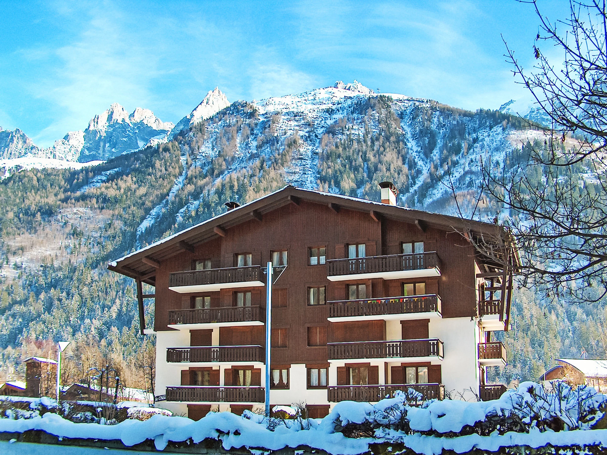 Residencia "Le Choucas", de 4 plantas. A 1 km del centro. En el complejo: ascensor, sala guardaesquís. Aparcamiento (cubierto), posibilidad de aparcamiento en la calle. Tienda 200 m, centro comercial 1 km, restaurante 700 m, parada autobús 200 m, estación de tren "Chamonix Mont-Blanc" 1400 km. Campo de golf (18 hoyos) 5 km, polideportivo 2 km, telesquí 2 km, remontes 1.5 km, escuela de esquí 1.5 km, pista de hielo 2 km. Atracciones en los alrededores: Téléphérique de l'Aiguille du Midi 1 km, Train du Montenvers Mer de Glace 1.5 km.